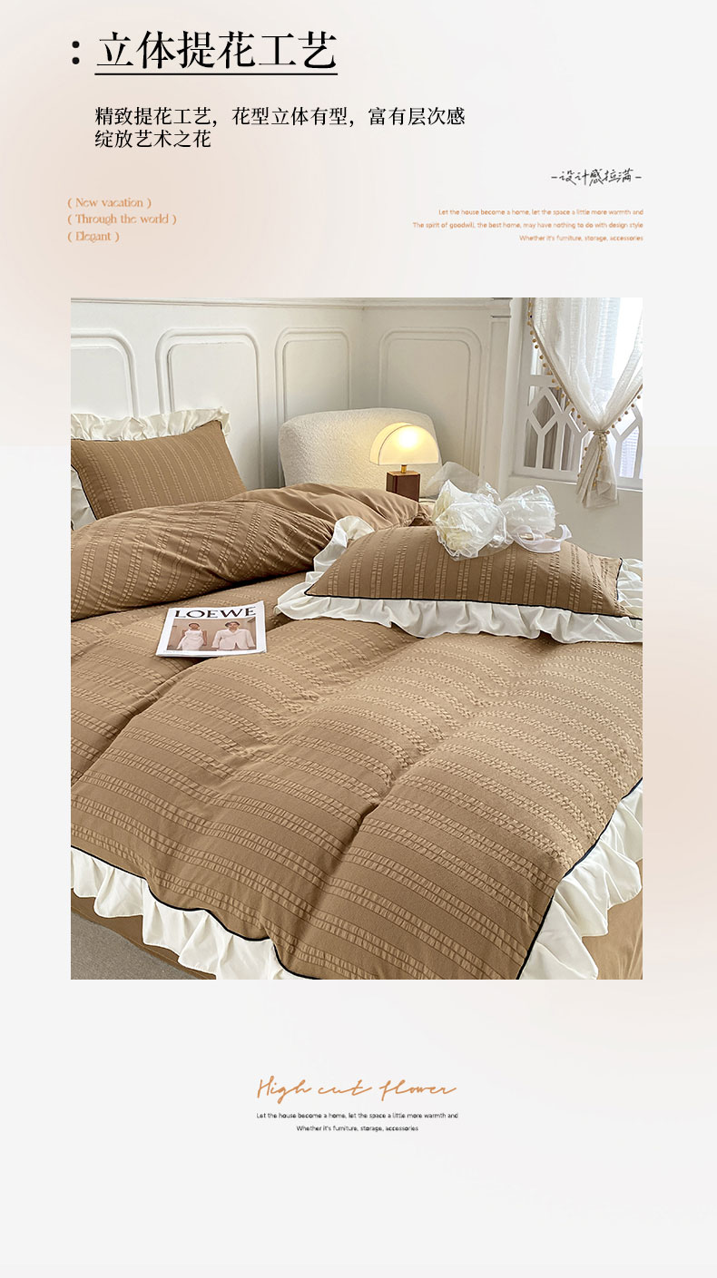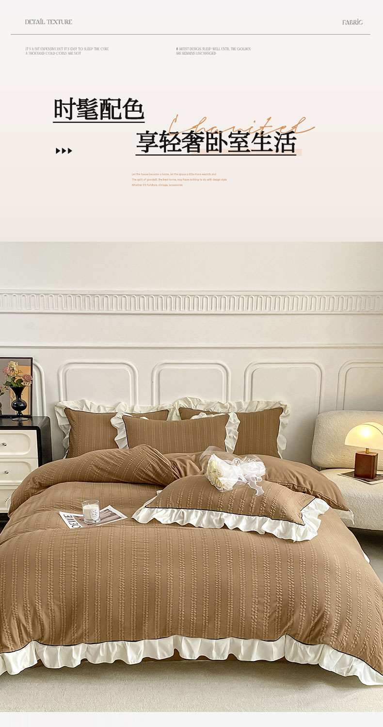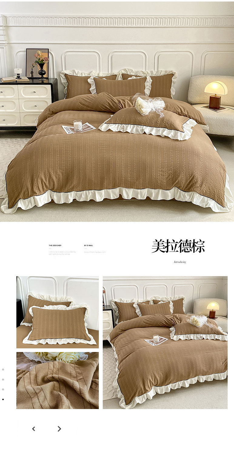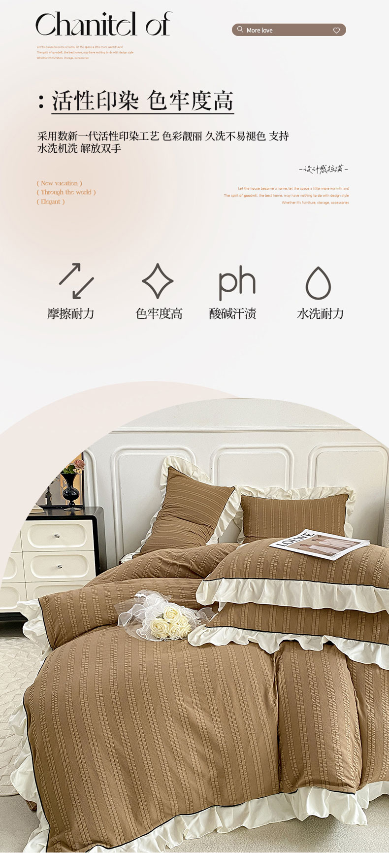 商品名称:大境 2024新款小提花韩版公主风小清新轻奢四件套三件套 美拉德棕