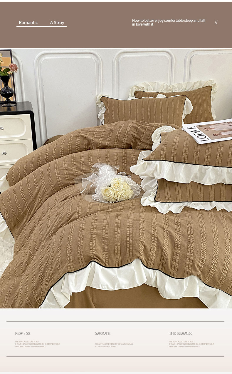 大境 2024新款小提花韩版公主风小清新轻奢四件套三件套 美拉德棕