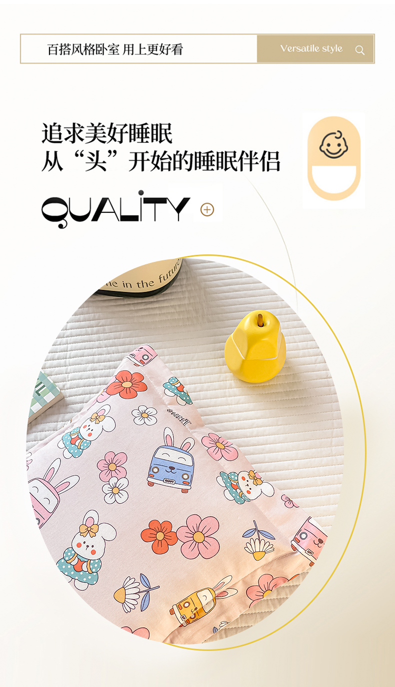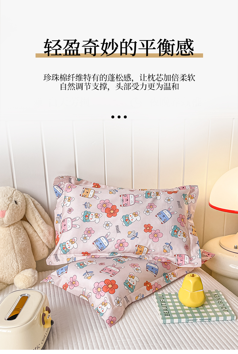 商品名称:金帛坊 2024新款100%全棉信封枕套儿童可拆卸枕芯枕头 兔兔巴士