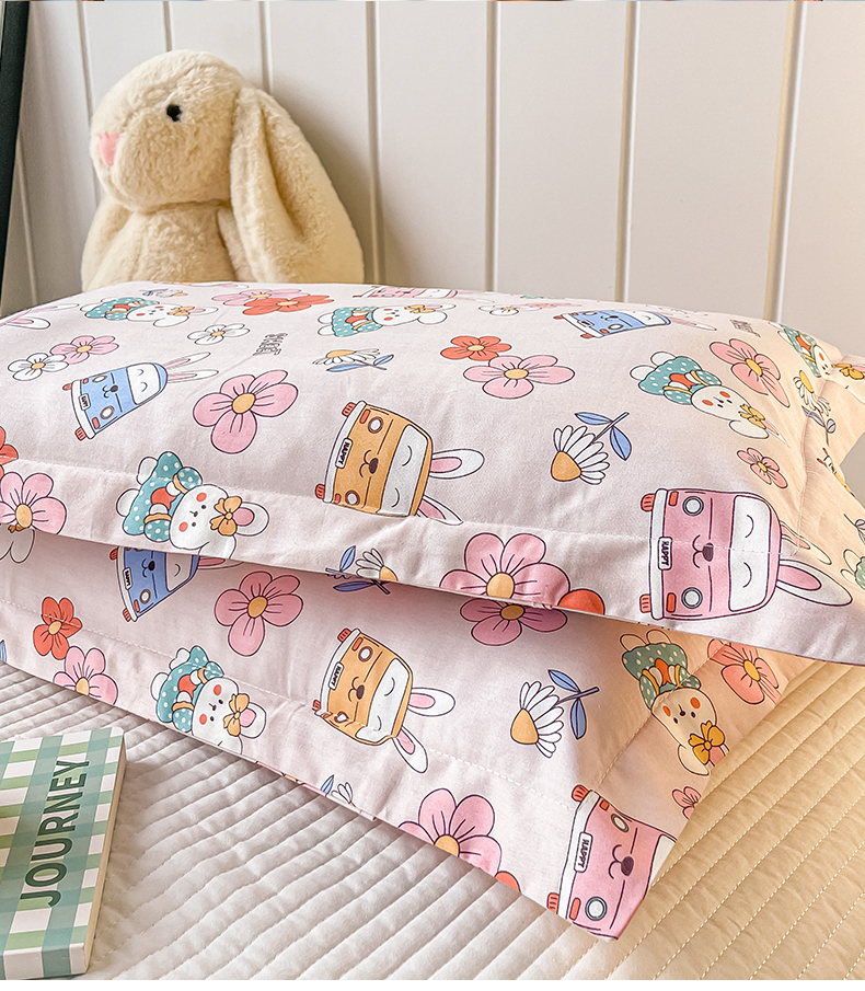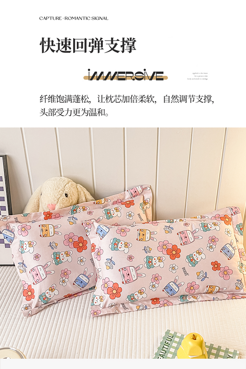 金帛坊 2024新款100%全棉信封枕套儿童可拆卸枕芯枕头 兔兔巴士