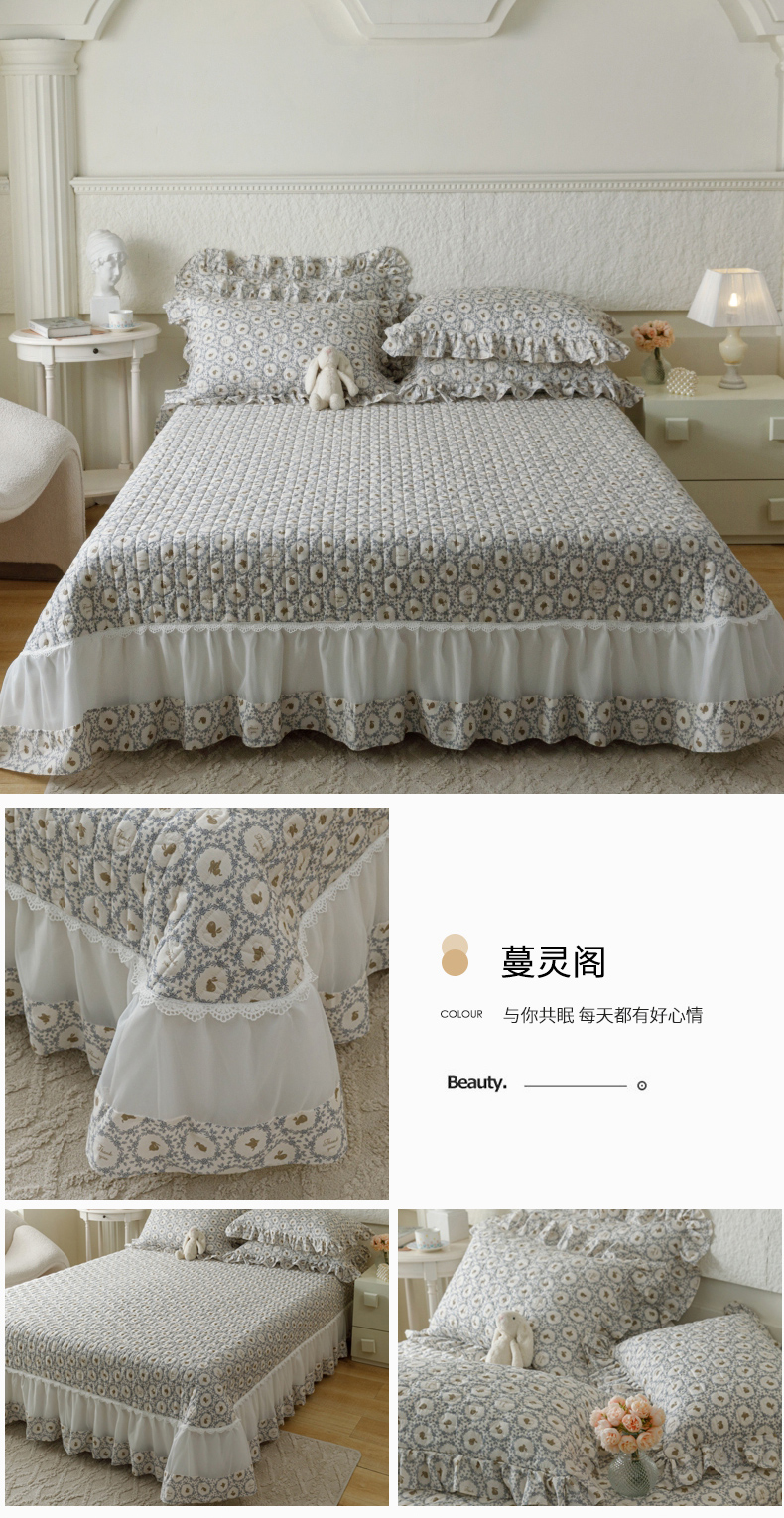 商品名称:胜权 2024新款高端欧根纱全棉印花夹棉床盖单品 蔓灵阁