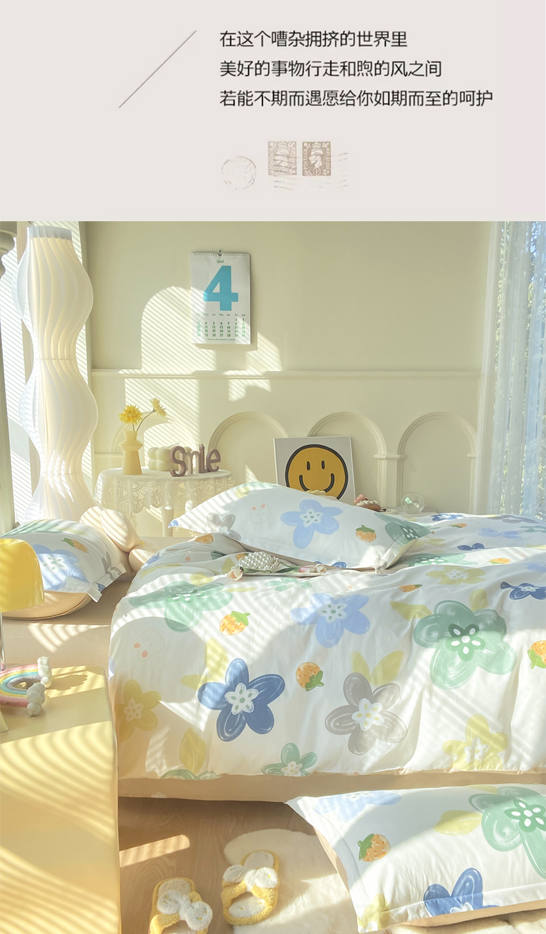 (总)珂博家纺 2025新款12868全棉纯棉小清新印花四件套学生宿舍三件套-系列二,繁花似锦,粉萼摇青,粉穹星语,浮青曳紫,结系花铃,汪星织梦,樱露垂角