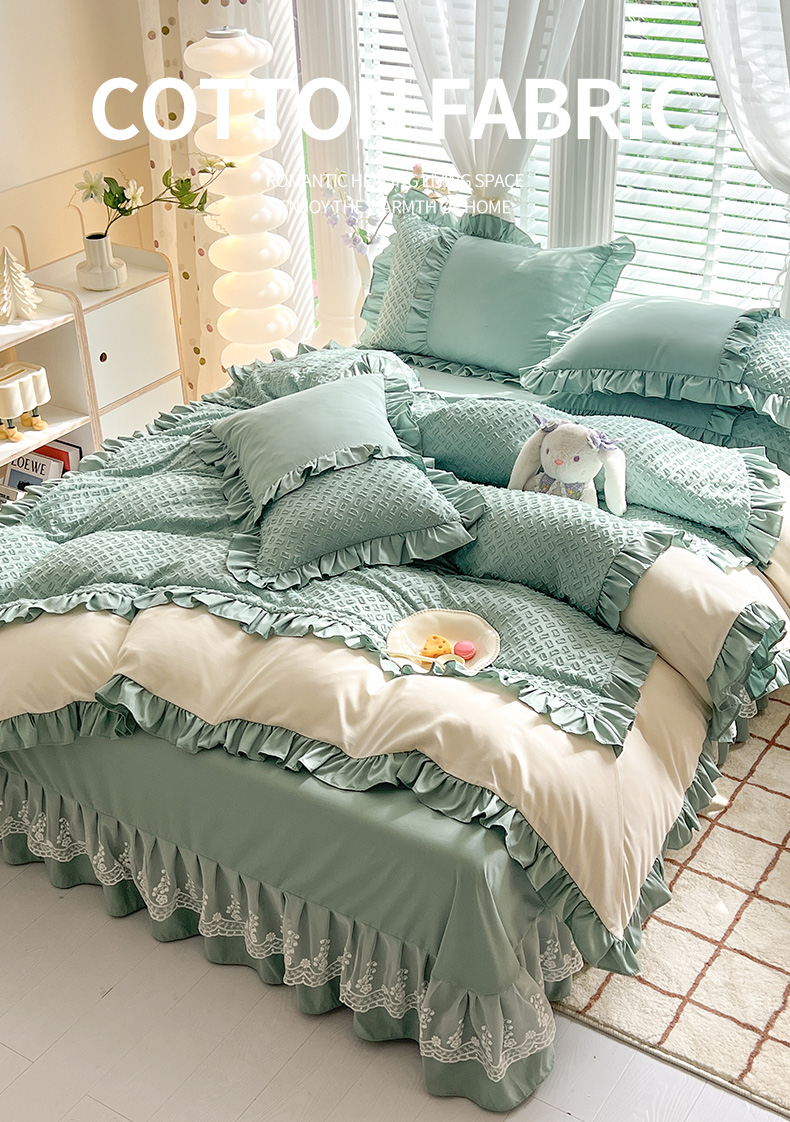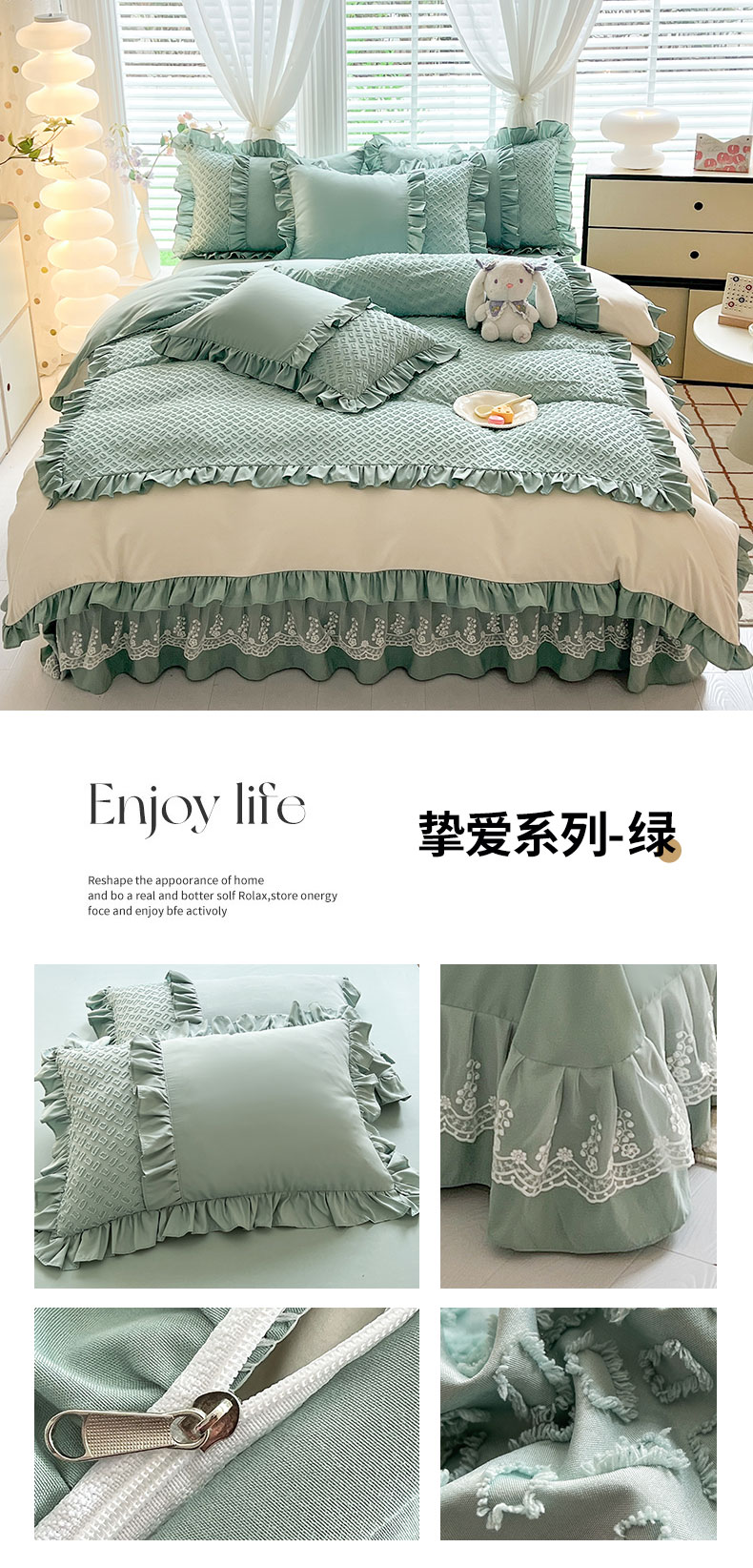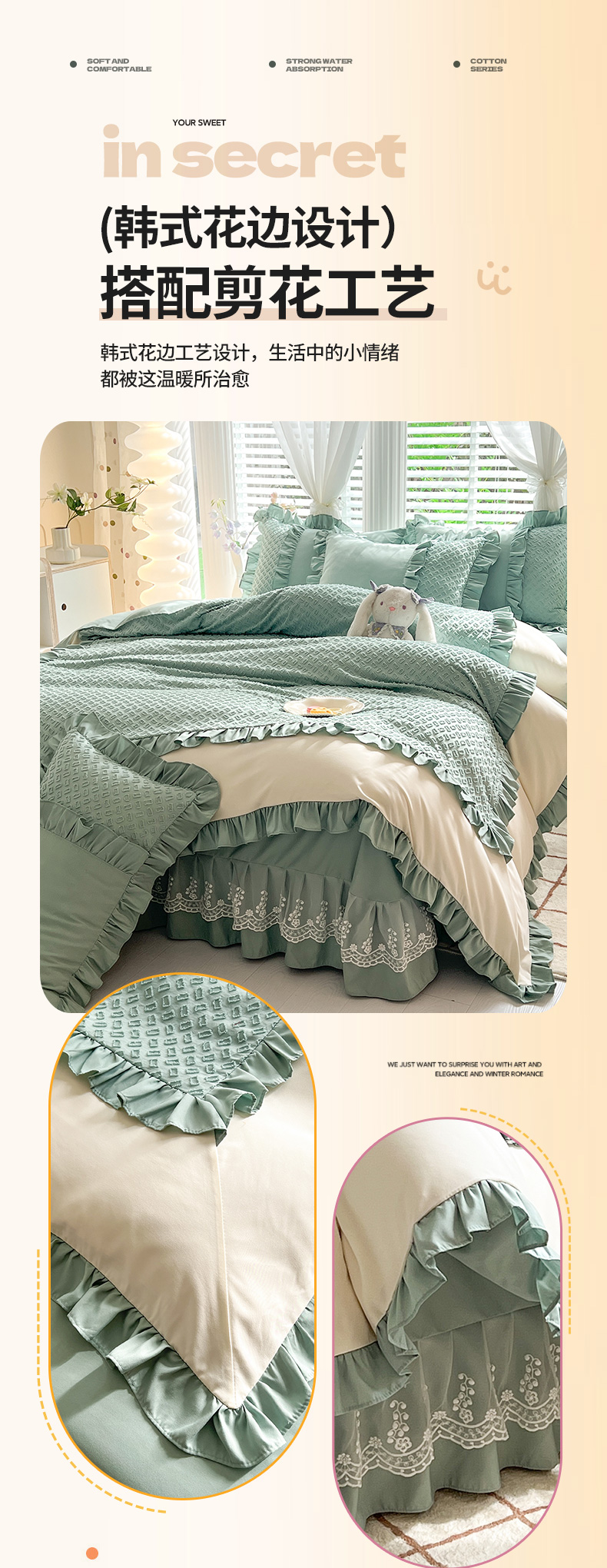 芭比蔓家纺 2024新款亲肤磨毛花边四件套---至爱 绿