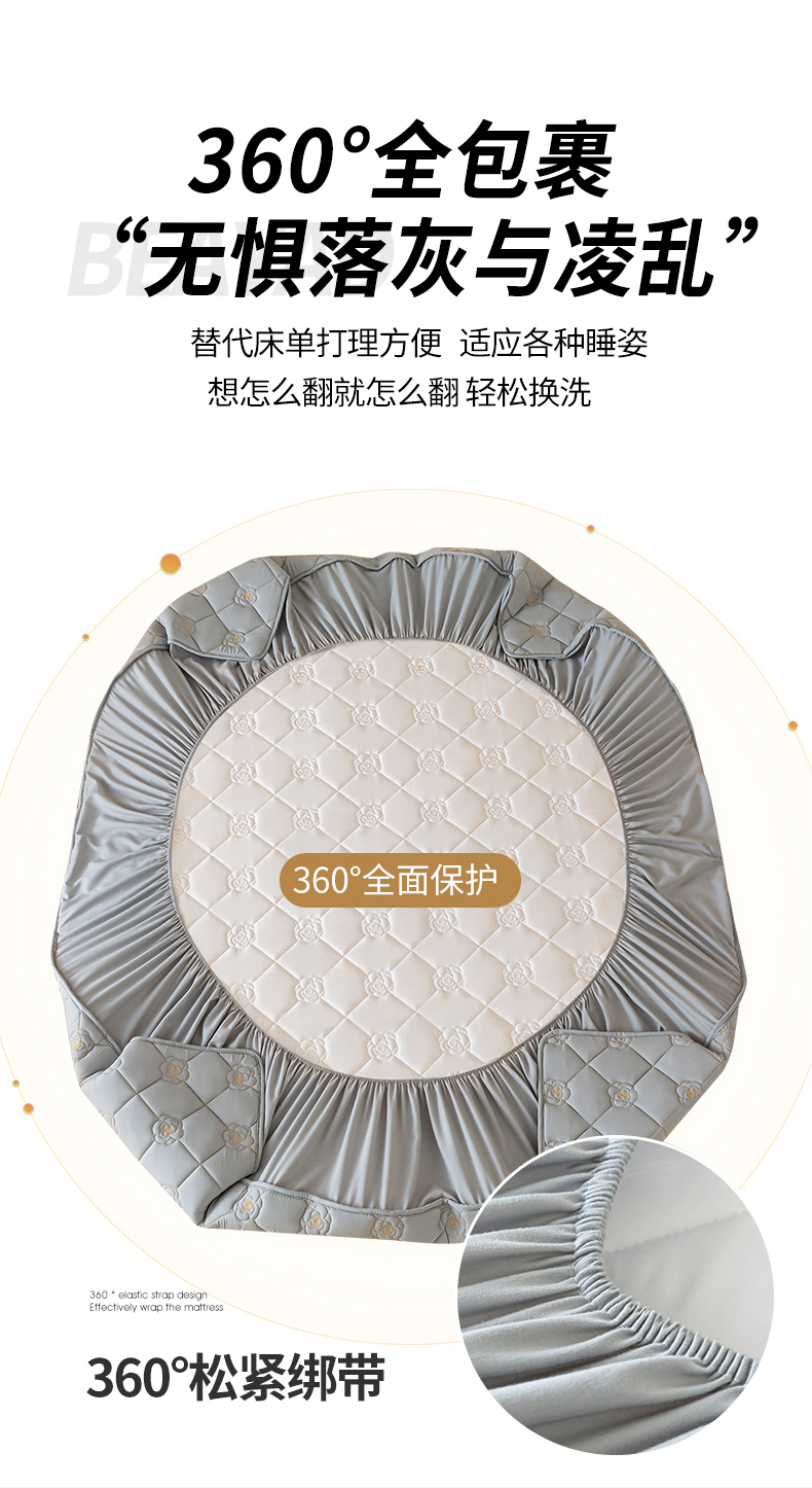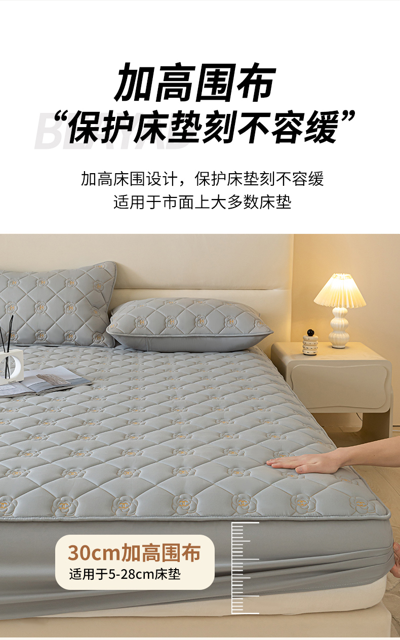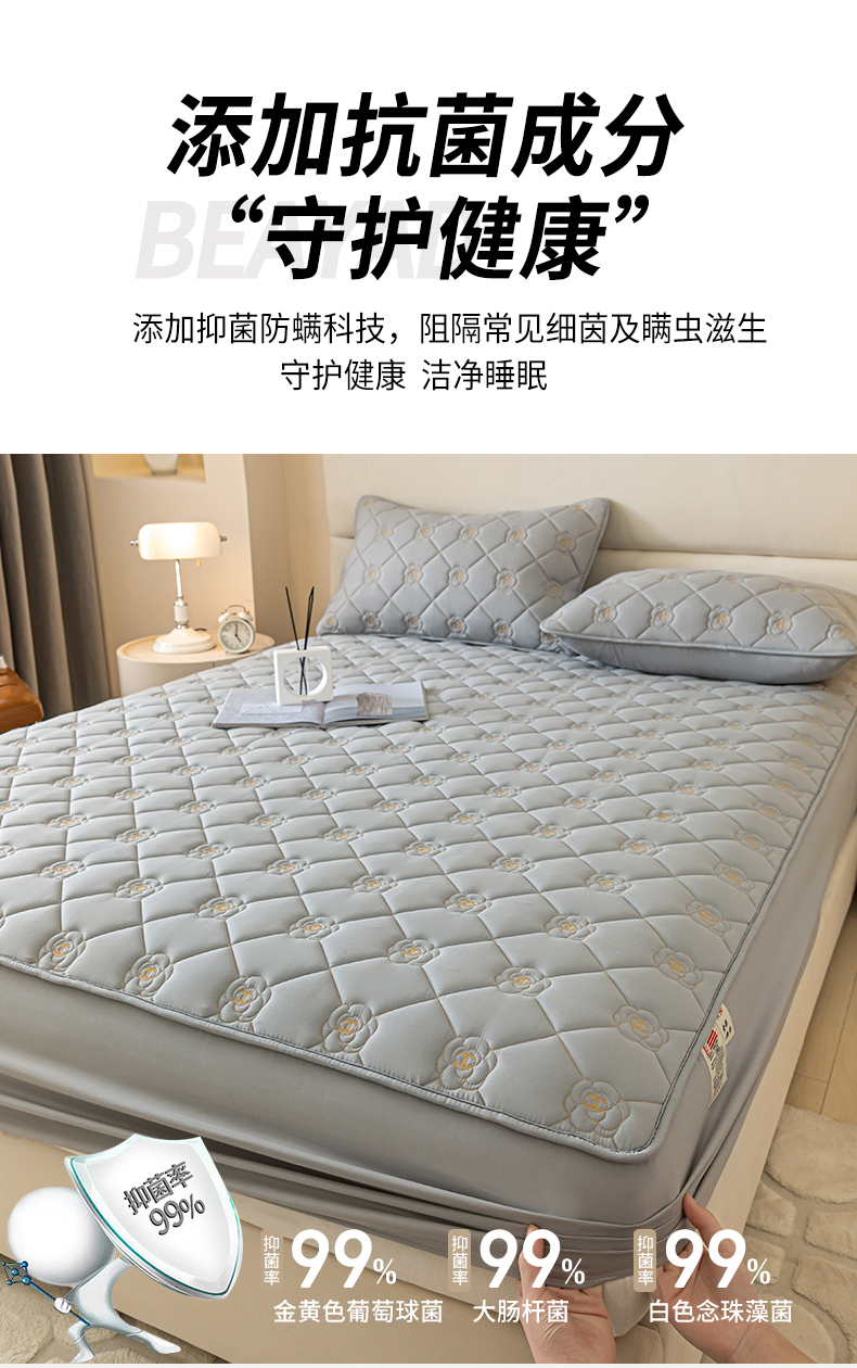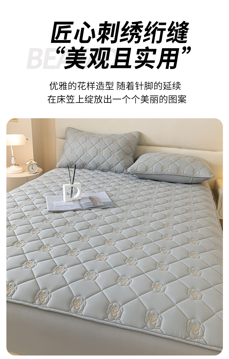 • 91家纺网 家纺一手货源 找家纺 鑫钰 2024新款A类原棉大豆夹棉床笠-花语 花语-雅致灰