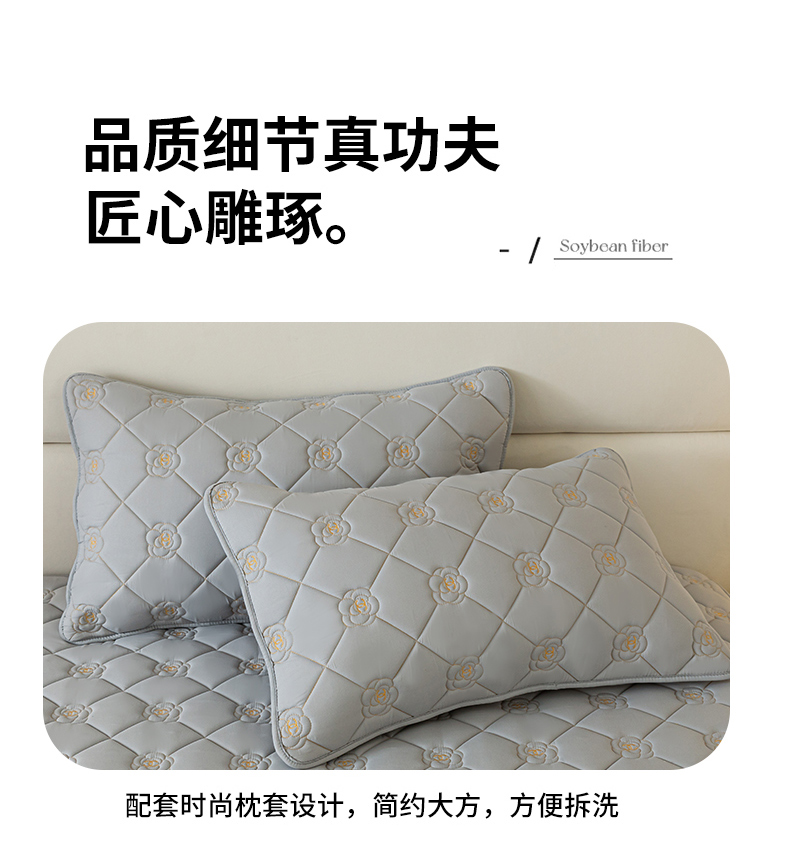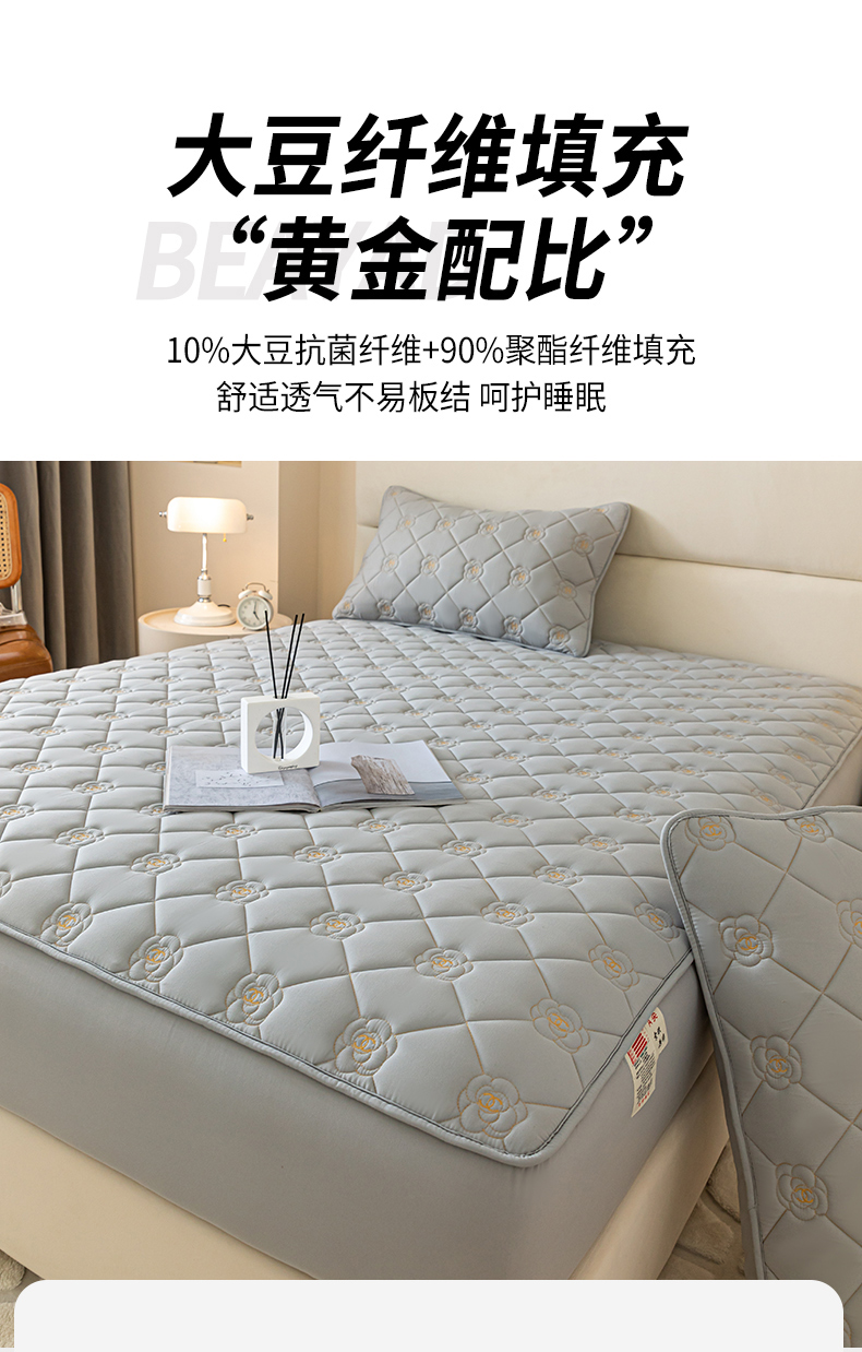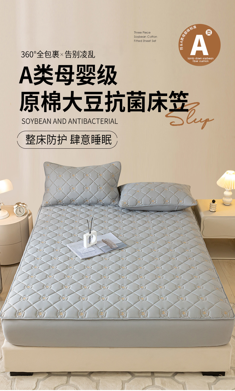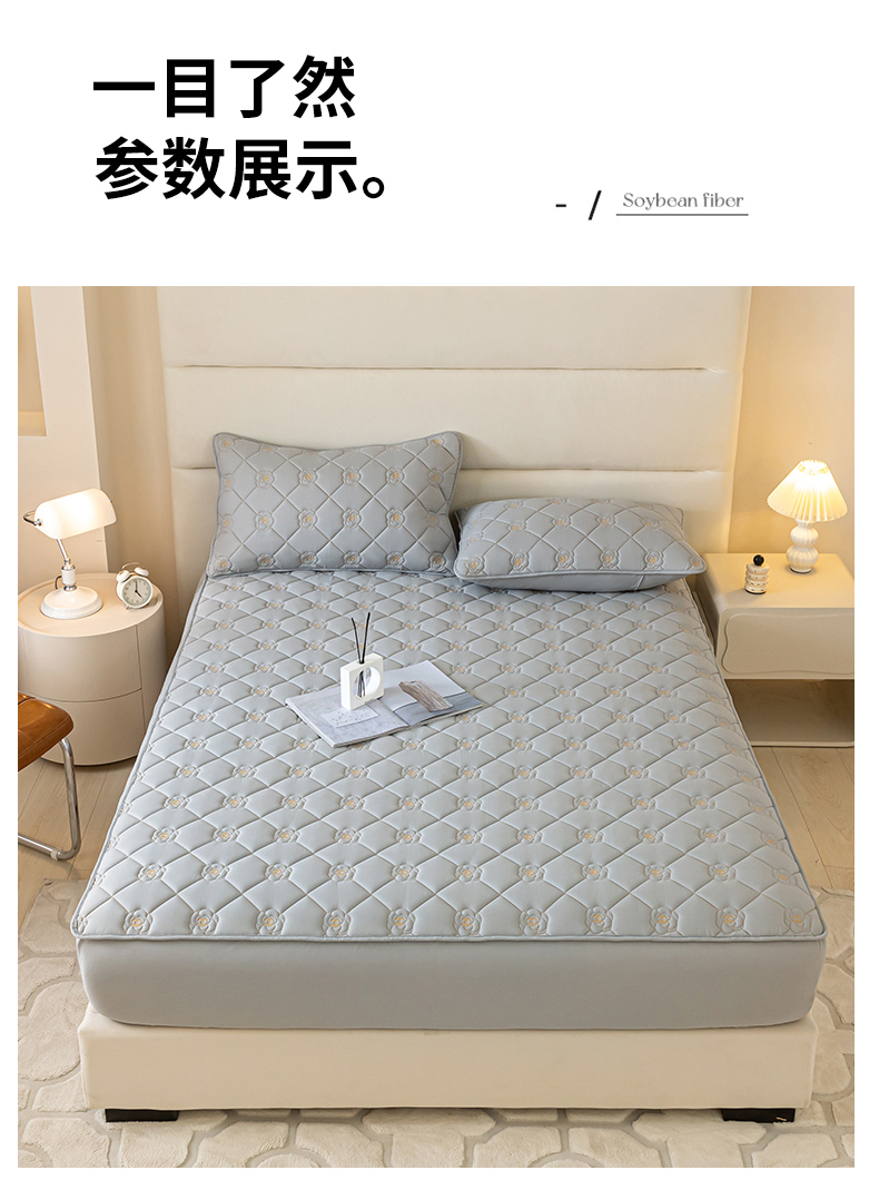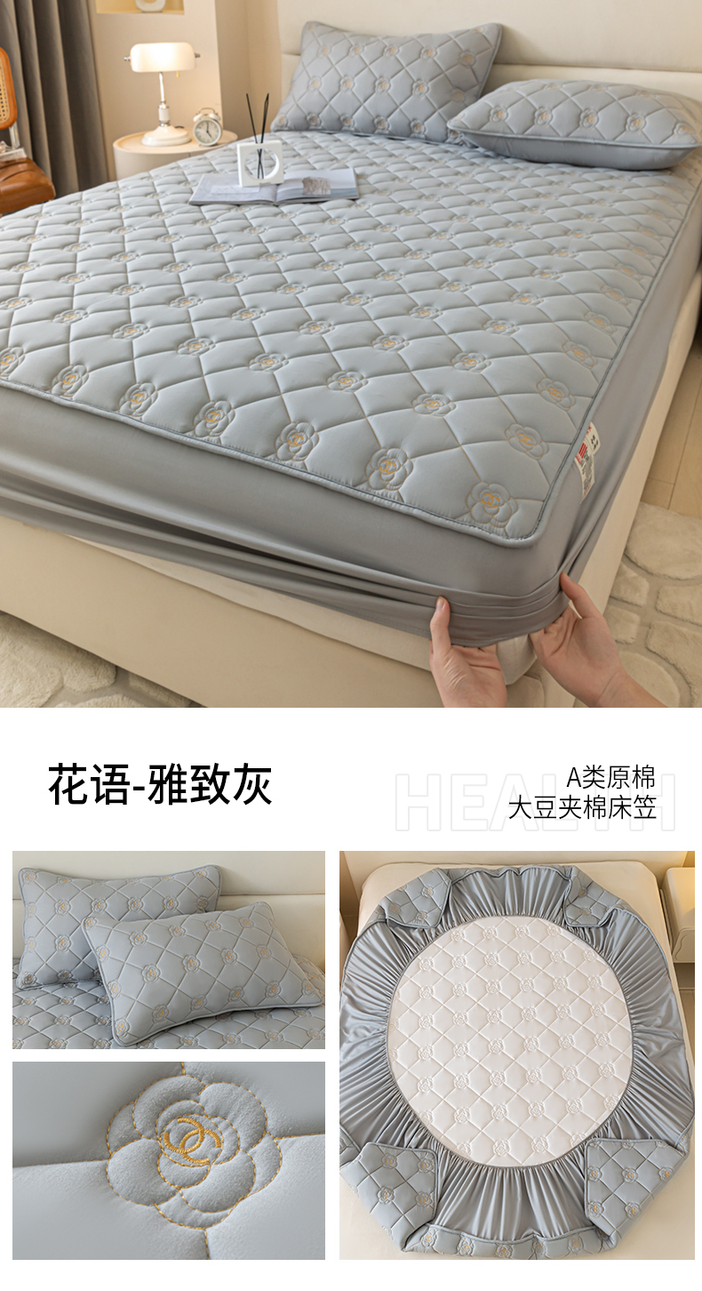 鑫钰 2024新款A类原棉大豆夹棉床笠-花语 花语-雅致灰
