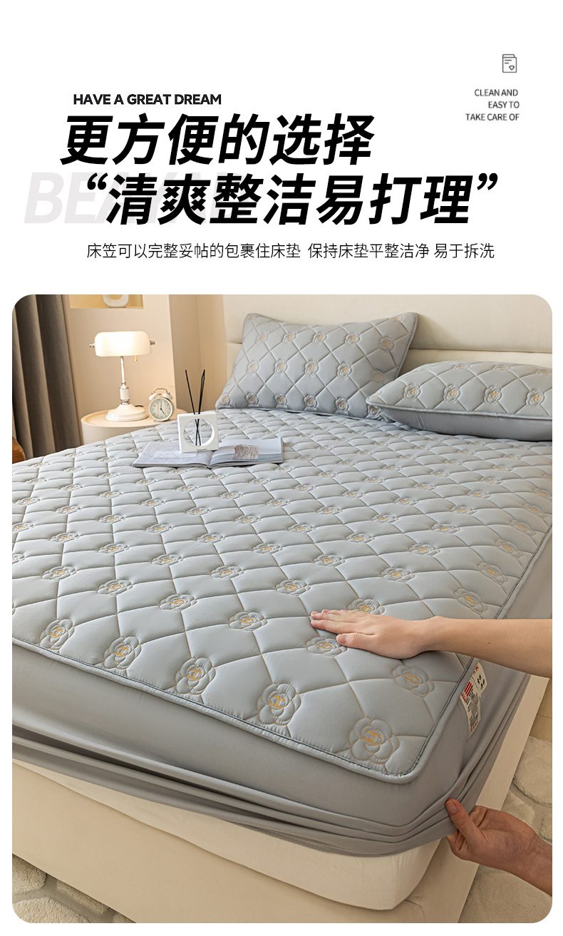 (总)鑫钰 2025新款A类纯棉夹棉床笠学生宿舍专用90x190-80x190-花漾山茶格,花漾山茶格-粉,花漾山茶格-蓝,花漾山茶格-灰