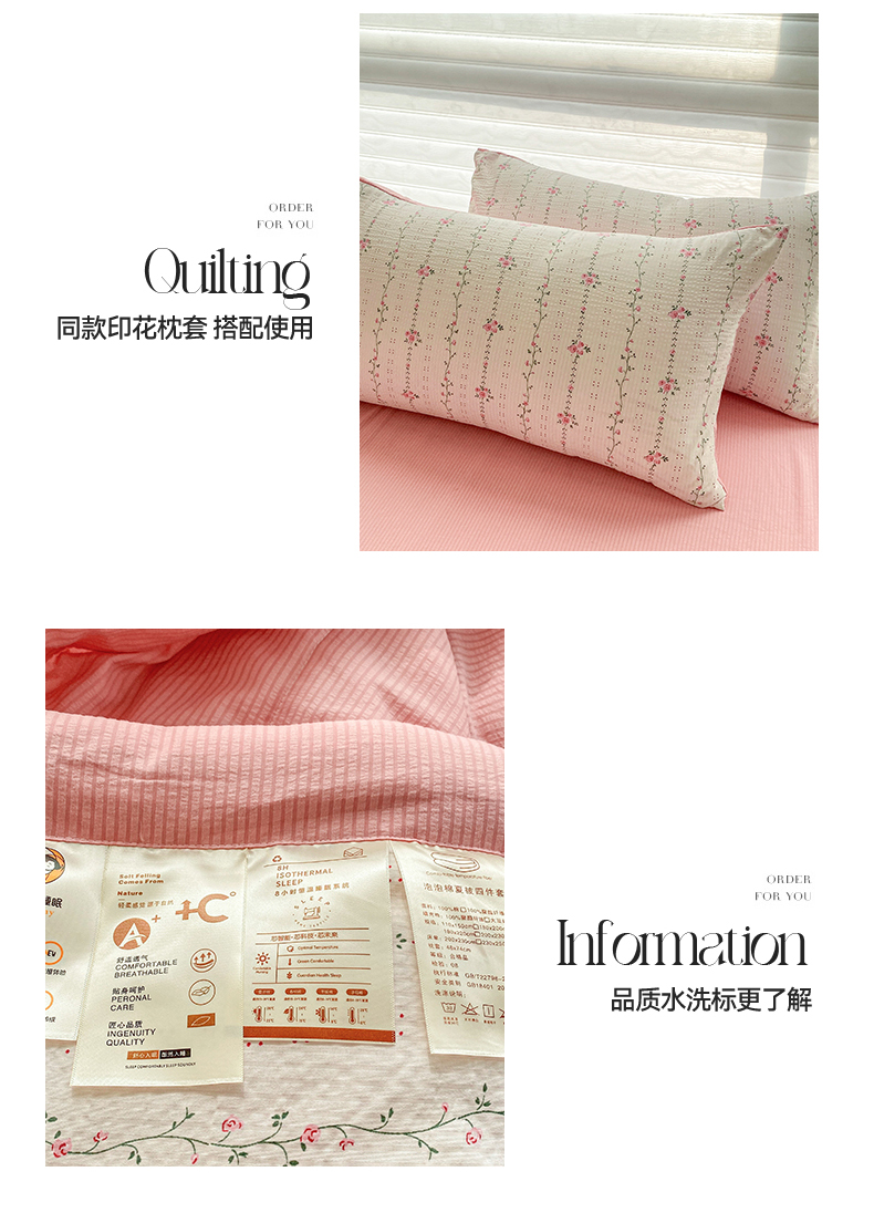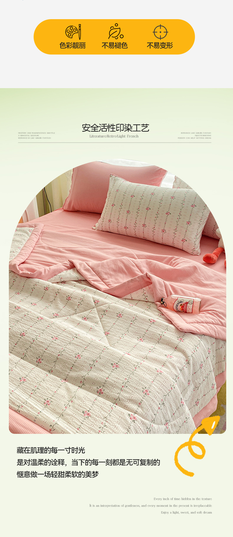 当前位置: 91家纺网 > 商品网购 > 被子 > 夏被 > 可思家纺 2024新款A类泡泡纱夏被四件套 如梦花季