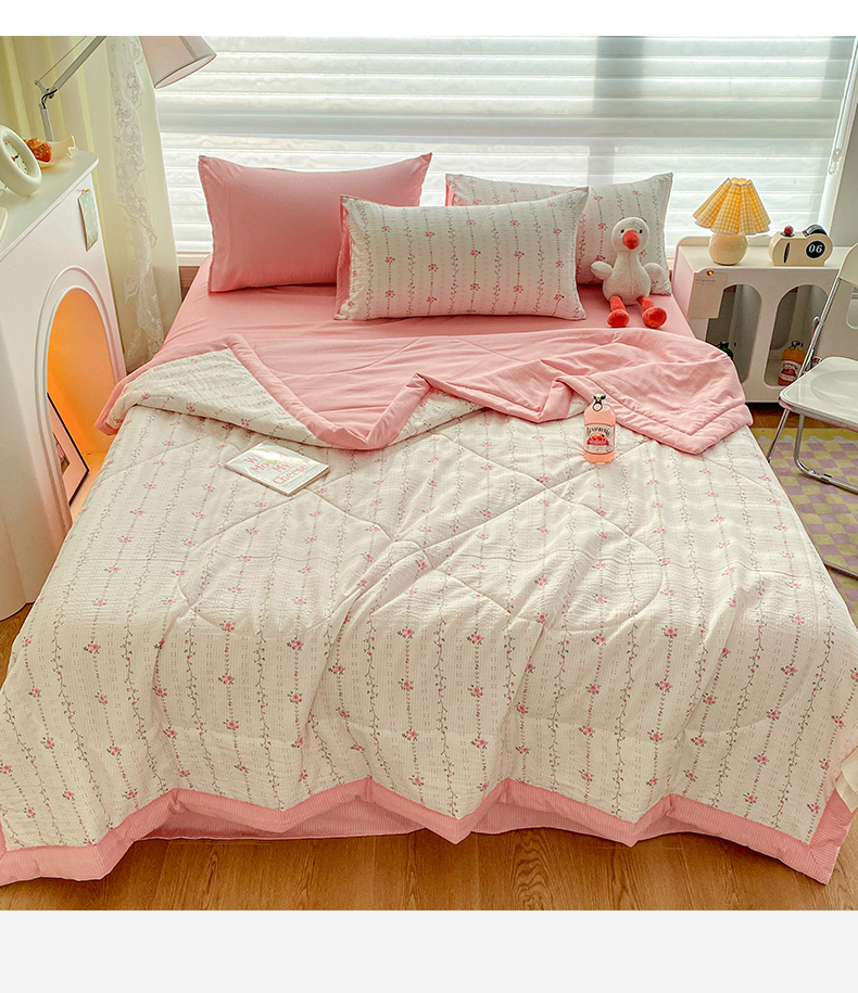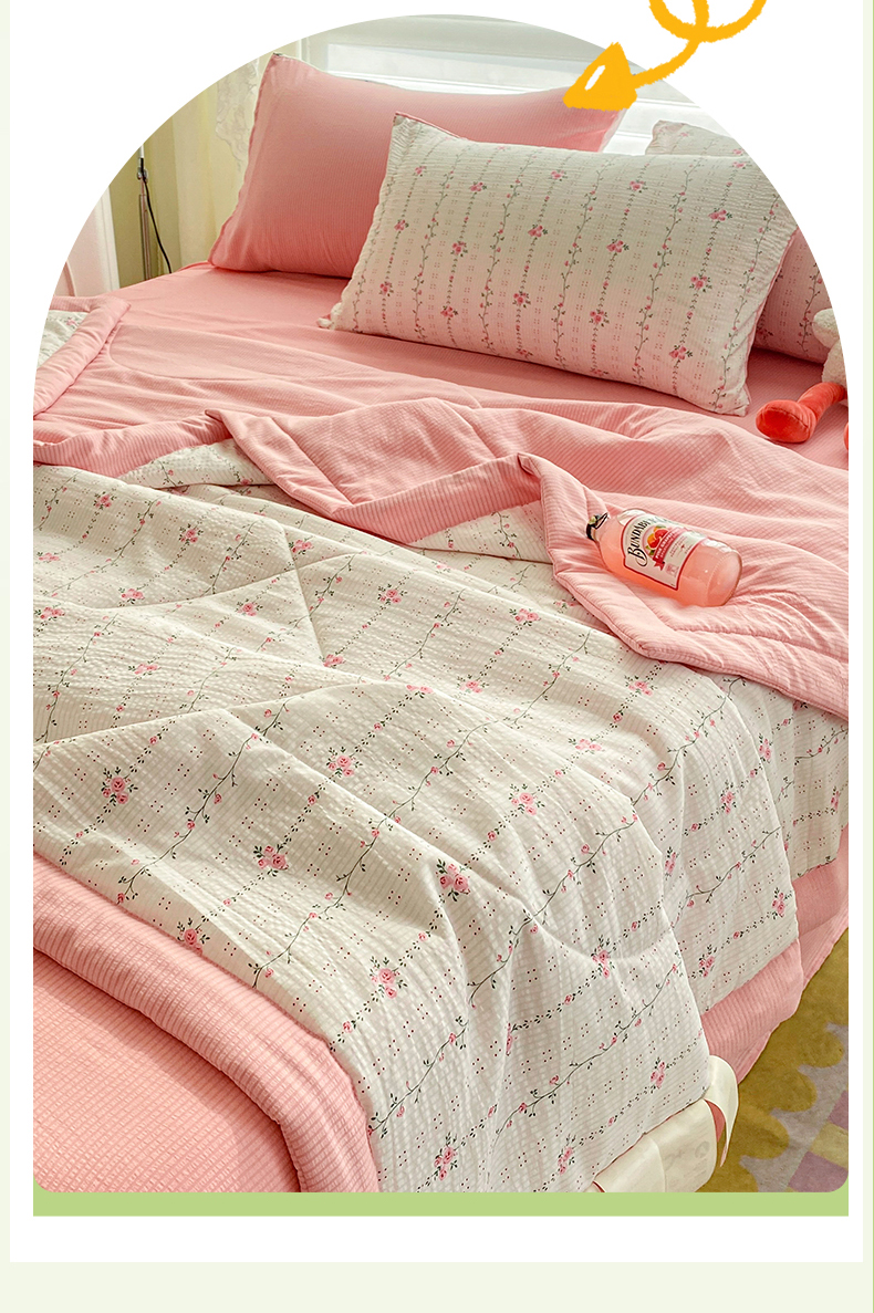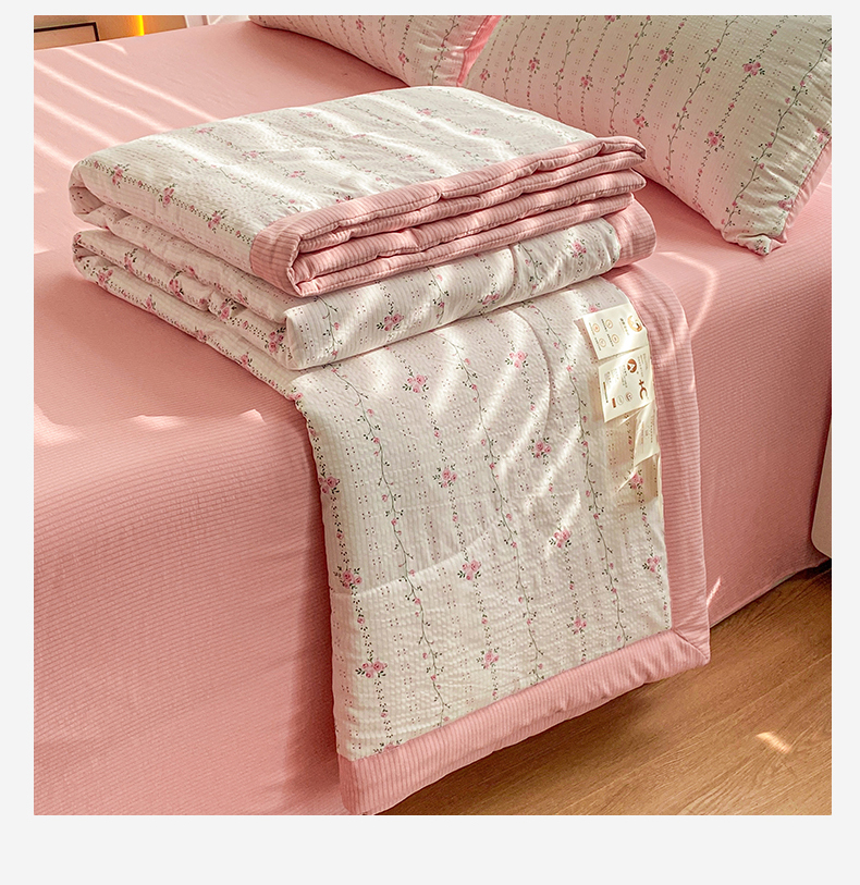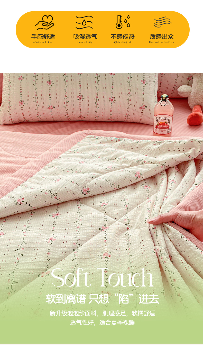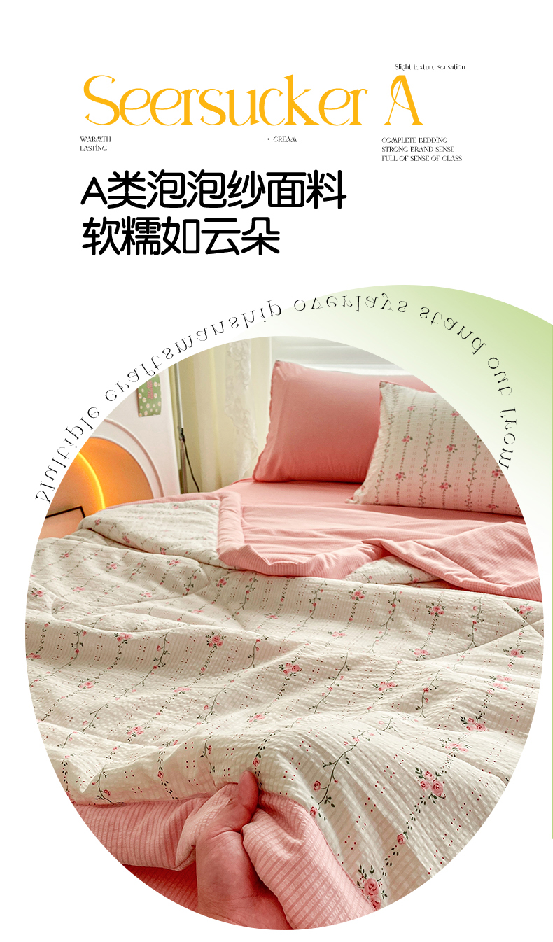 • 91家纺网 家纺一手货源 找家纺 可思家纺 2024新款A类泡泡纱夏被四件套 如梦花季