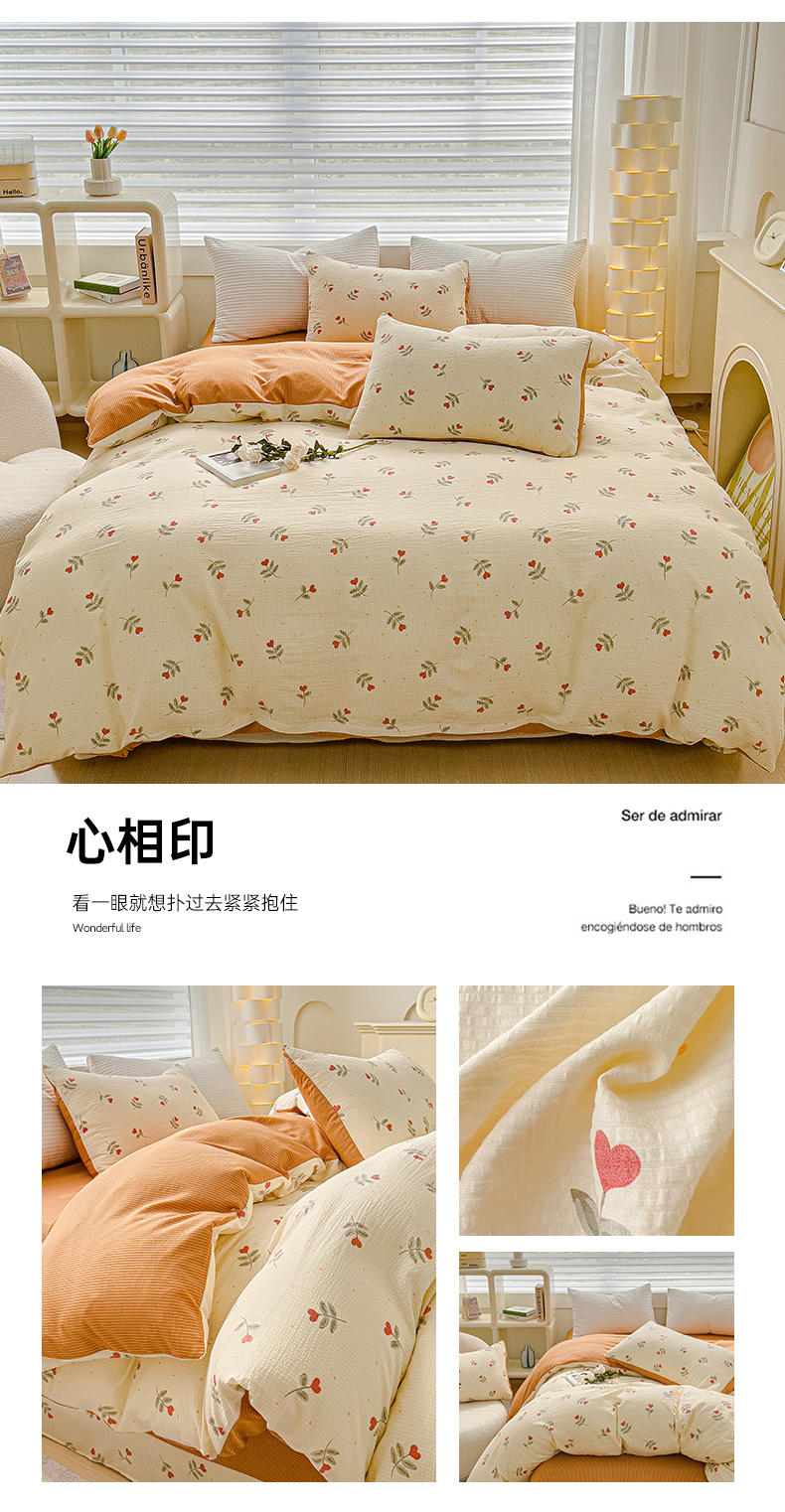 商品名称:可思家纺 2024新款A类水洗泡芙棉泡泡纱四件套 心相印