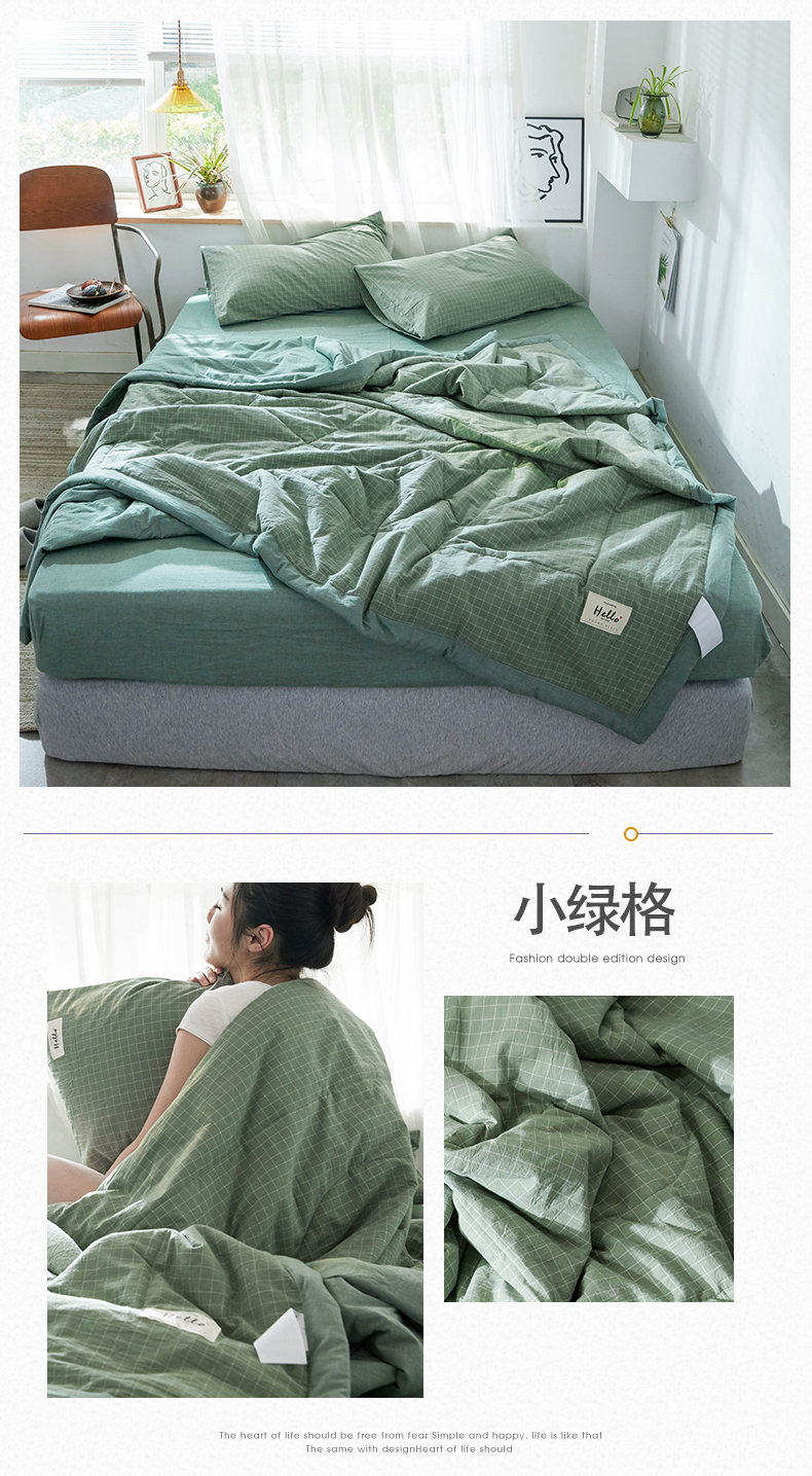 北欧良品 水洗棉夏被四件套水洗棉空调被夏凉被无印良品-小绿格