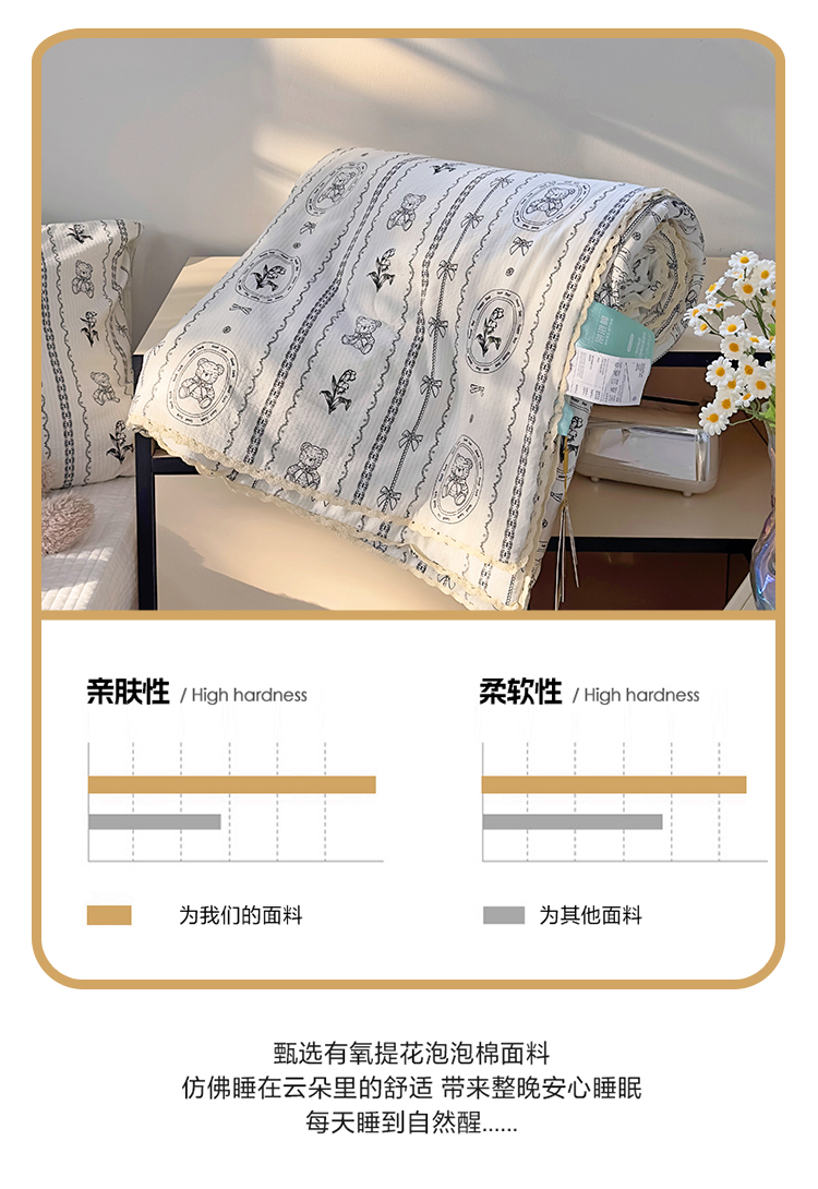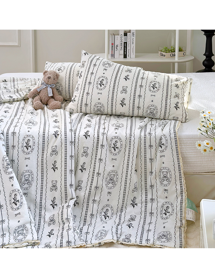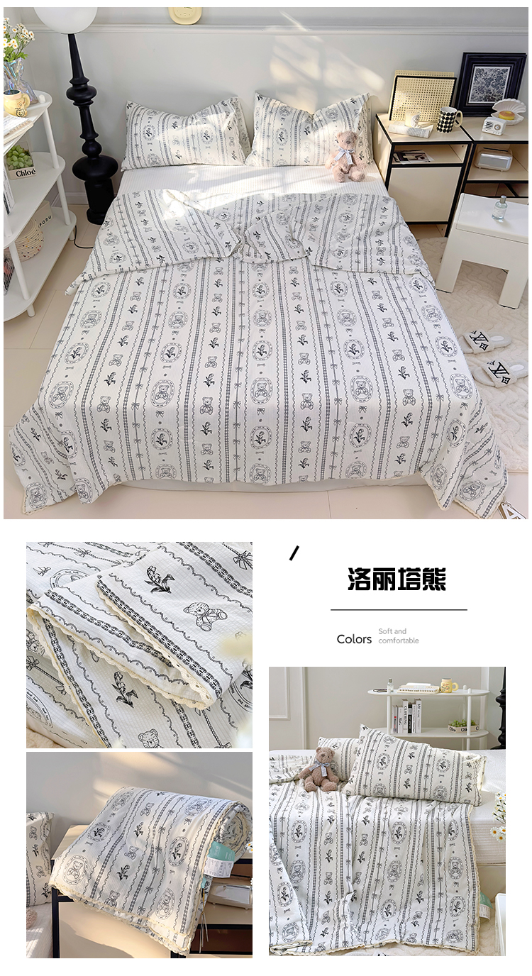 商品名称:塔塔 云朵皱皱棉小花边夏被 洛丽塔熊