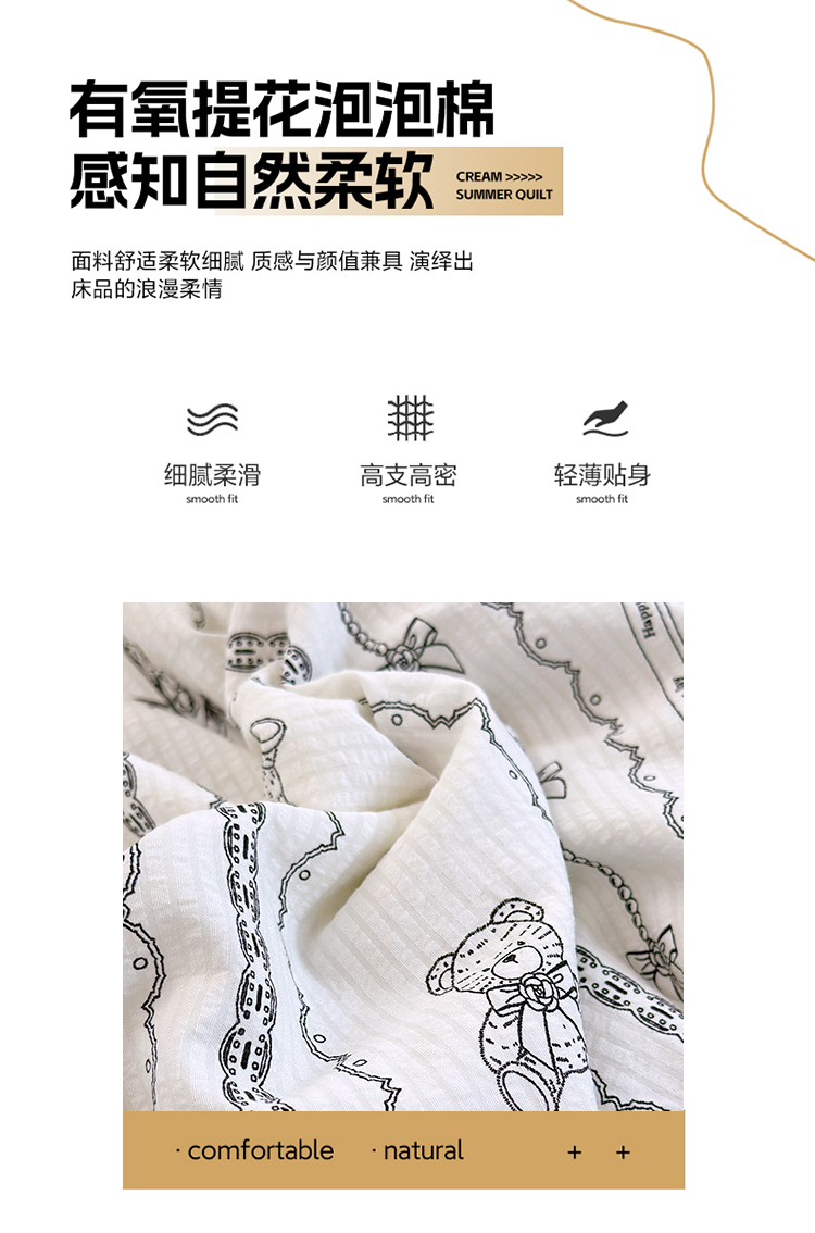 (总)TT.one 塔塔家居 2025新款云朵泡泡棉贝壳边大豆夏被,泡泡橙,泡泡白,泡泡粉,泡泡紫,泡泡绿,泡泡蓝