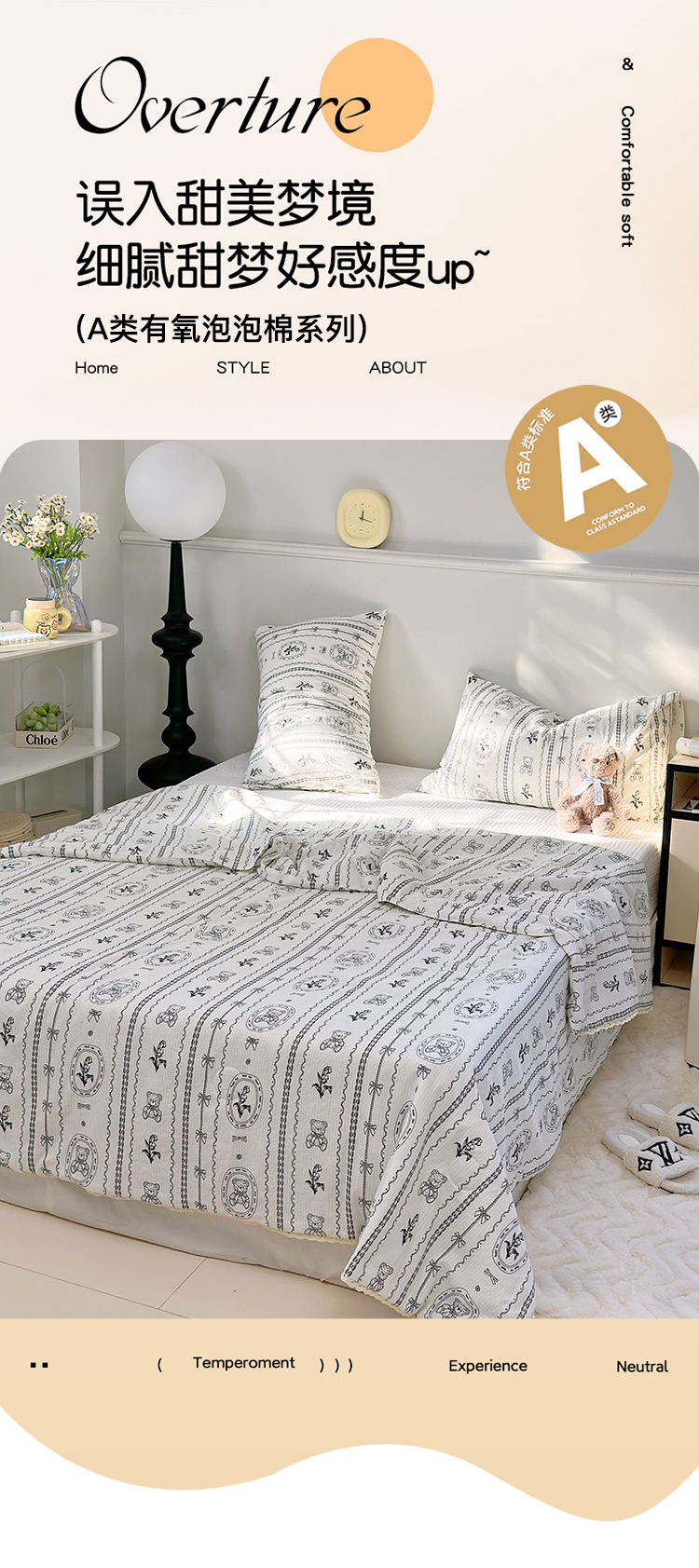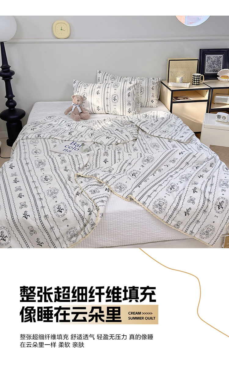 (总)TT.one 塔塔家居 2025新款有氧泡泡棉云朵皱皱棉小花边夏被,洛丽塔熊,可爱熊仔,森林物语,兔兔莓莓,云朵熊,紫色郁金香,曼妙花园,猫咪酱,苹果乐园,山茶花