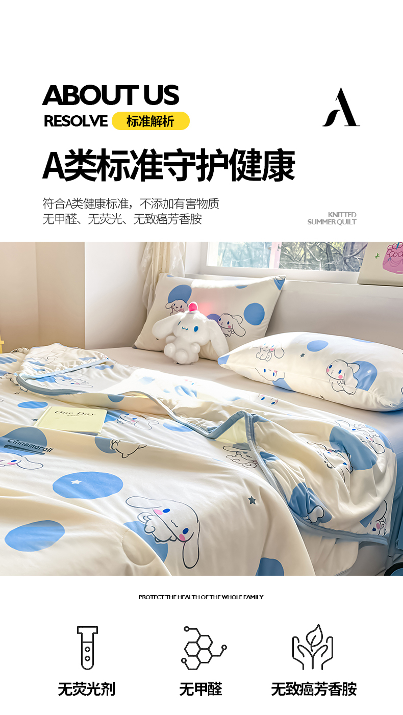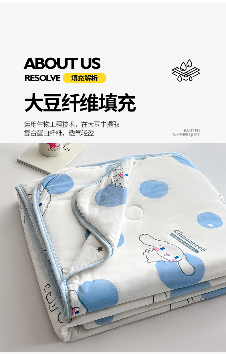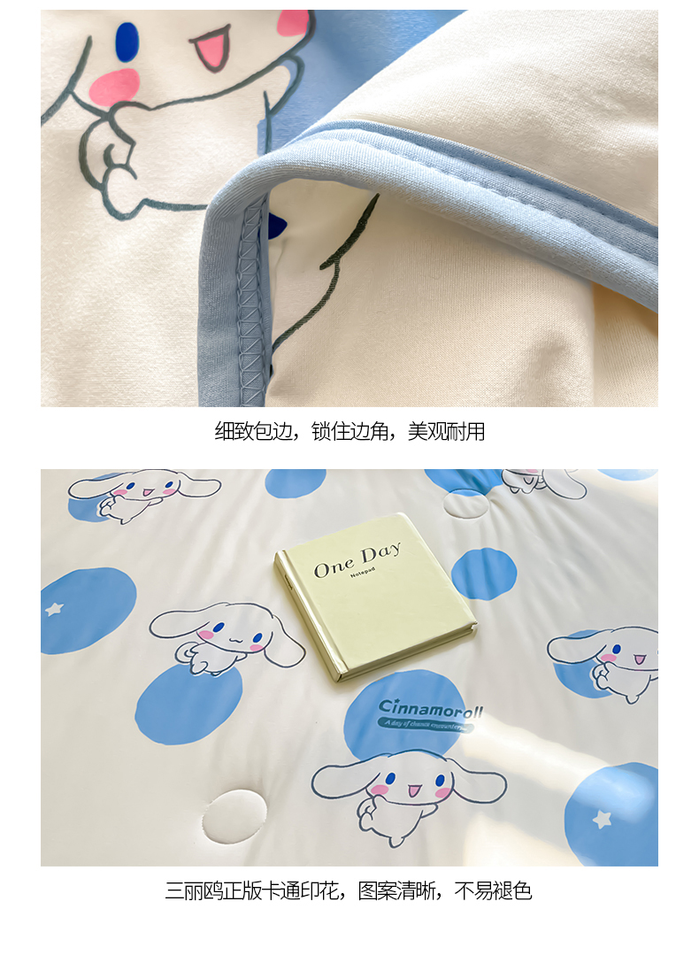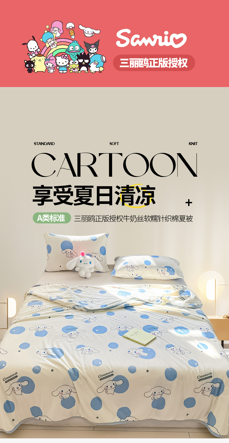 • 91家纺网 家纺一手货源 找家纺 桃子家居 2024新款A类三丽鸥正版授权高品质牛奶丝软糯针织棉夏被系列 针织棉三丽鸥-蓝蓝波点玉桂狗