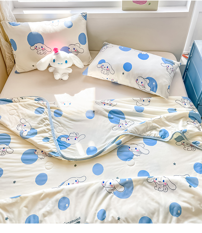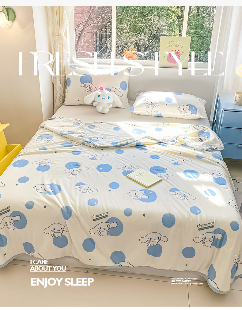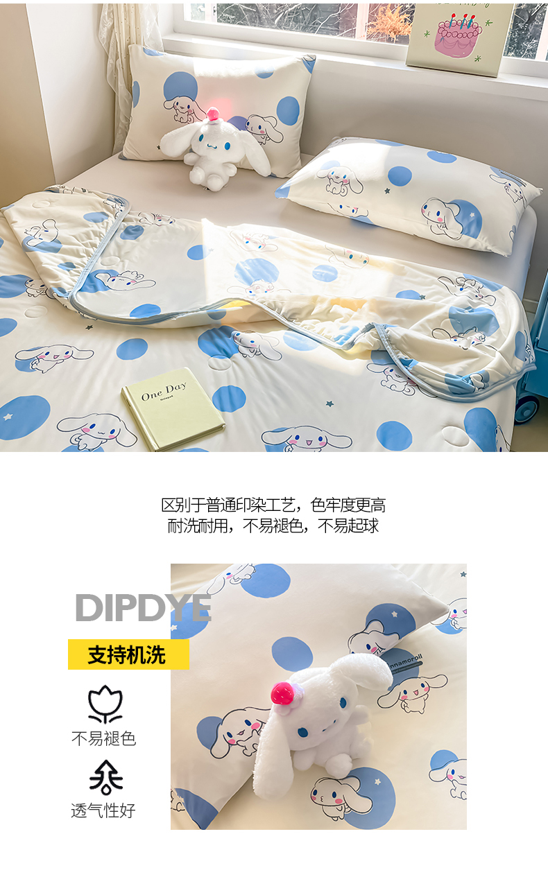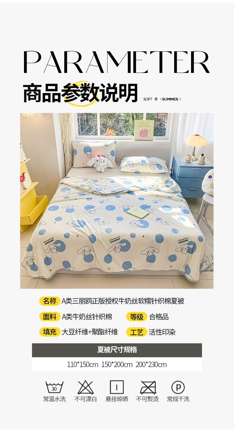 • 91家纺网 家纺一手货源 找家纺 桃子家居 2024新款A类三丽鸥正版授权高品质牛奶丝软糯针织棉夏被系列 针织棉三丽鸥-蓝蓝波点玉桂狗