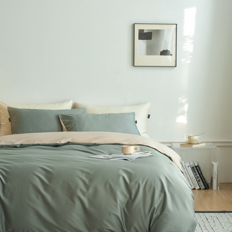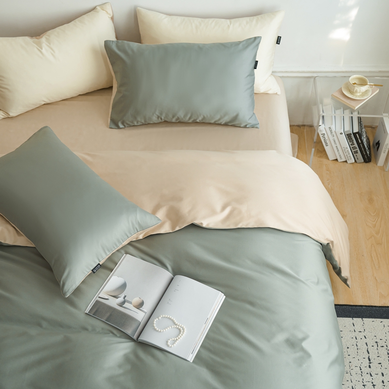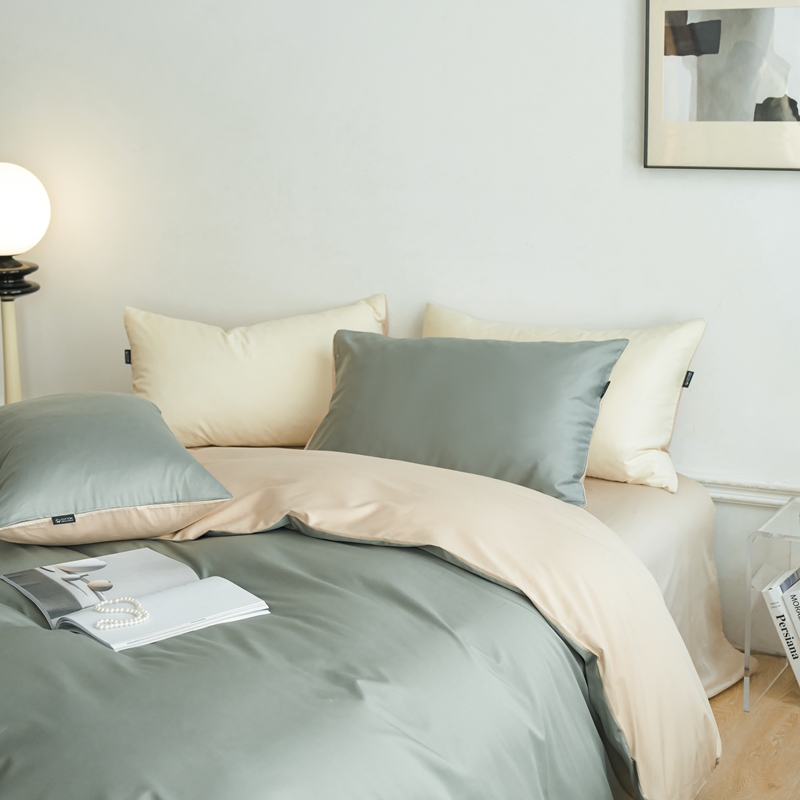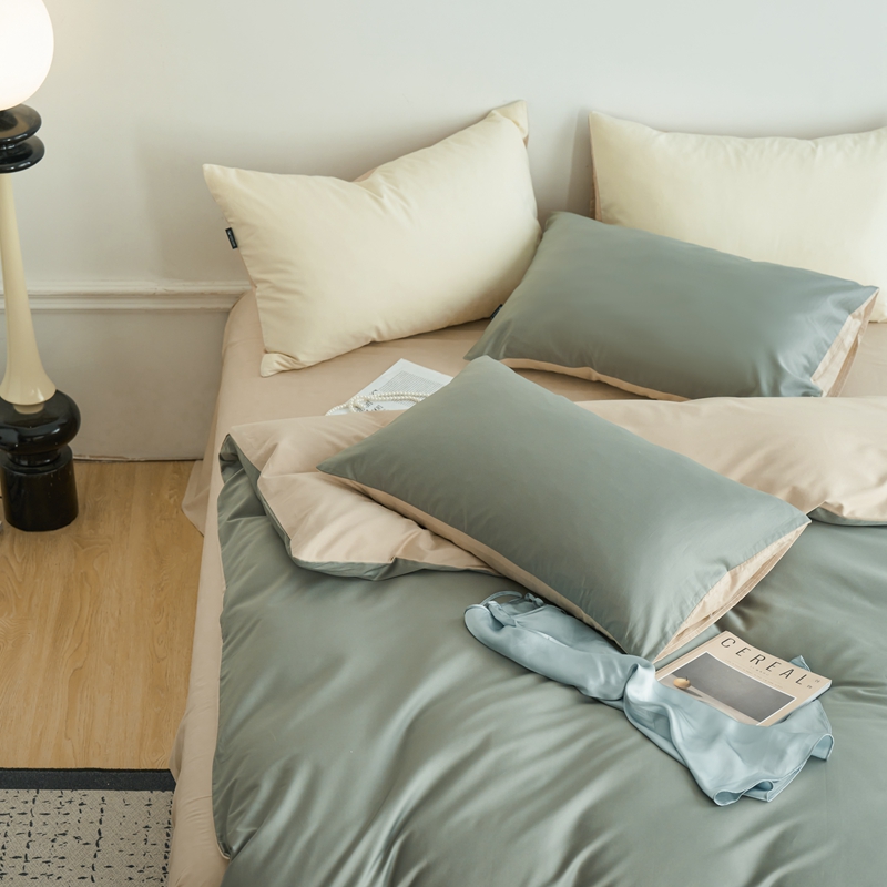 商品名称:安莱生活 2024新款100s长绒棉贡缎双拼四件套 水绿-棕灰