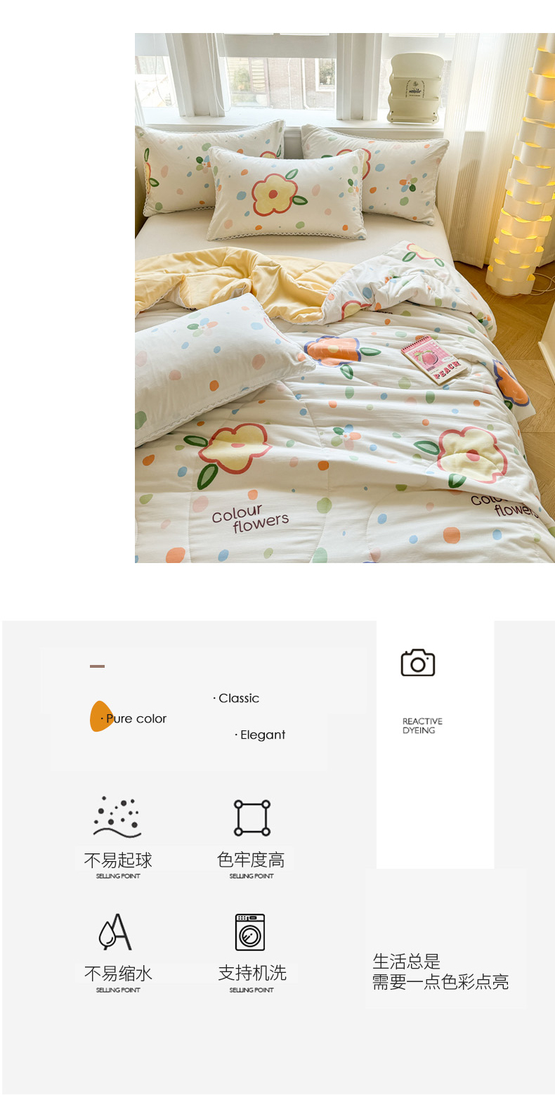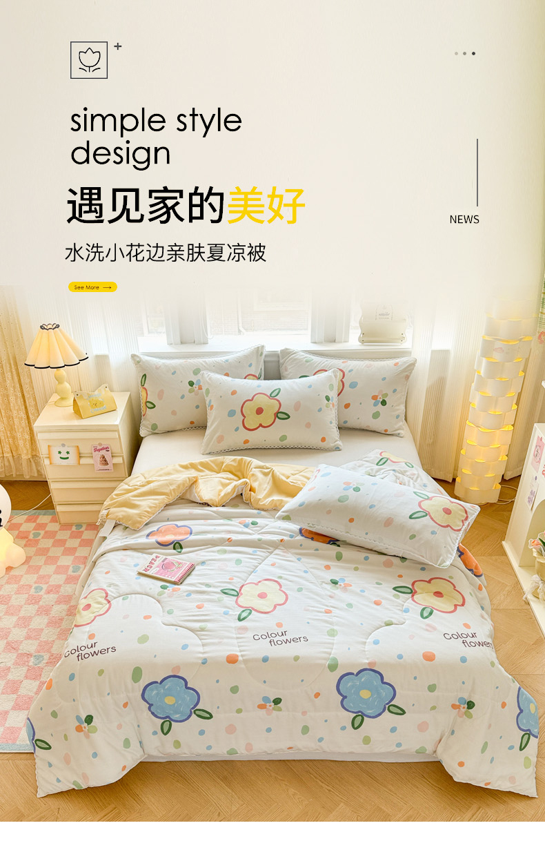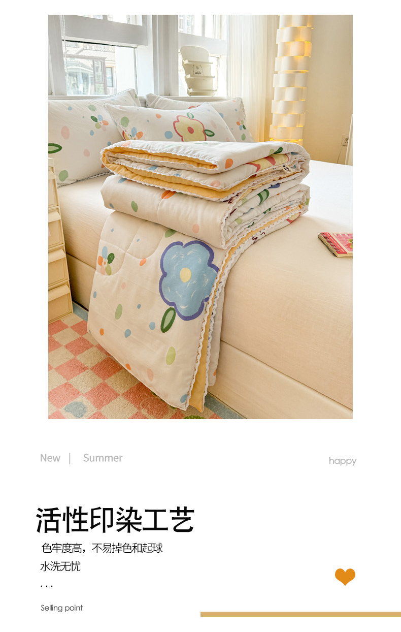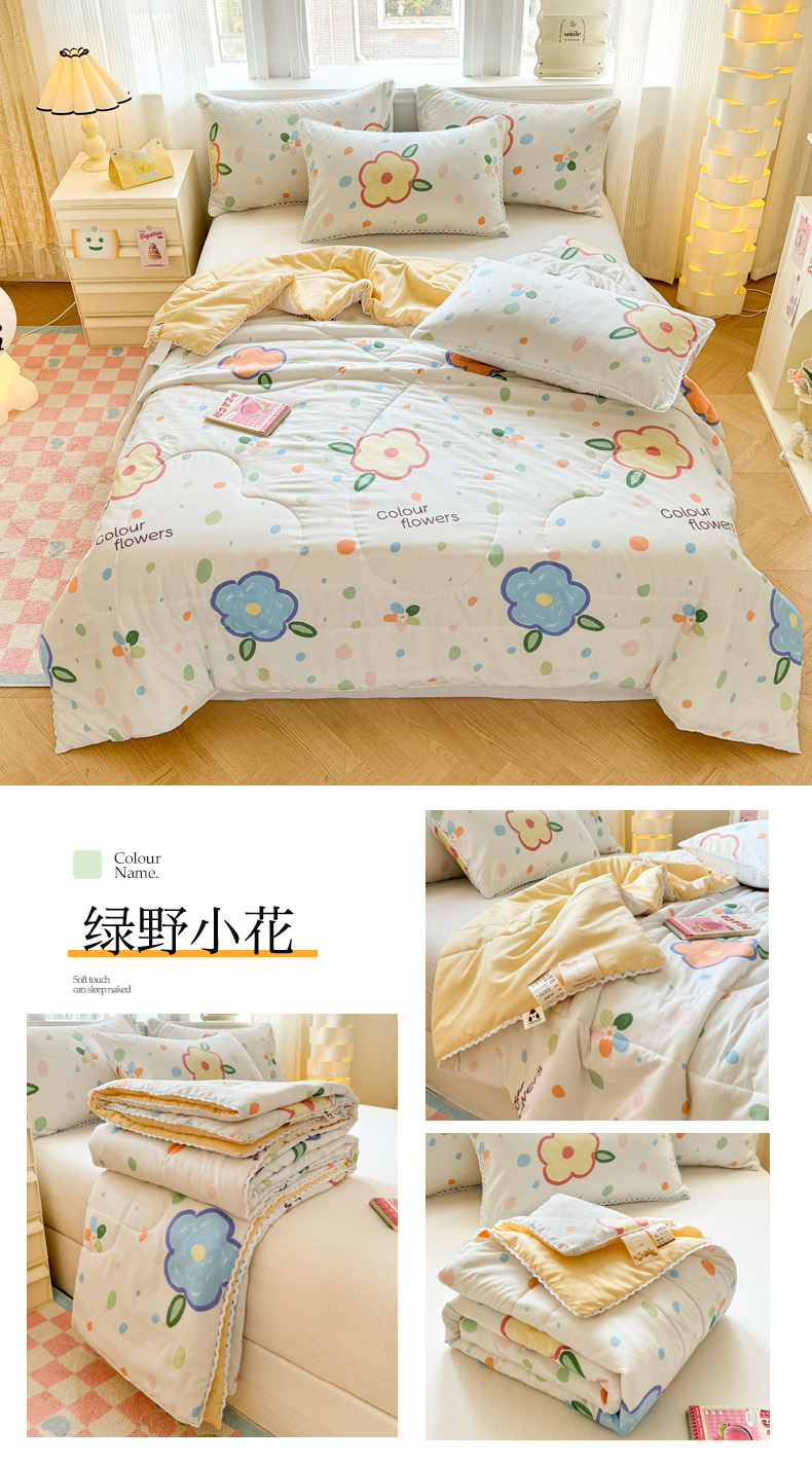 商品名称:慕尚家纺2025新款双层纱水洗夏被子被芯 绿野小花