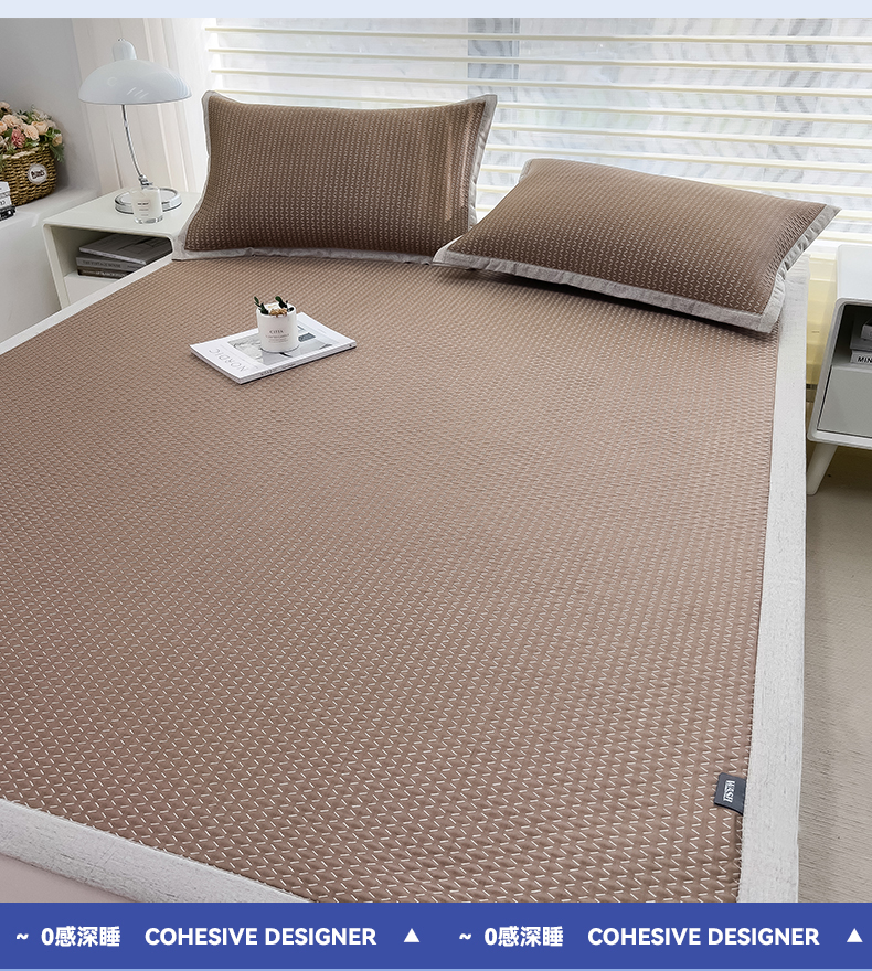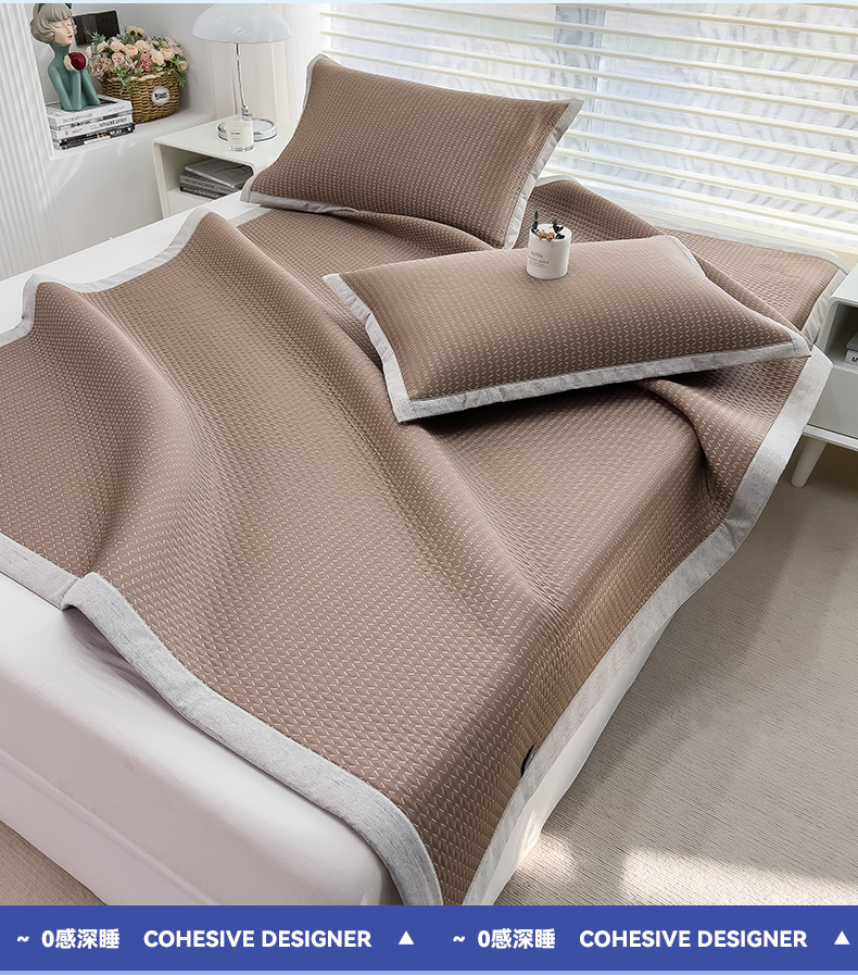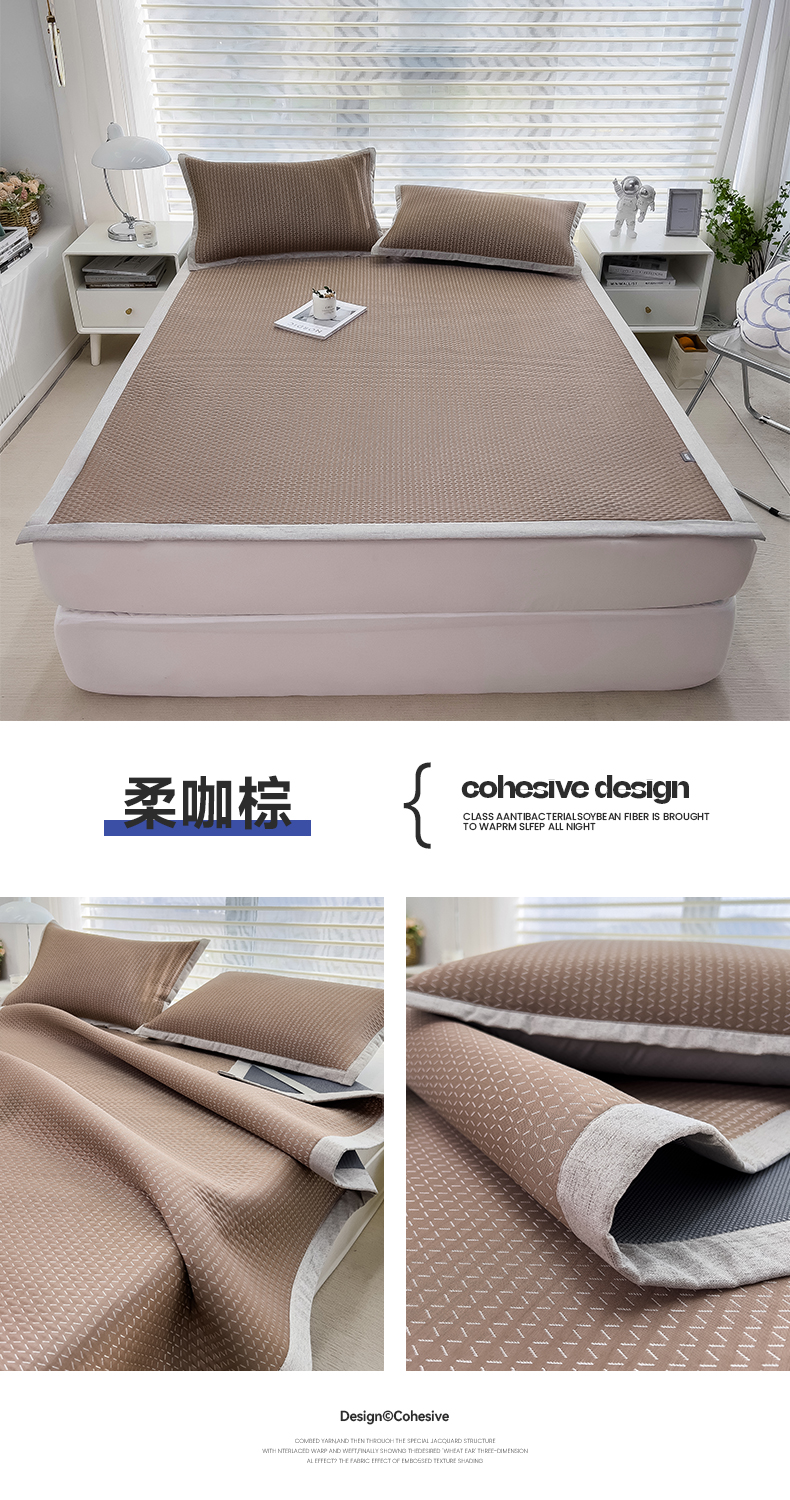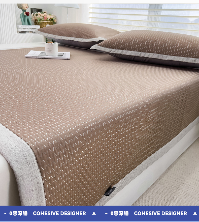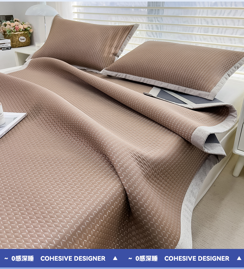 商品名称:摩妮卡 2025新款提花凉感雪莲丝凉席三件套床笠床席款 柔咖棕-床席款