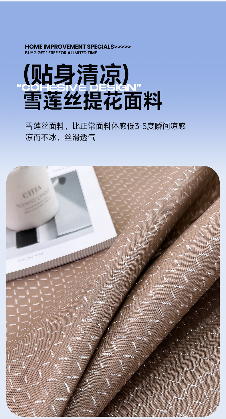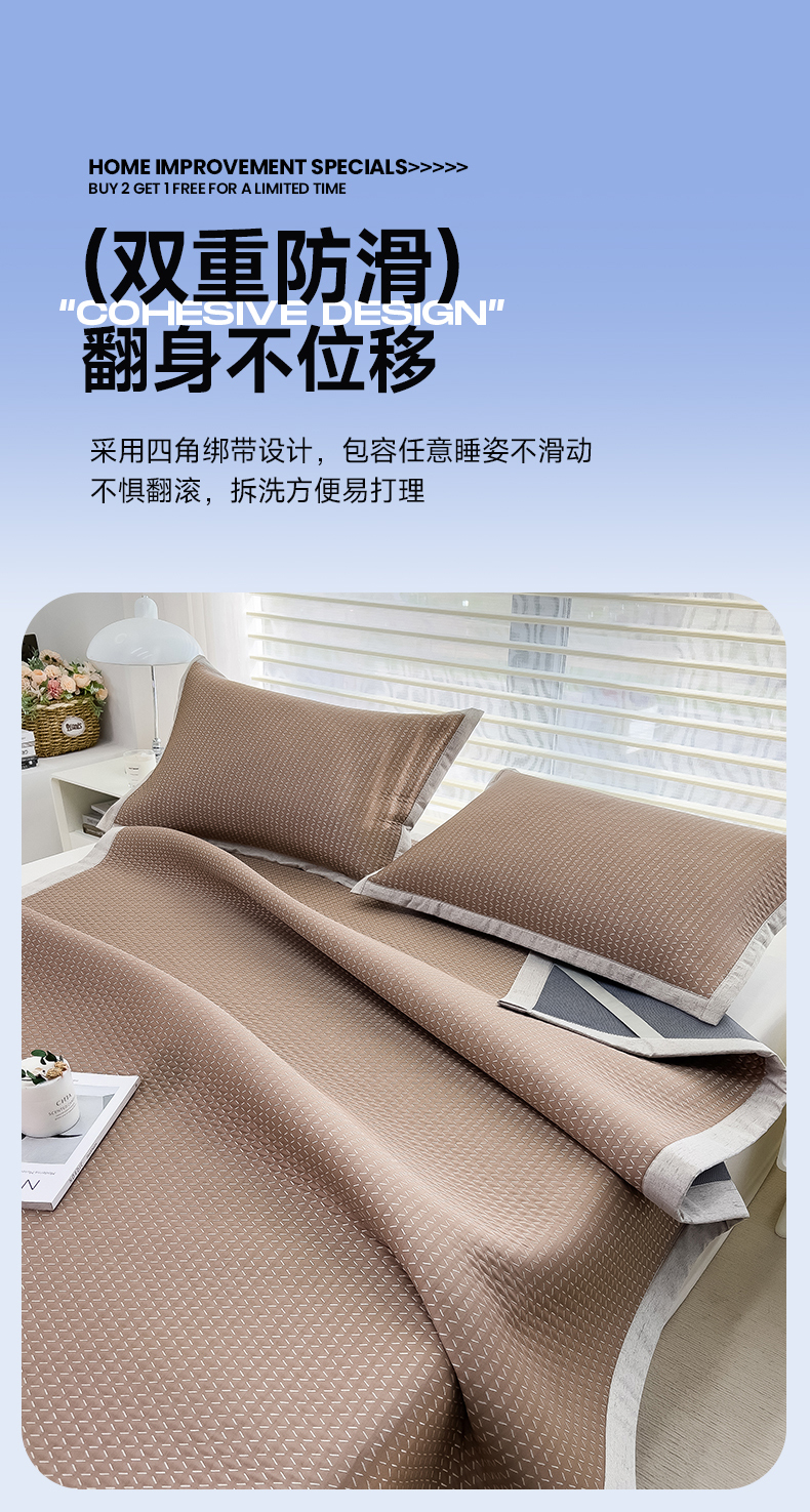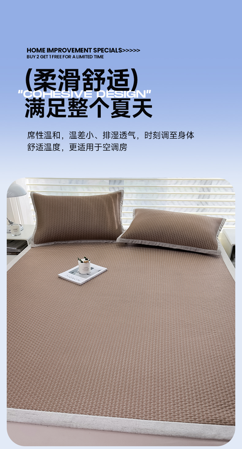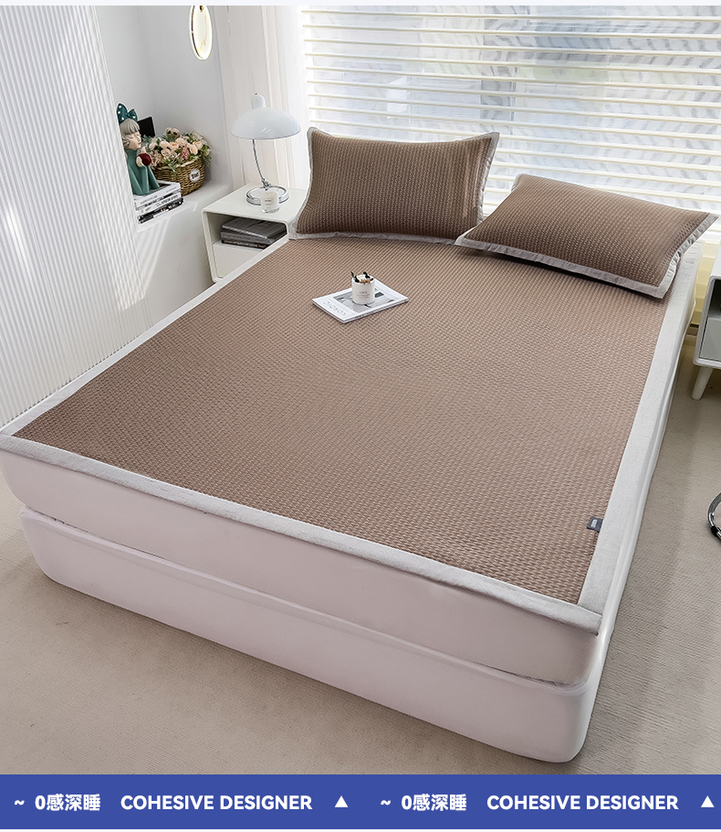 商品名称:摩妮卡 2025新款提花凉感雪莲丝凉席三件套床笠床席款 柔咖棕-床席款