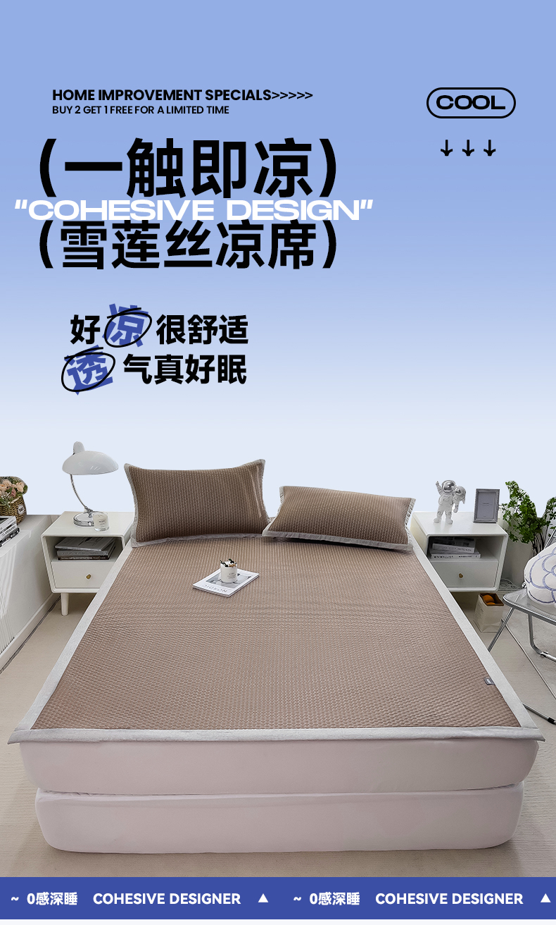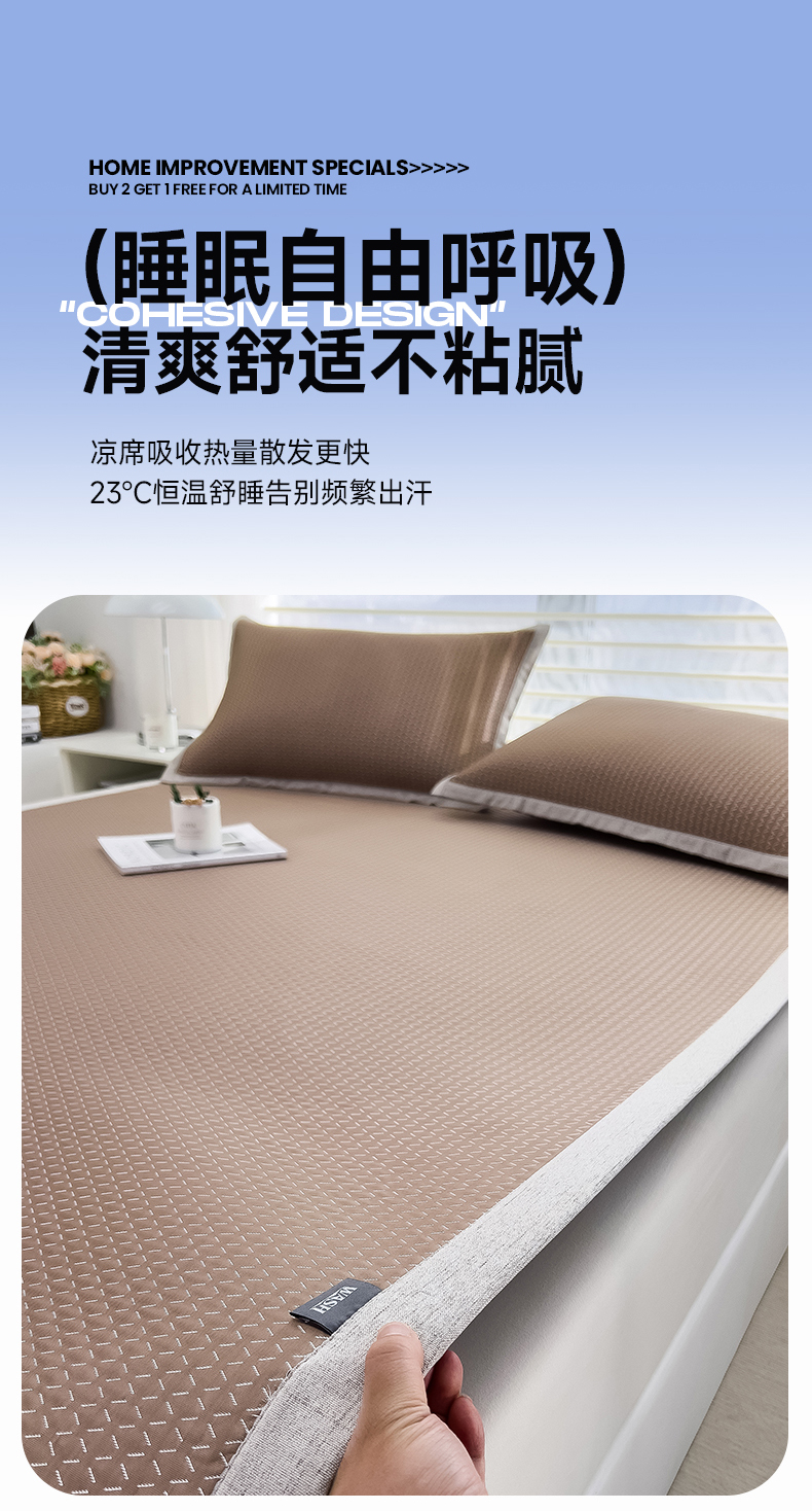 摩妮卡 2025新款提花凉感雪莲丝凉席三件套床笠床席款 柔咖棕-床席款