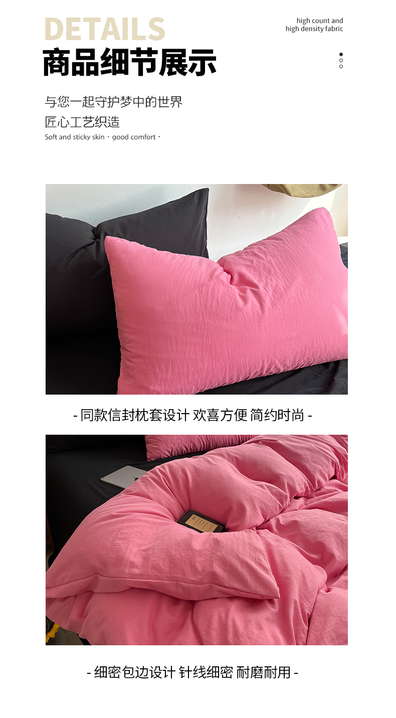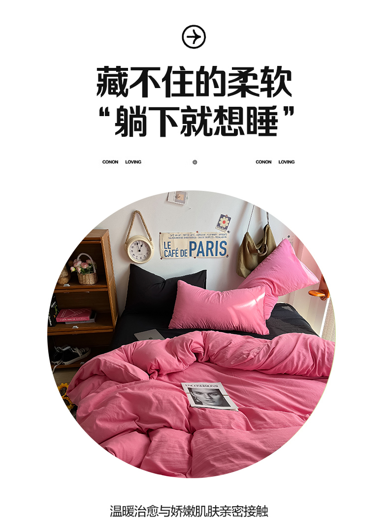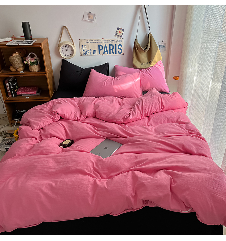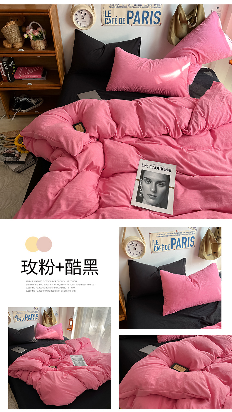 当前位置: 91家纺网 > 商品网购 > 床品套件 > 四件套 > 全棉普通四件套 > 易辰美 2024新款混搭超柔水洗棉四件套 玫粉+酷黑