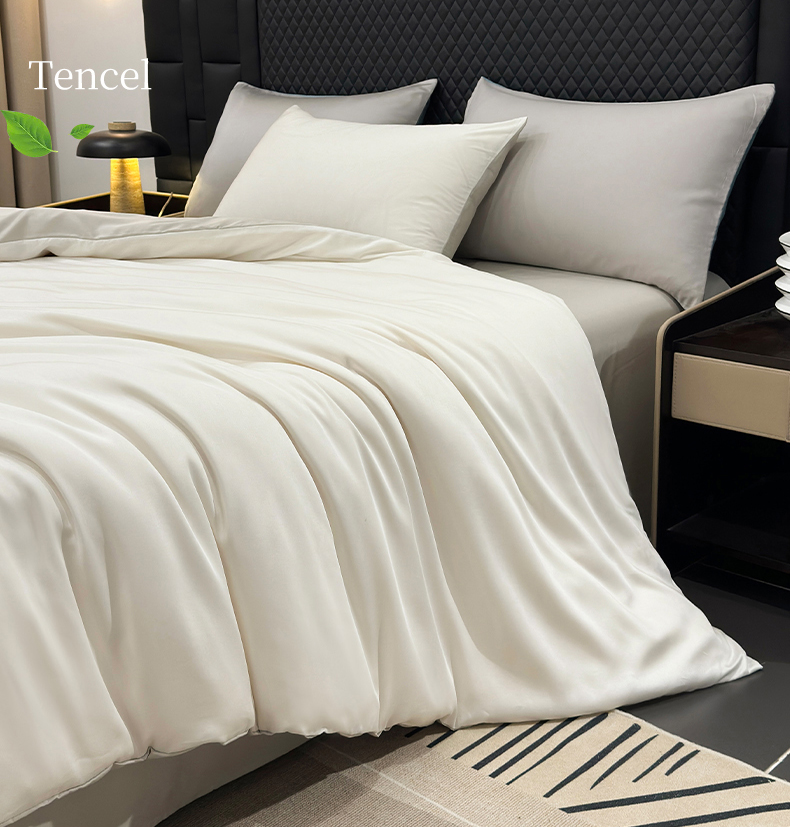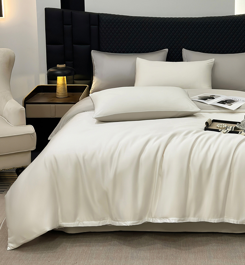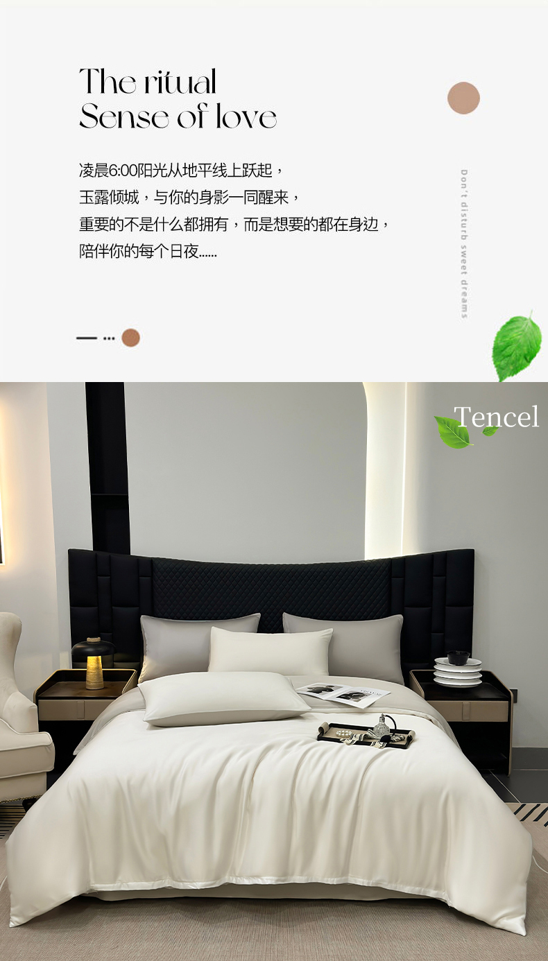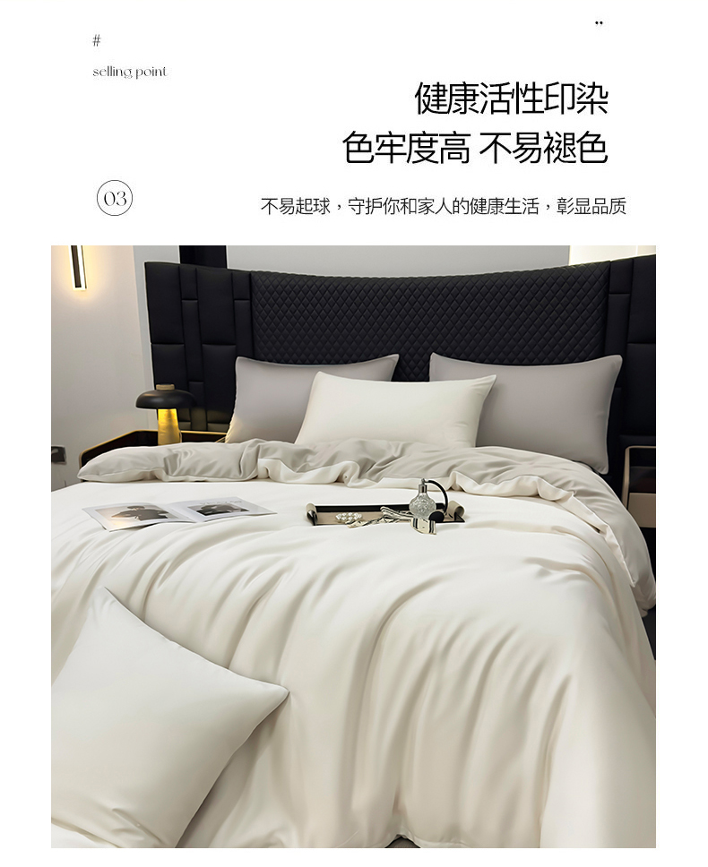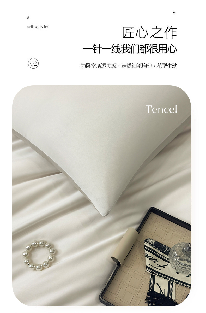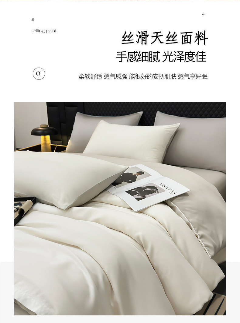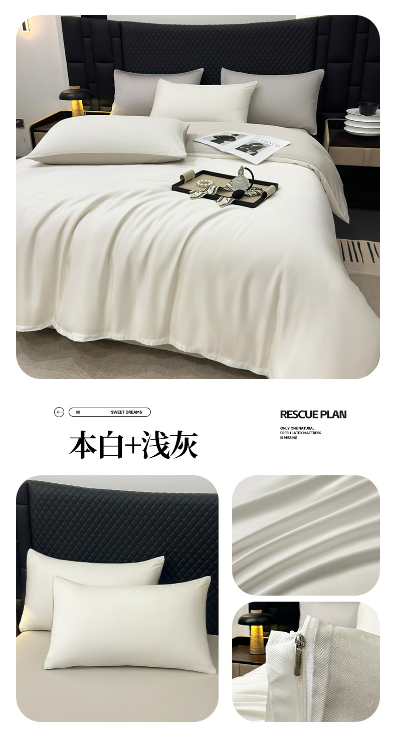 直播爆款A类轻奢60S莱赛尔天丝四件套真丝四件套 本白+银灰