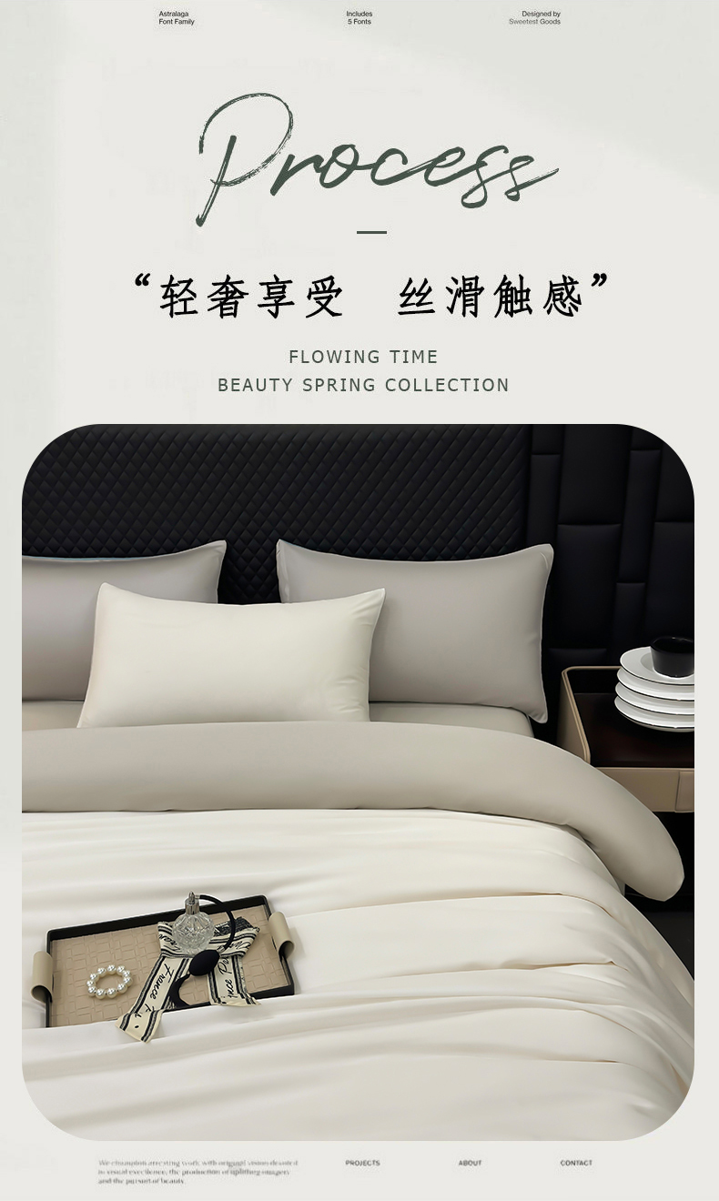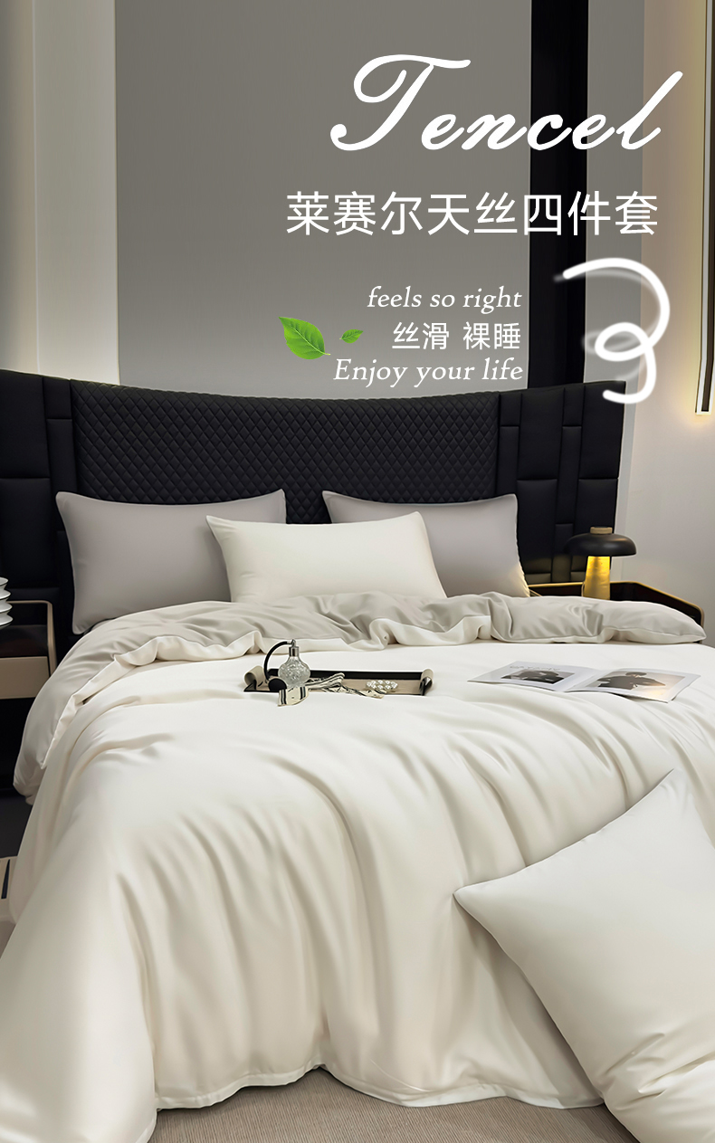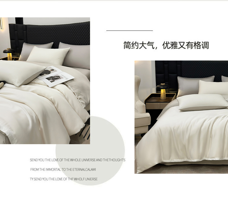 商品名称:直播爆款A类轻奢60S莱赛尔天丝四件套真丝四件套 本白+银灰