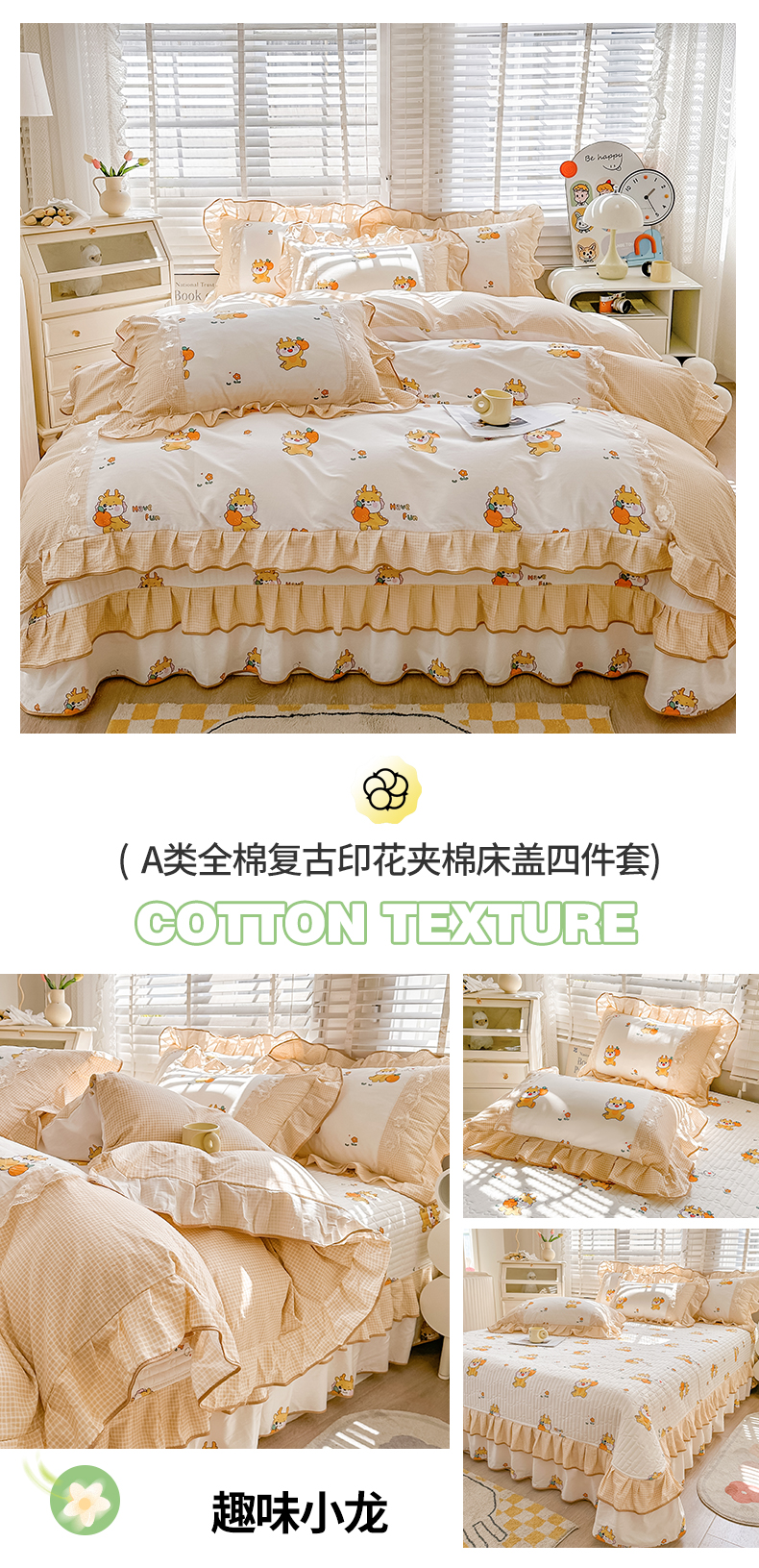 当前位置: 91家纺网 > 商品网购 > 床品套件 > 四件套 > 全棉普通四件套 > 宜凡家纺 2024新款全棉复古印花床盖四件套 趣味小龙