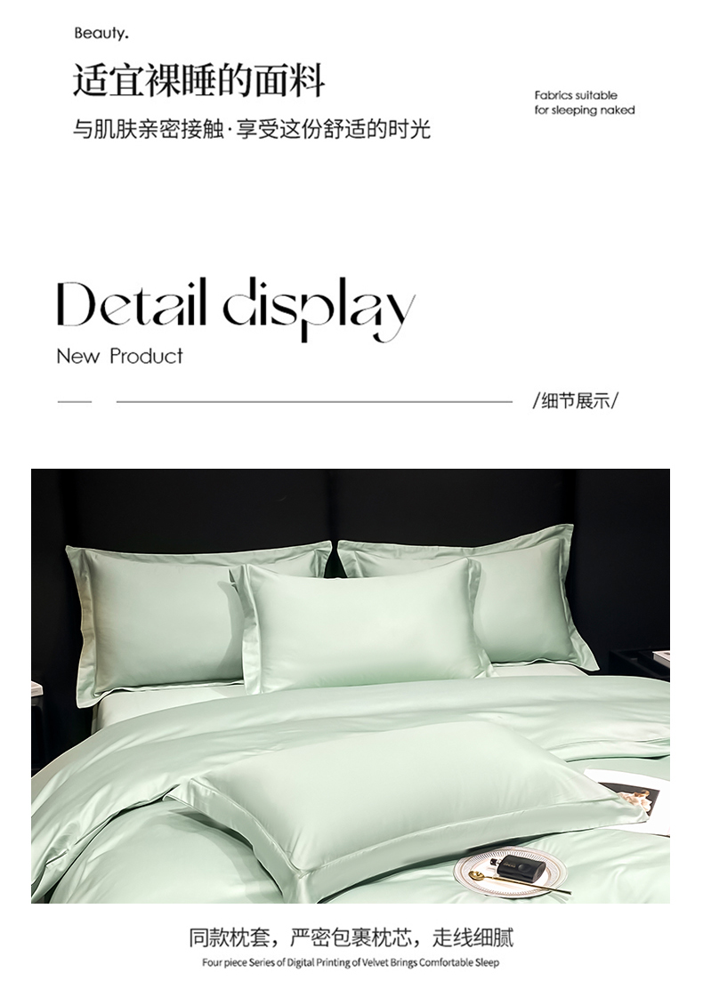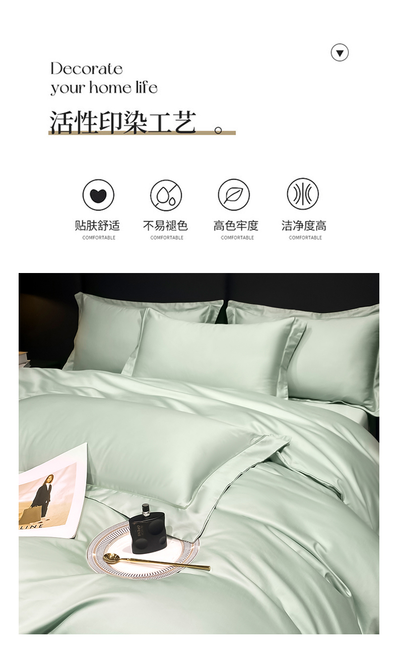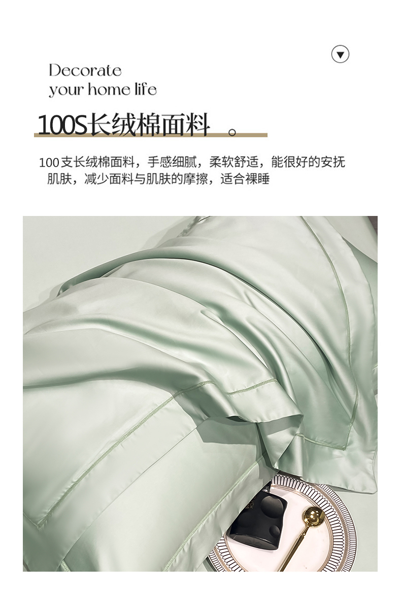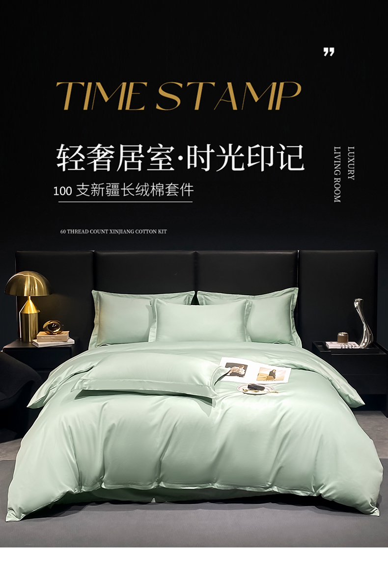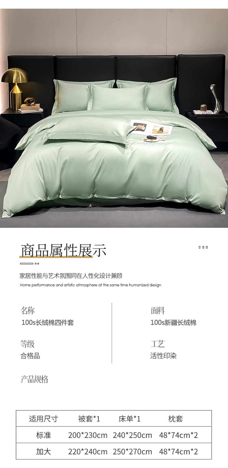商品名称:富之航家纺 2024新款长绒棉四件套 雅克-卓豆绿