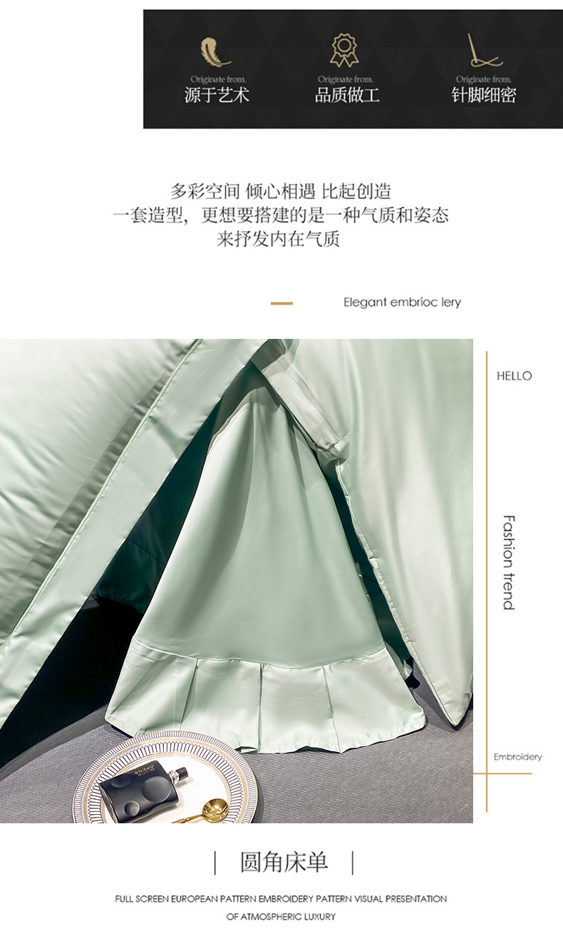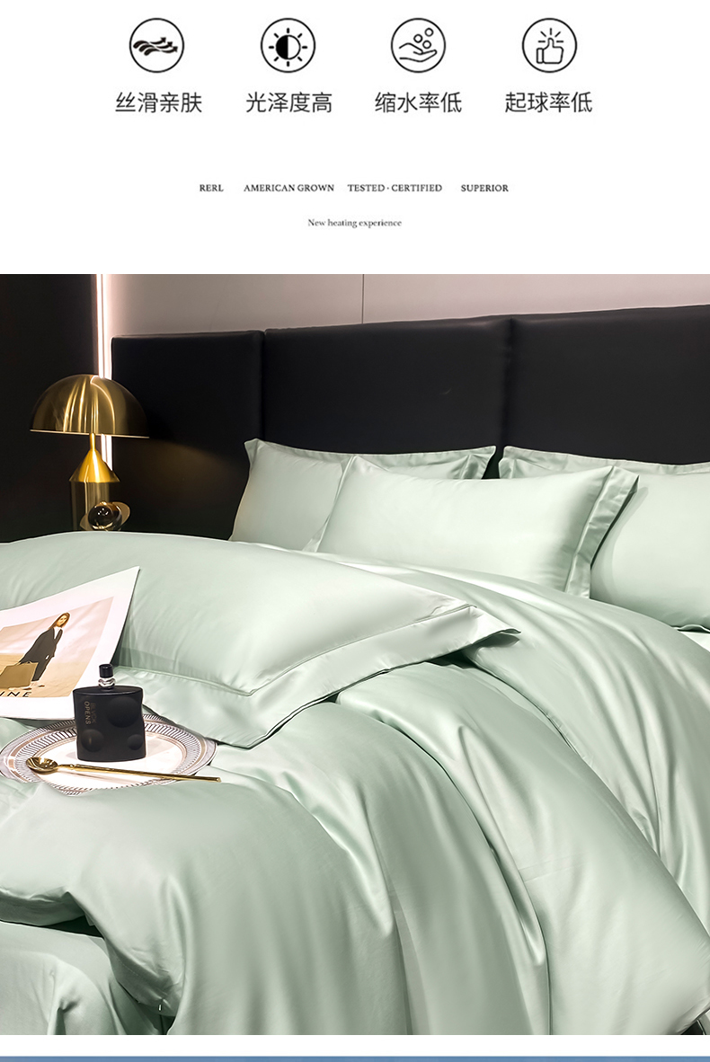 富之航家纺 2024新款长绒棉四件套 雅克-卓豆绿