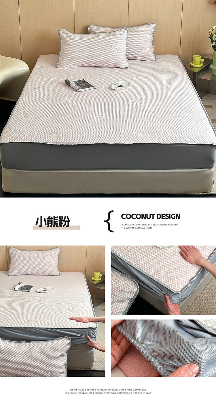 商品名称:顾里家纺 新款冰豆豆立体提花软席床笠款 小熊粉