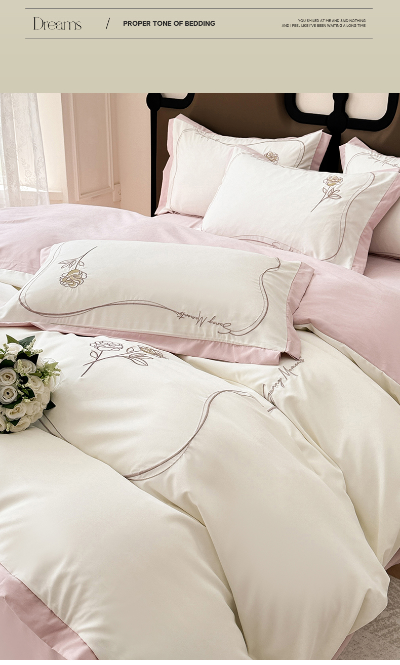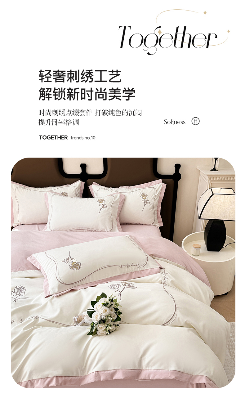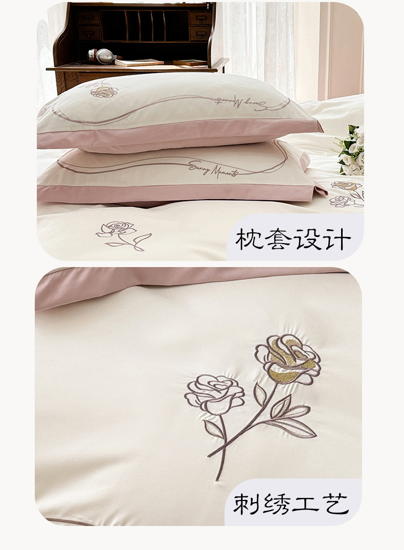 芯贝儿 2024新款简约轻奢云锦m磨毛刺绣长绒m绣花四件套玫瑰之恋 玫瑰之恋--奶玉