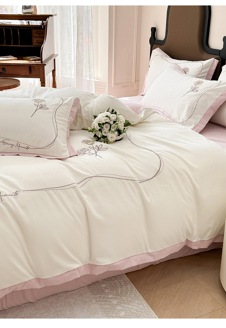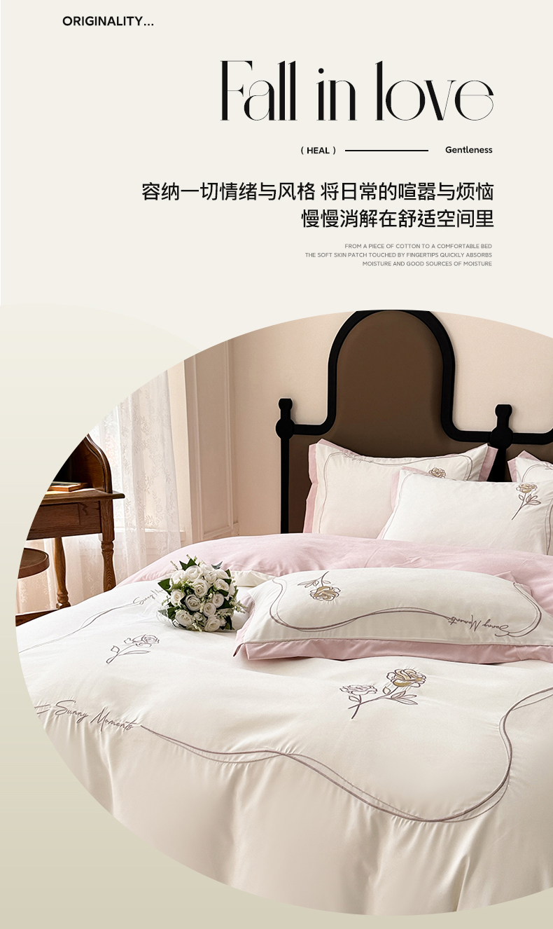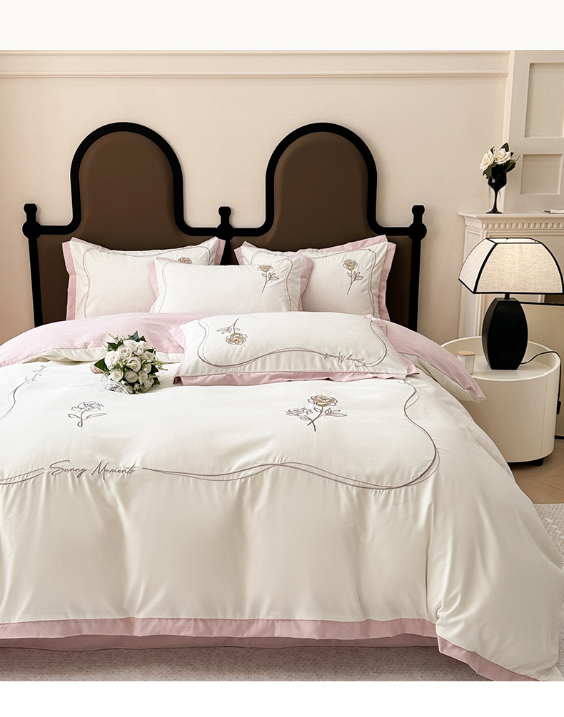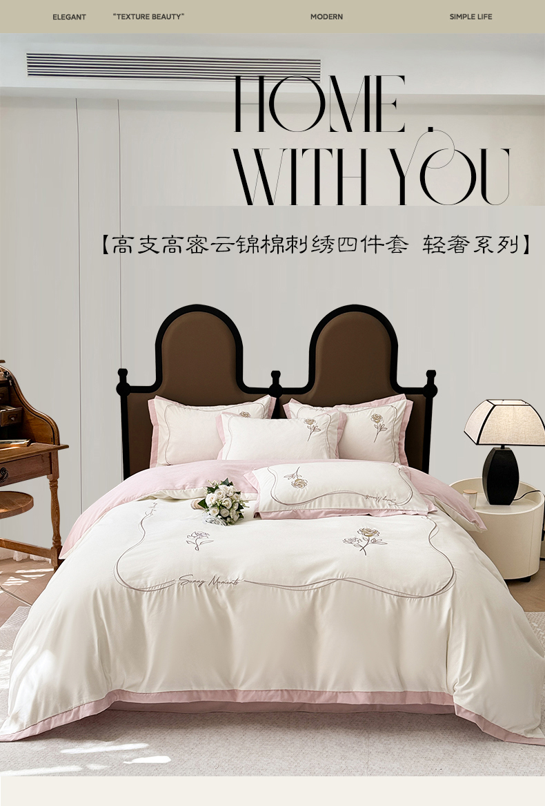 芯贝儿 2024新款简约轻奢云锦m磨毛刺绣长绒m绣花四件套玫瑰之恋 玫瑰之恋--奶玉