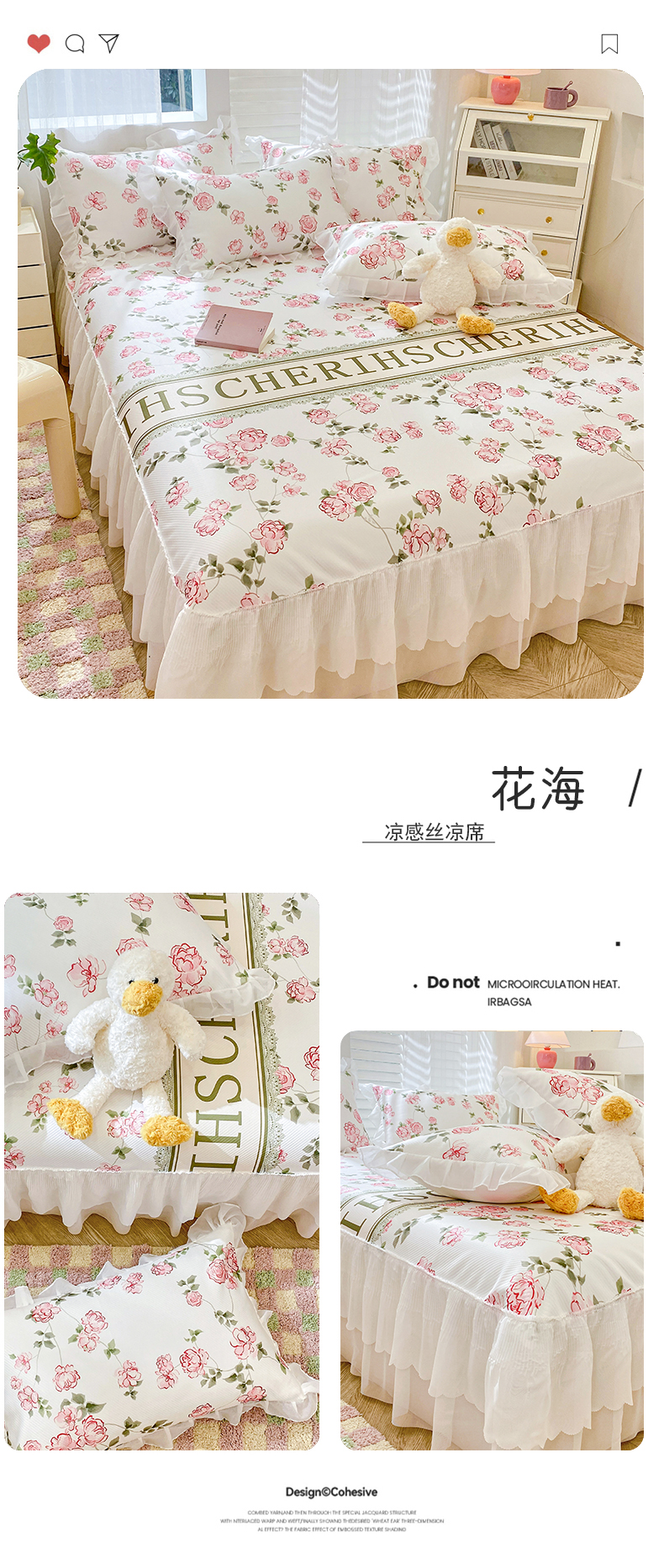 商品名称:花漾家居 2024新款韩版满天星升级款斜纹冰丝凉感丝豆豆席凉席 花海