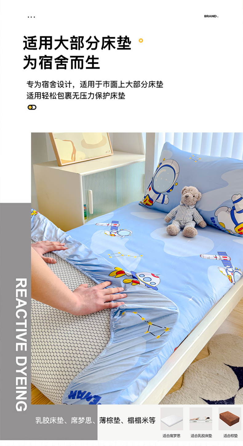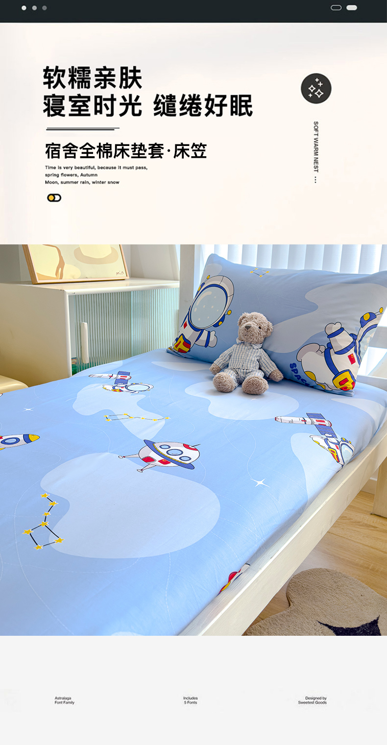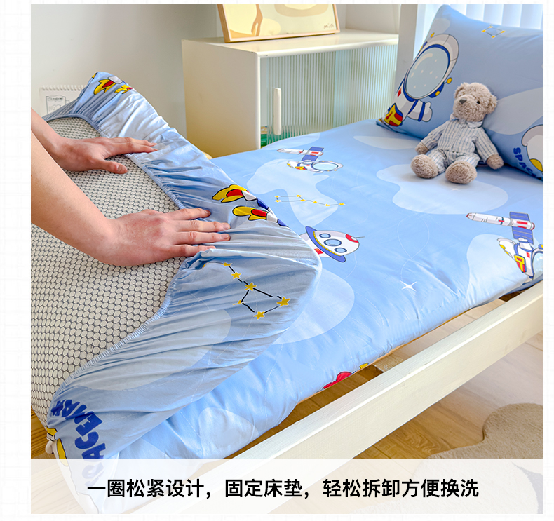 商品名称:金鑫汇 2024新款全棉卡通印花学生床垫套床笠系列 星际穿越