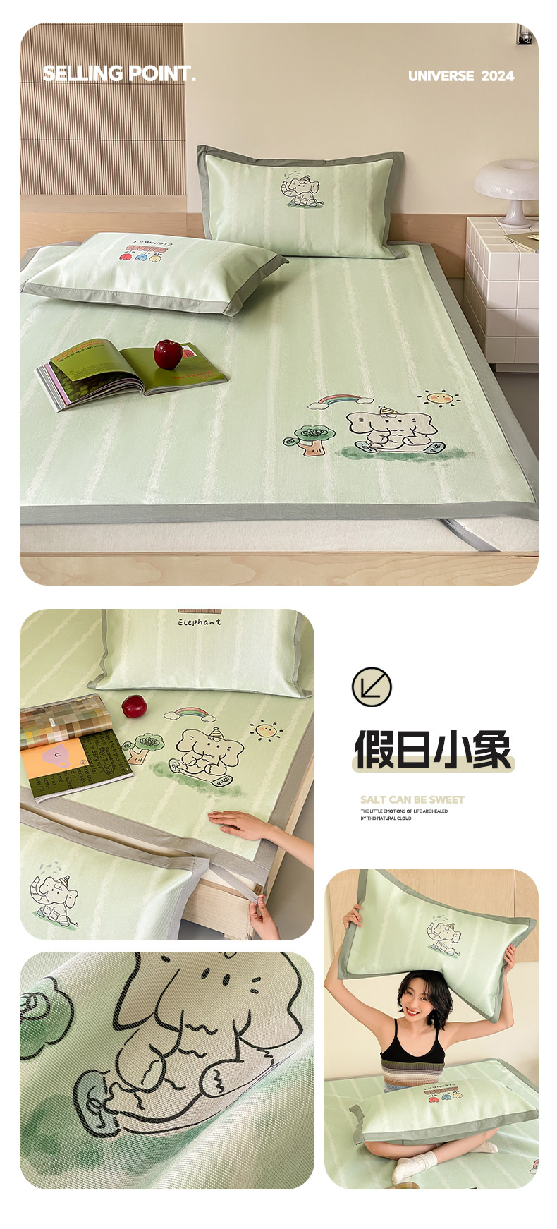 圆岛家纺 2024新款900D卡通冰丝养生席 假日小象