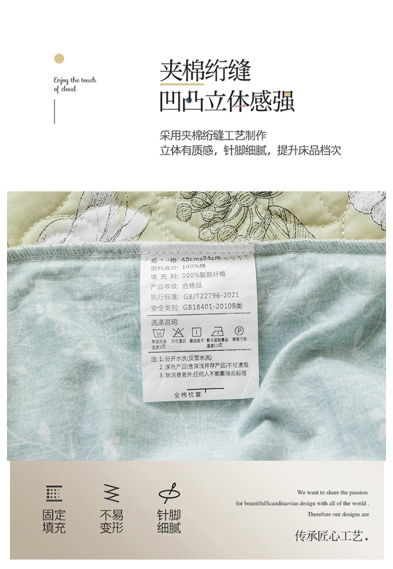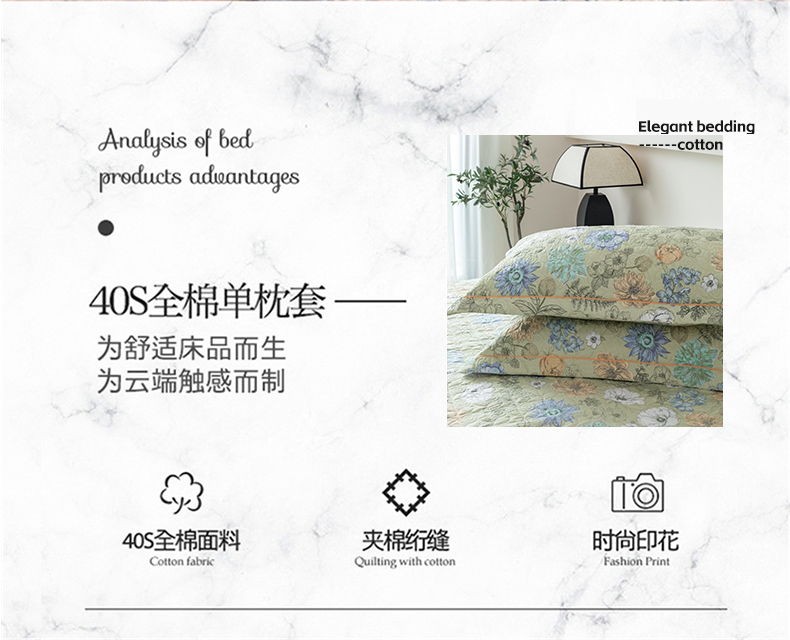 商品名称:优乐家纺 2025新款全棉斜纹13376宽边枕头套 安琪-绿