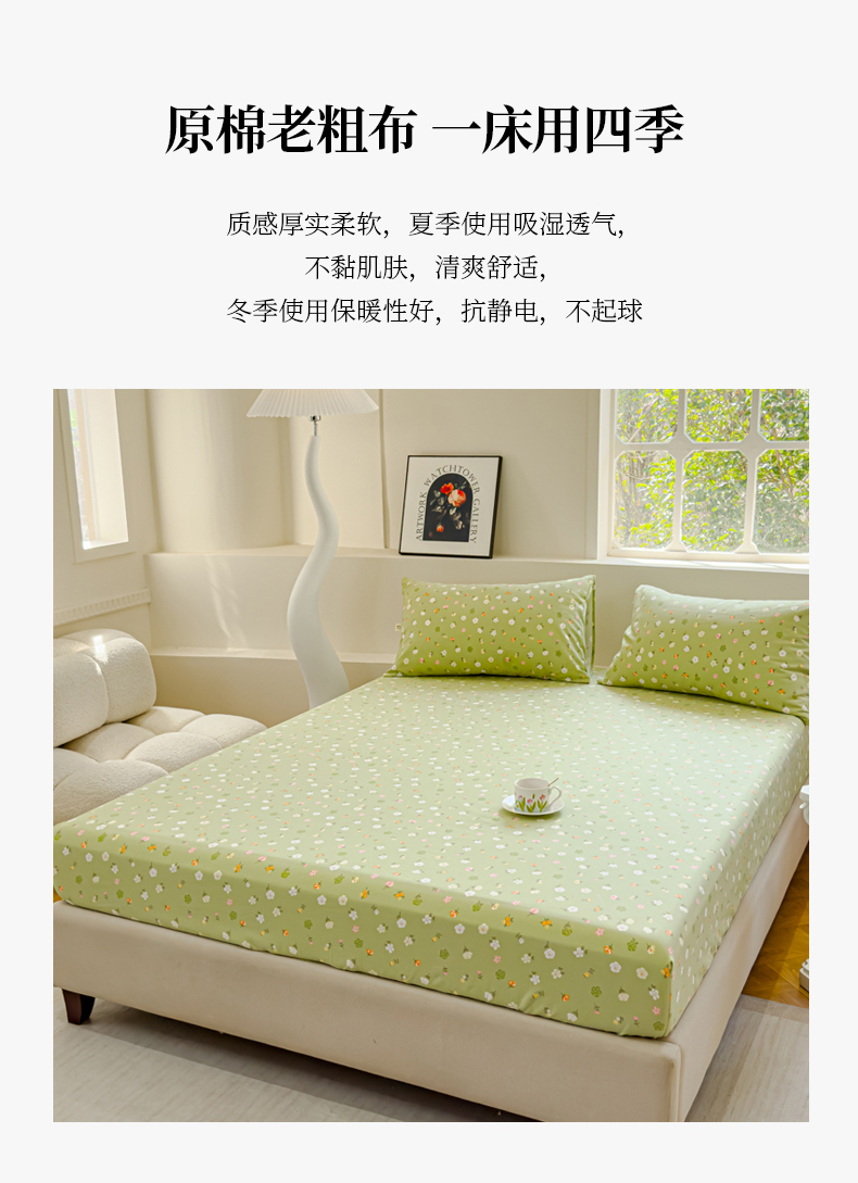 • 91家纺网 家纺一手货源 找家纺 金丝鸟家纺 2024新款成人款A类老粗布床笠 花田
