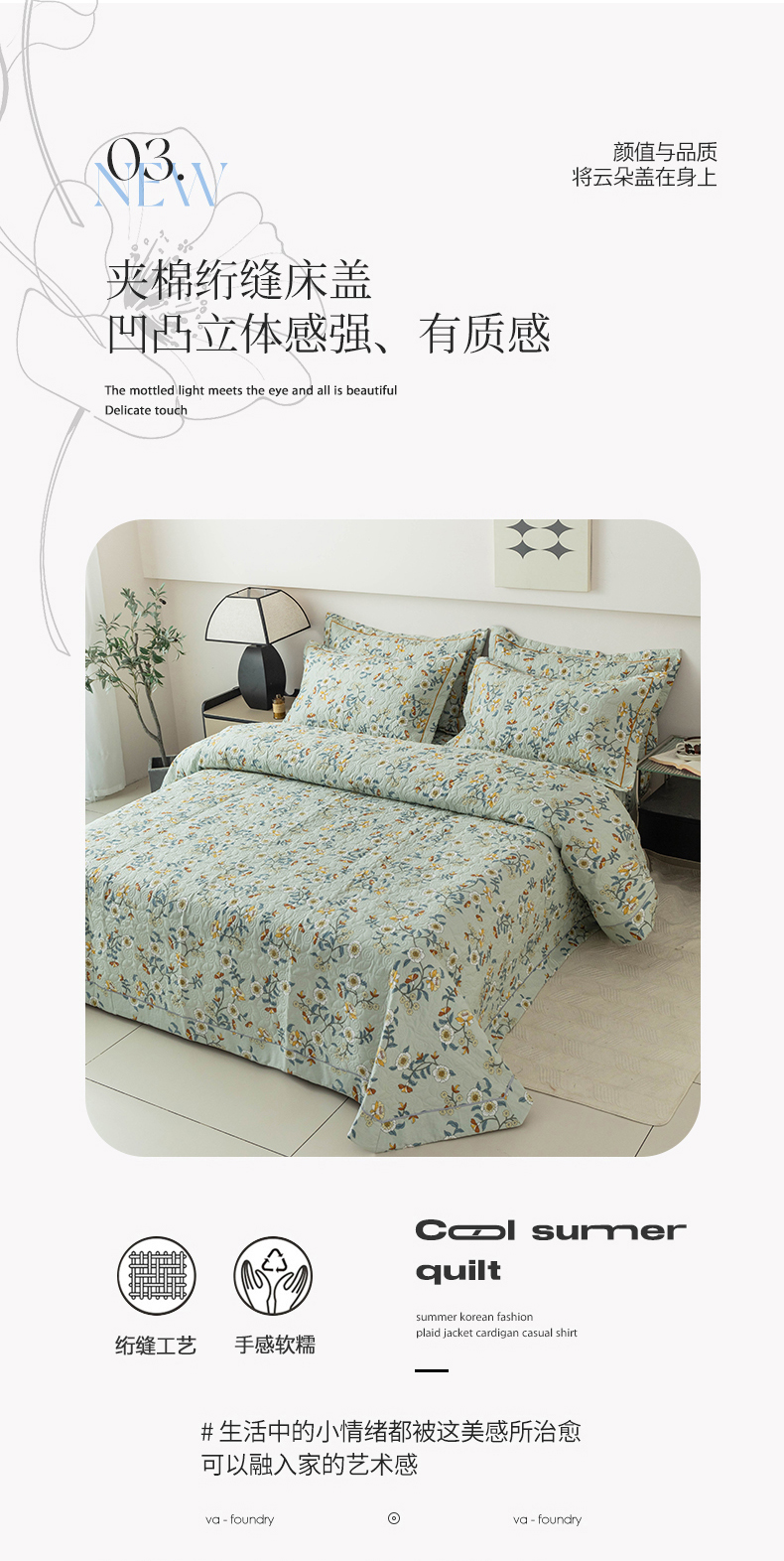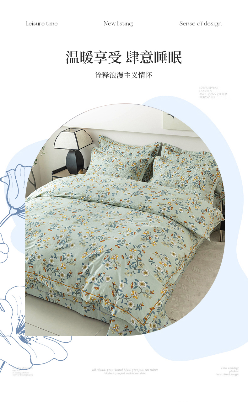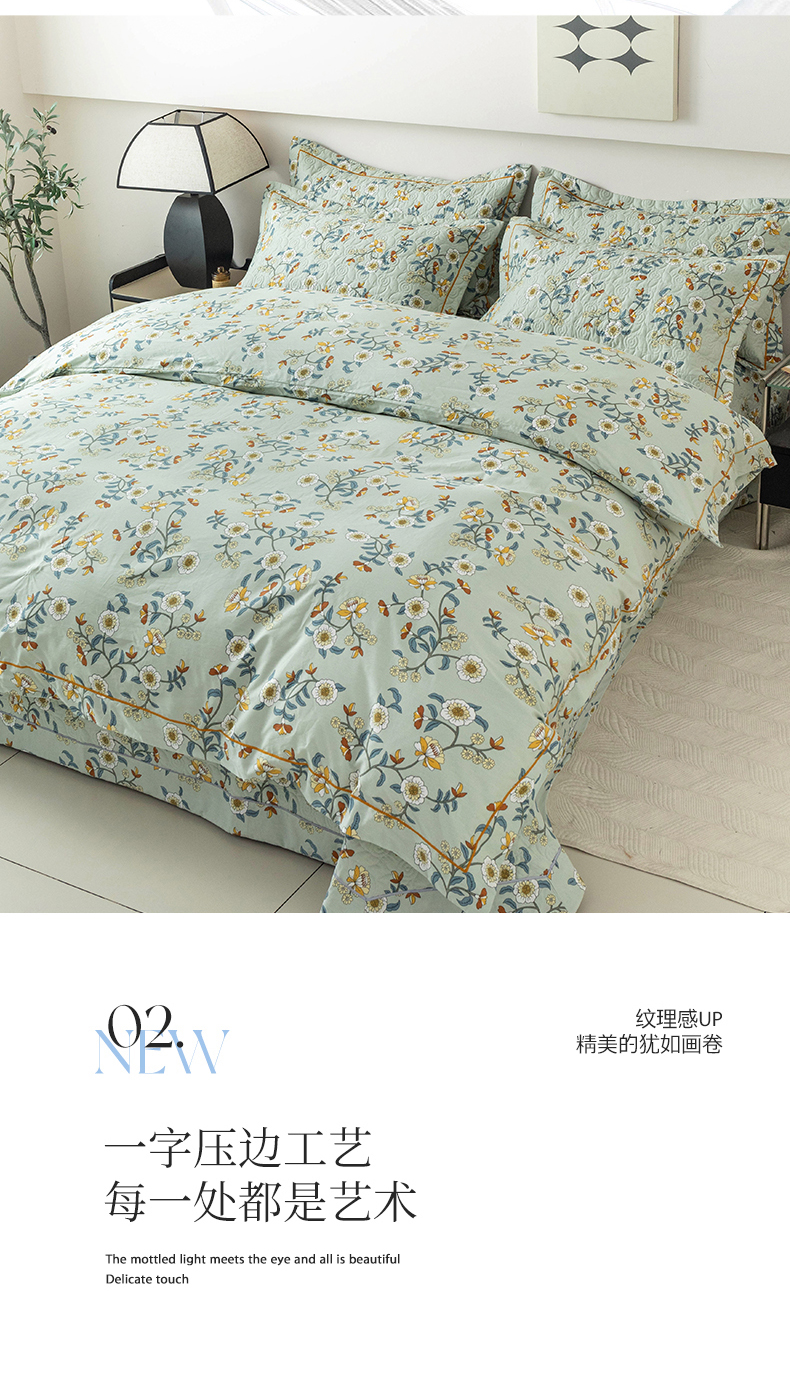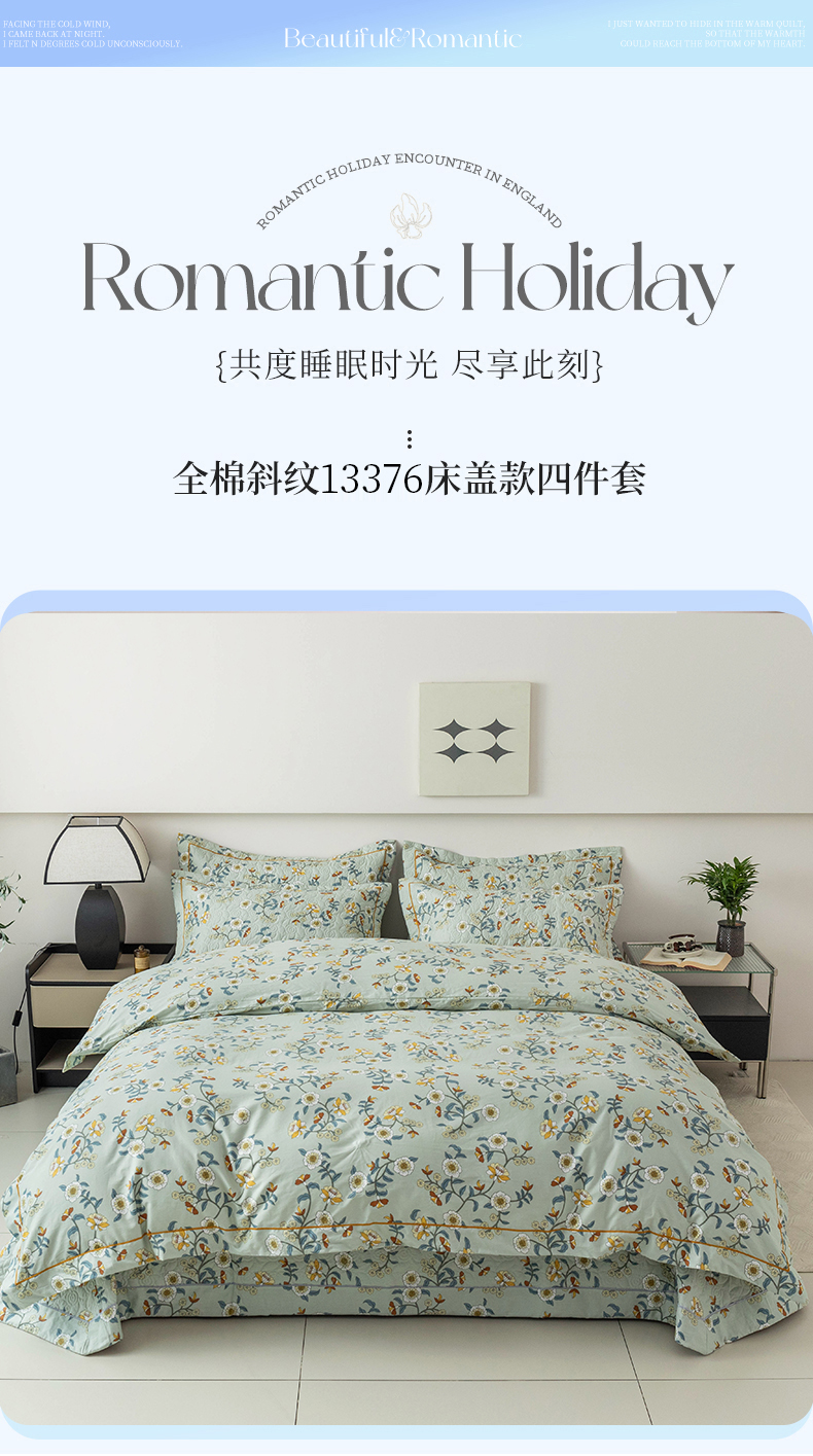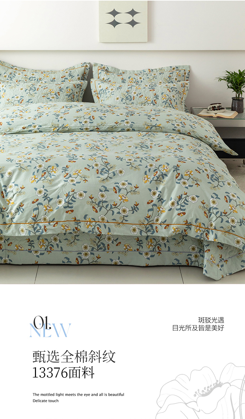 当前位置: 91家纺网 > 商品网购 > 床品套件 > 四件套 > 其它四件套 > 优乐家纺 2025新款全棉斜纹13376单层被套夹棉床盖款四件套 朵唯