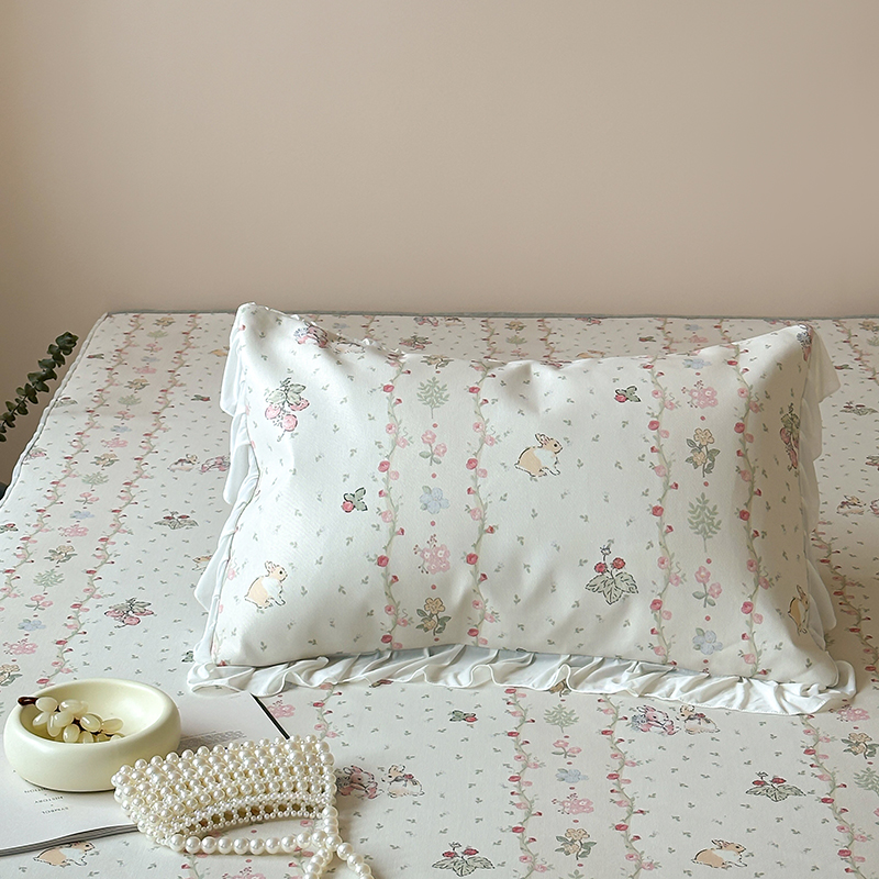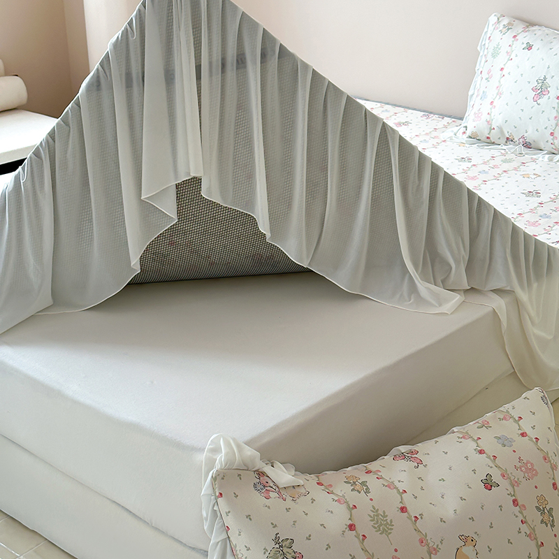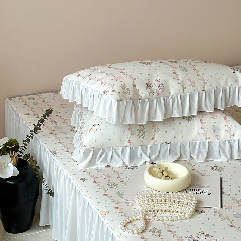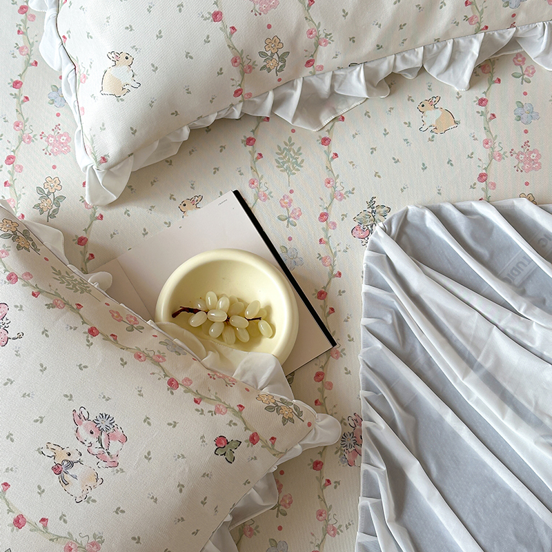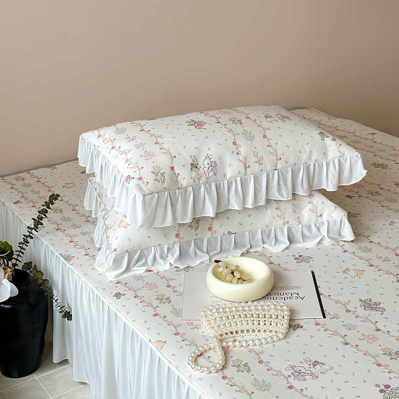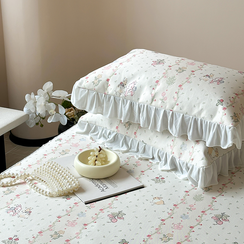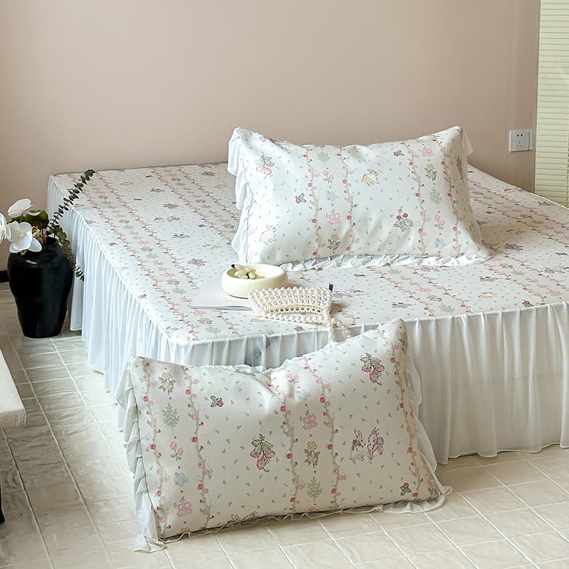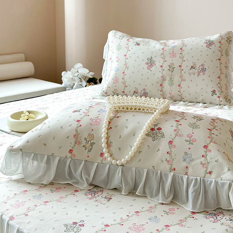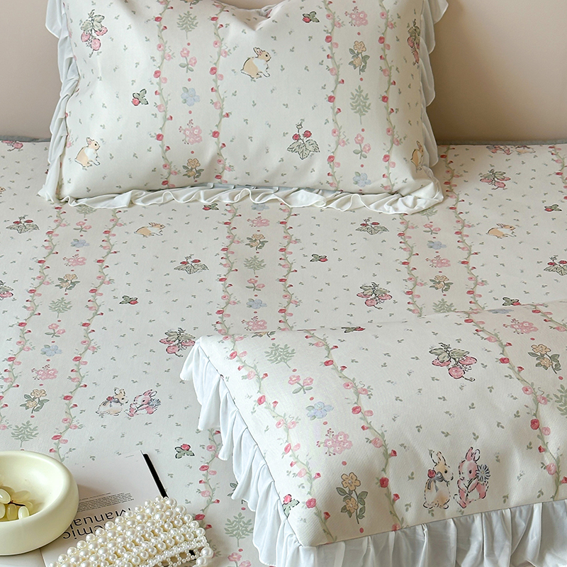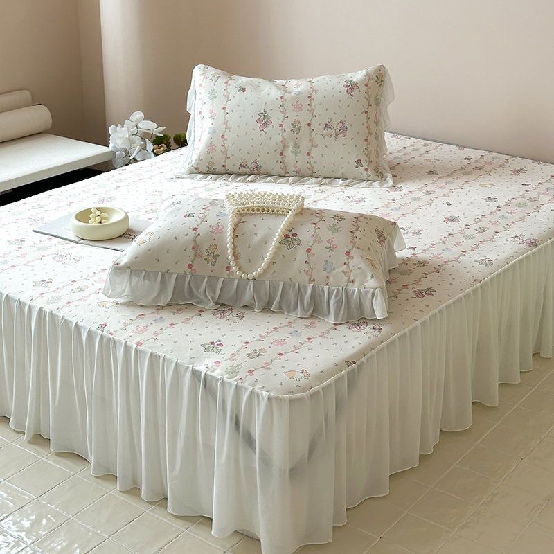 昔可 2024新款A类900D仙仙雪纺纱床裙款冰丝席三件套 花朵小兔