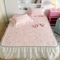 昔可 新款床裙款乳胶凉席双层雪纺纱乳胶凉席三件套 碎花狗狗