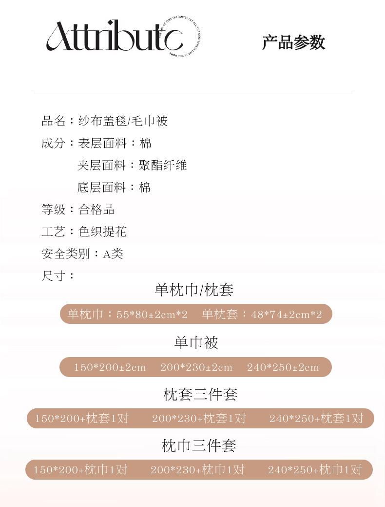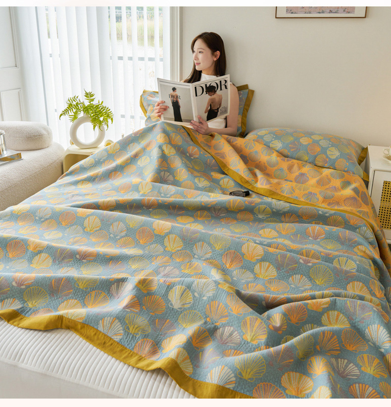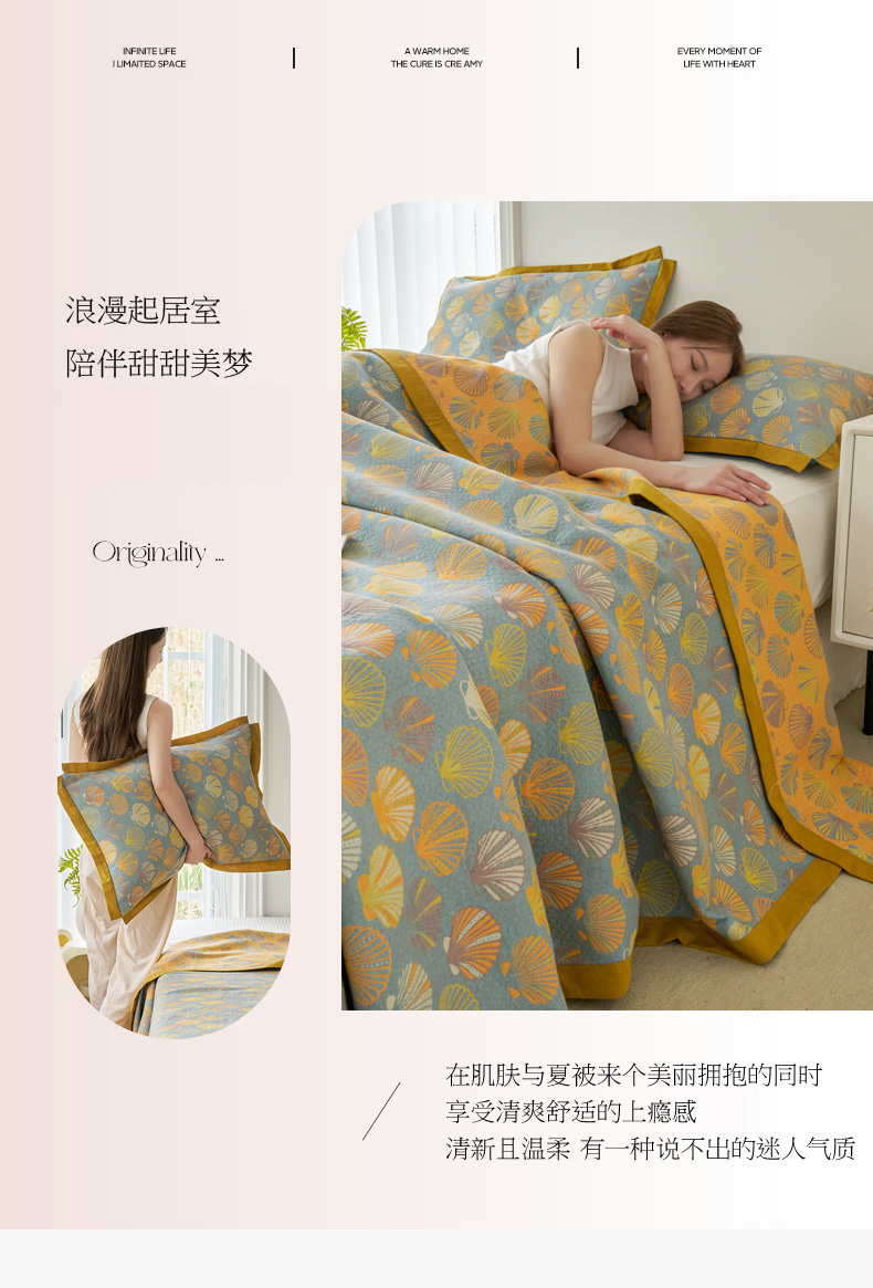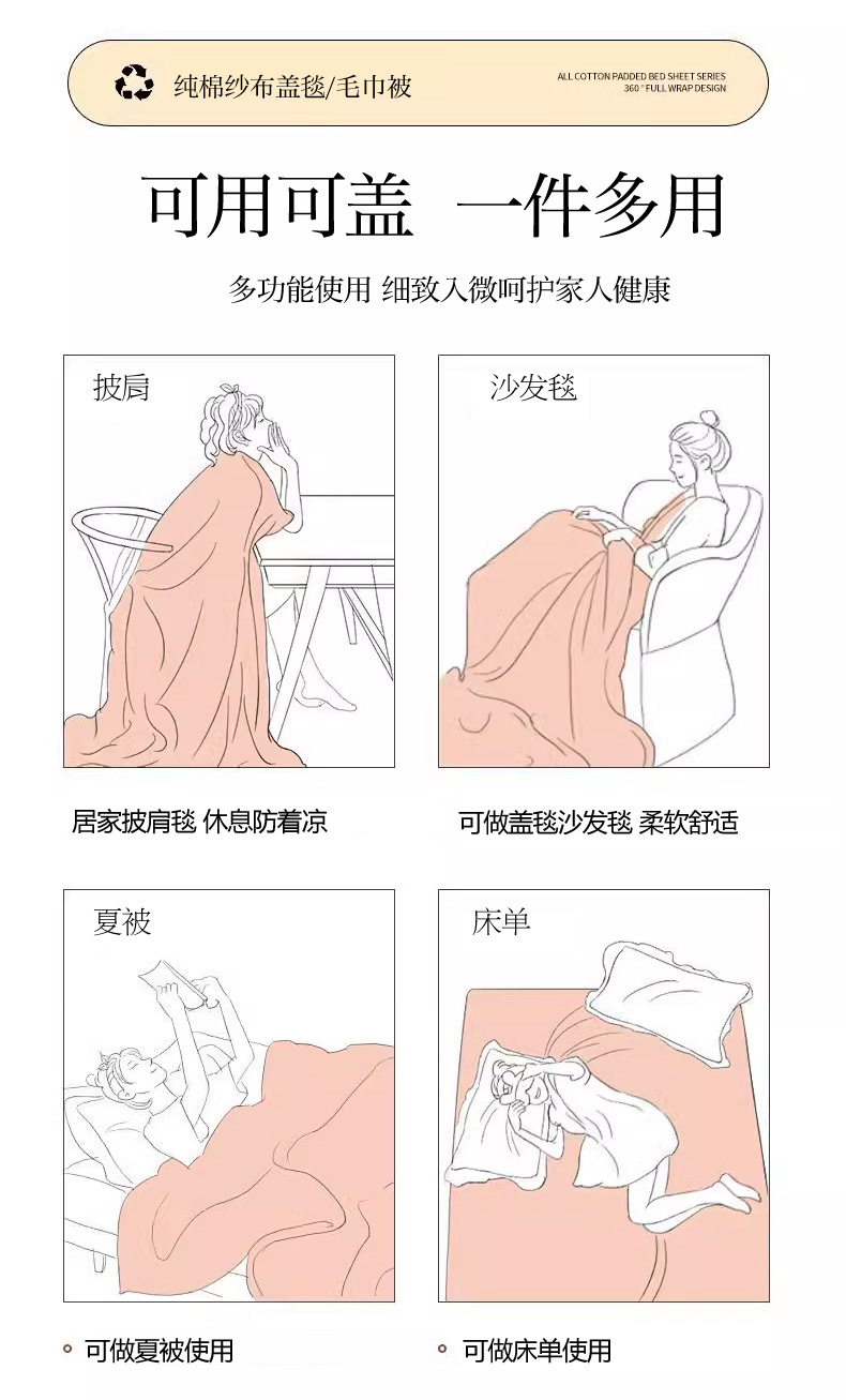 商品名称:(总)棠薇家纺 2025新款全棉彩纱双层纱夏被三层纱多功能毛巾被纱布毯细纱床盖