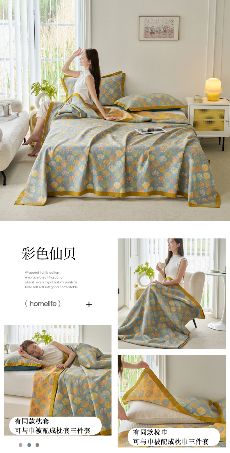 (总)棠薇家纺 2025新款全棉彩纱双层纱夏被三层纱多功能毛巾被纱布毯细纱床盖,叶见倾心,彩色仙贝,拉夏尔,舞动银杏,金枝玉叶