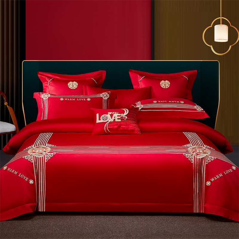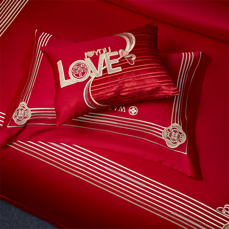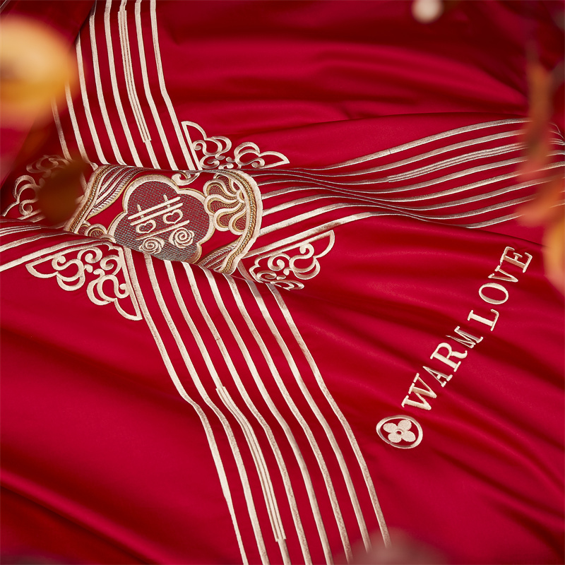 当前位置: 91家纺网 > 商品网购 > 床品套件 > 四件套 > 婚庆四件套 > 高大尚婚庆馆 2025新款长绒棉囍嫁系列婚庆四件套 格调