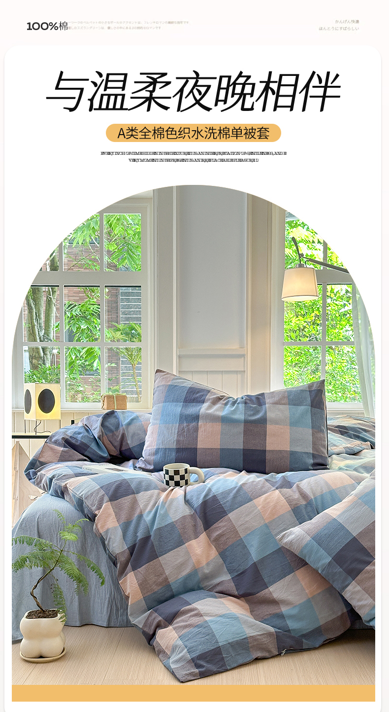 北欧良品 2024新款A类全棉色织水洗棉单被套 豆蔻蓝