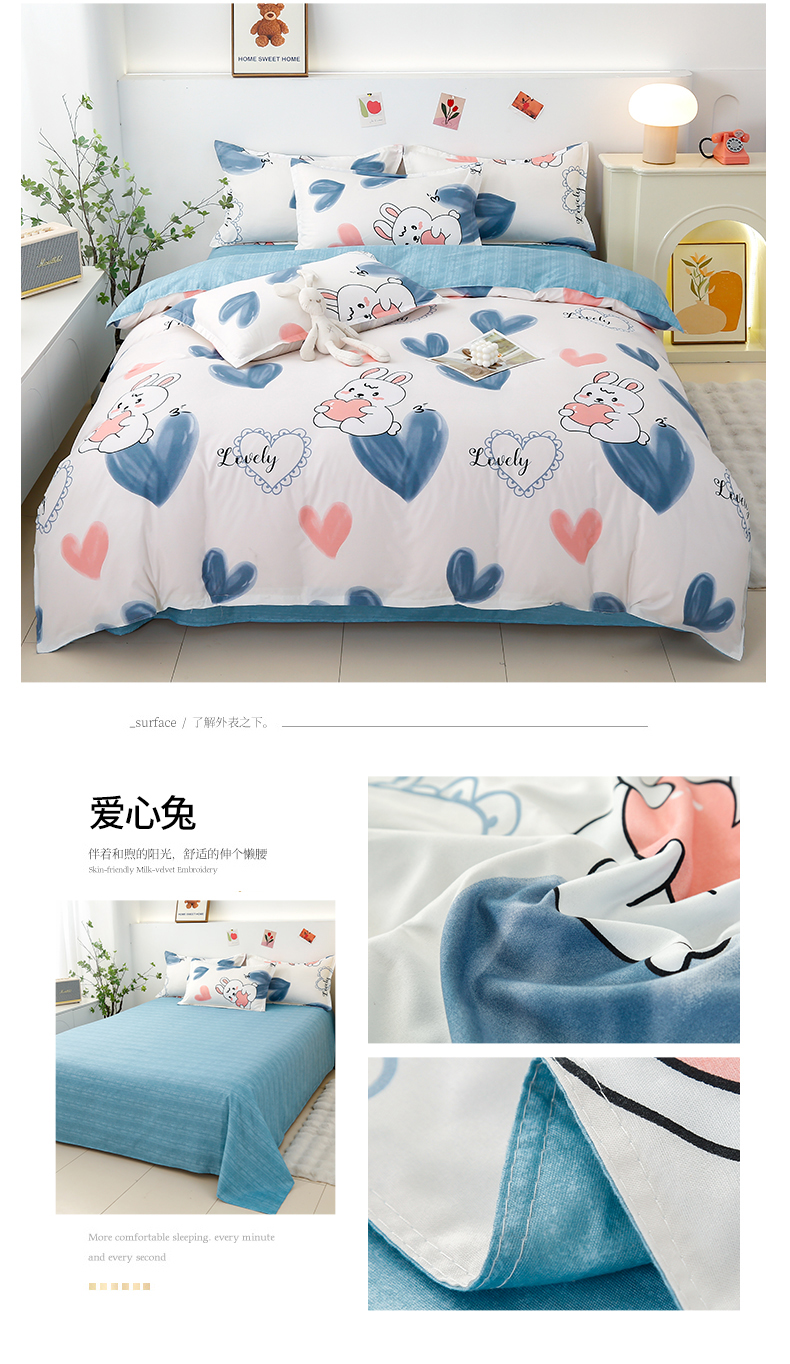 当前位置: 91家纺网 > 商品网购 > 床品套件 > 四件套 > 磨毛活性四件套 > 曼璐家纺 2025新款芦荟棉磨毛印花四件套 爱心兔