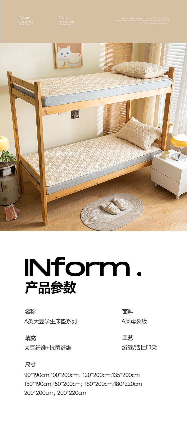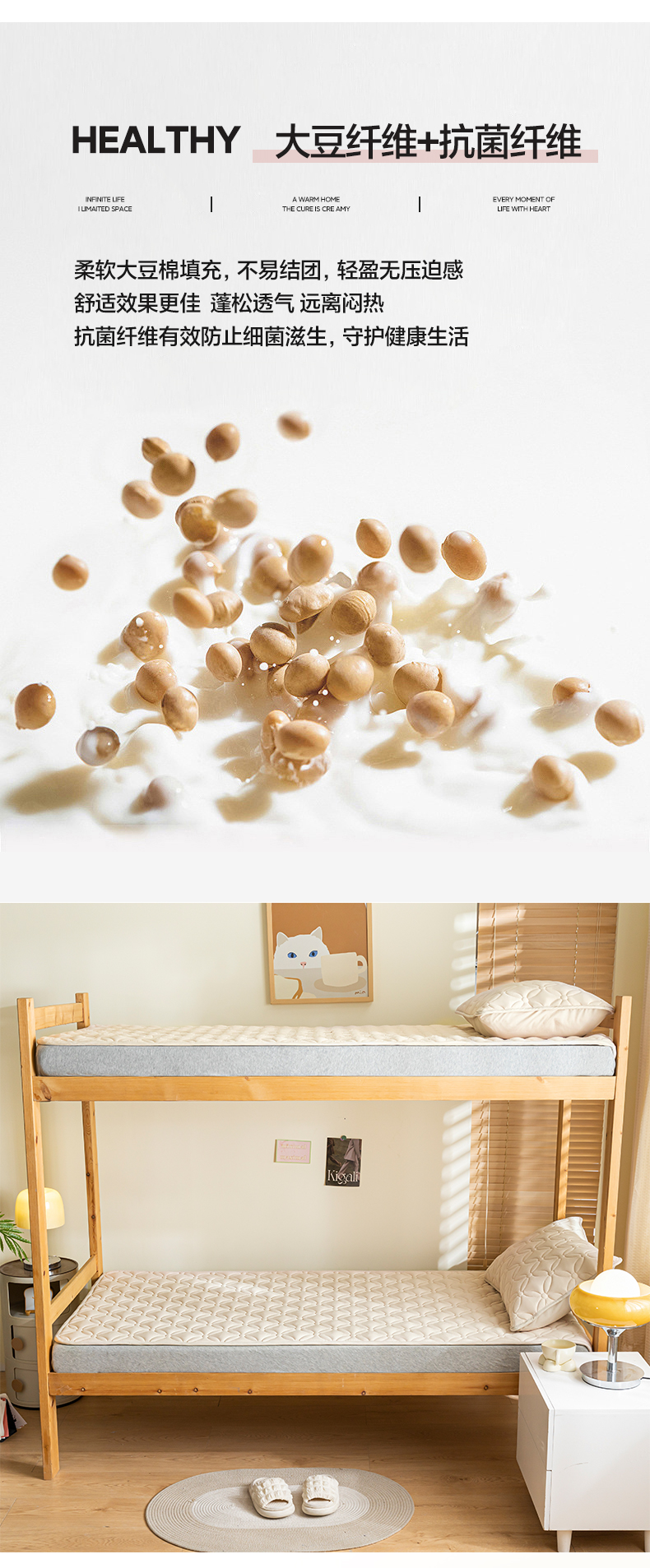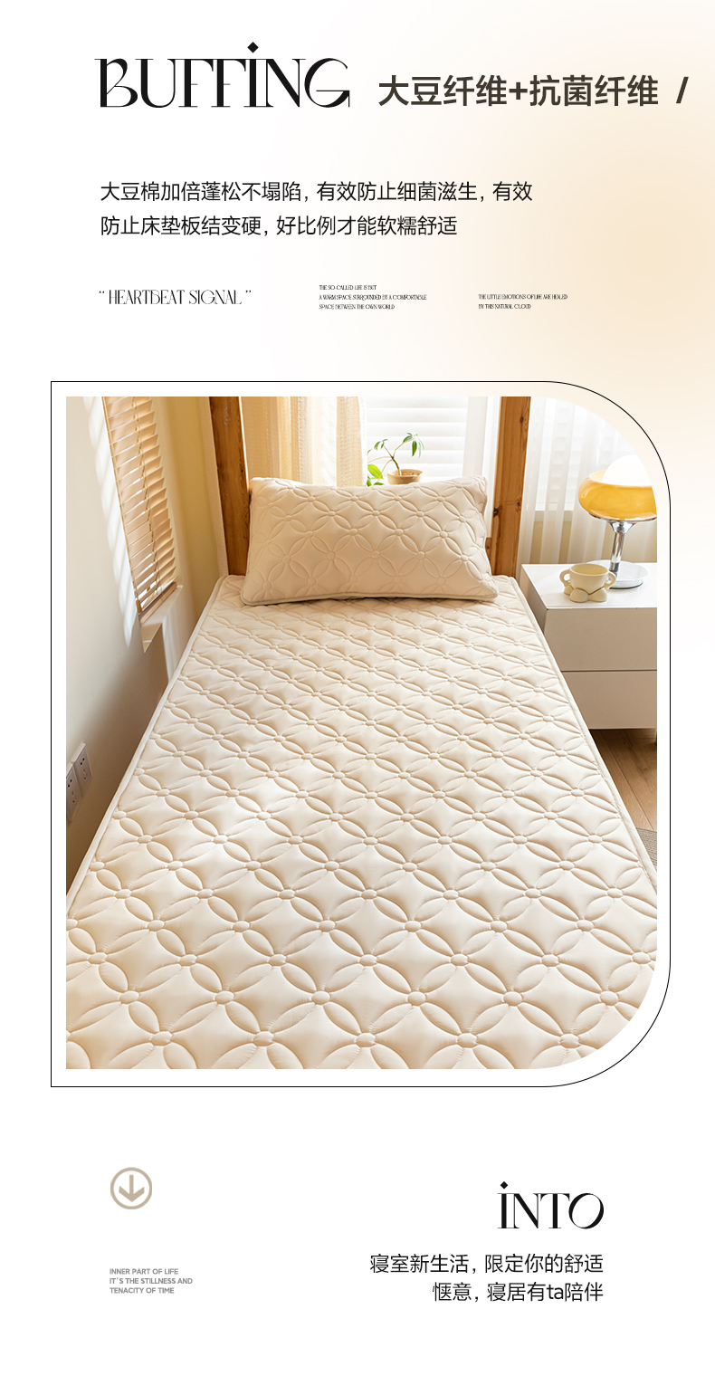 • 91家纺网 家纺一手货源 找家纺 芬晴家纺 2024新款A类大豆学生床垫系列-花叶 花叶-卡其