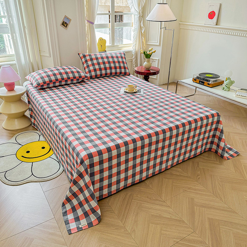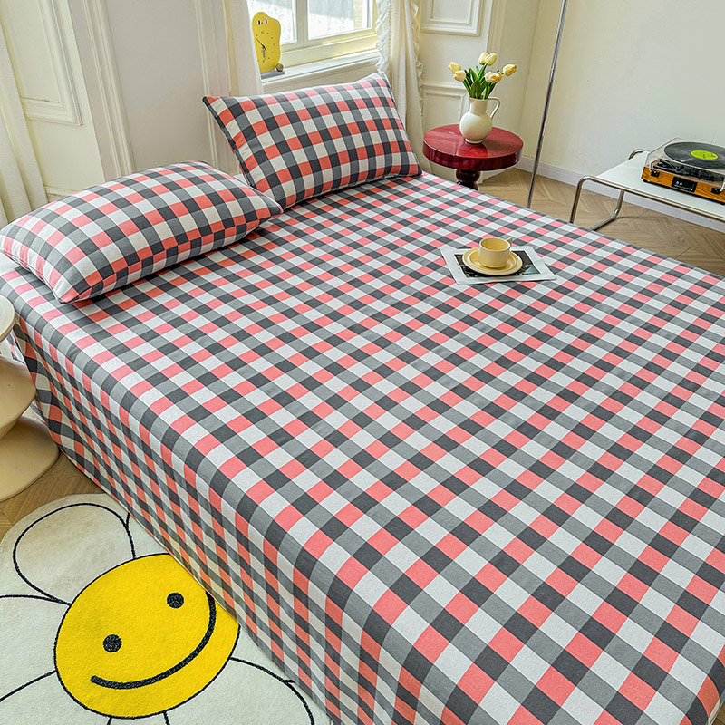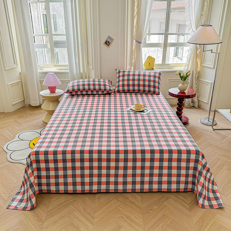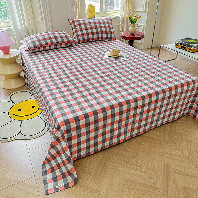 • 91家纺网 家纺一手货源 找家纺 晓时候 2025新款原棉老粗布床单印花凉席三件套软凉席 粉白中格