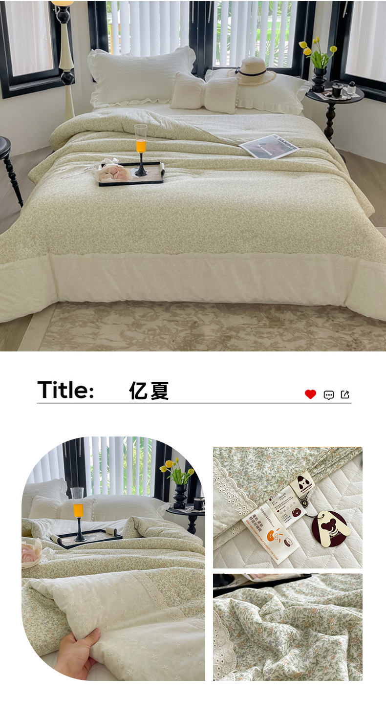 (总)奈萝家纺 2025春夏新款全棉纯棉蕾丝花边款夏被夏凉被空调被,呆呆熊,花语绿,花语紫,柠檬,蔷薇,西瓜兔,夏蓝,夏梦,夏之语,小花熊,樱花,组合图仅供展示