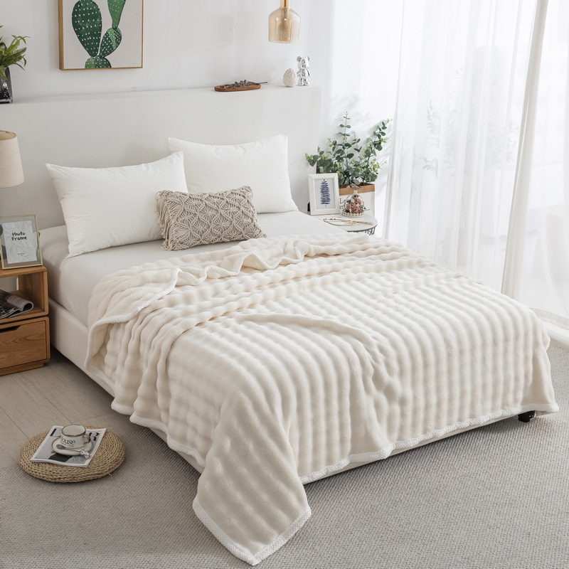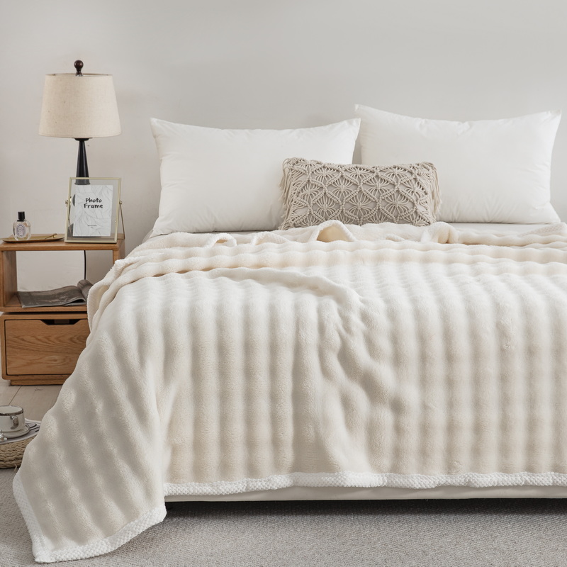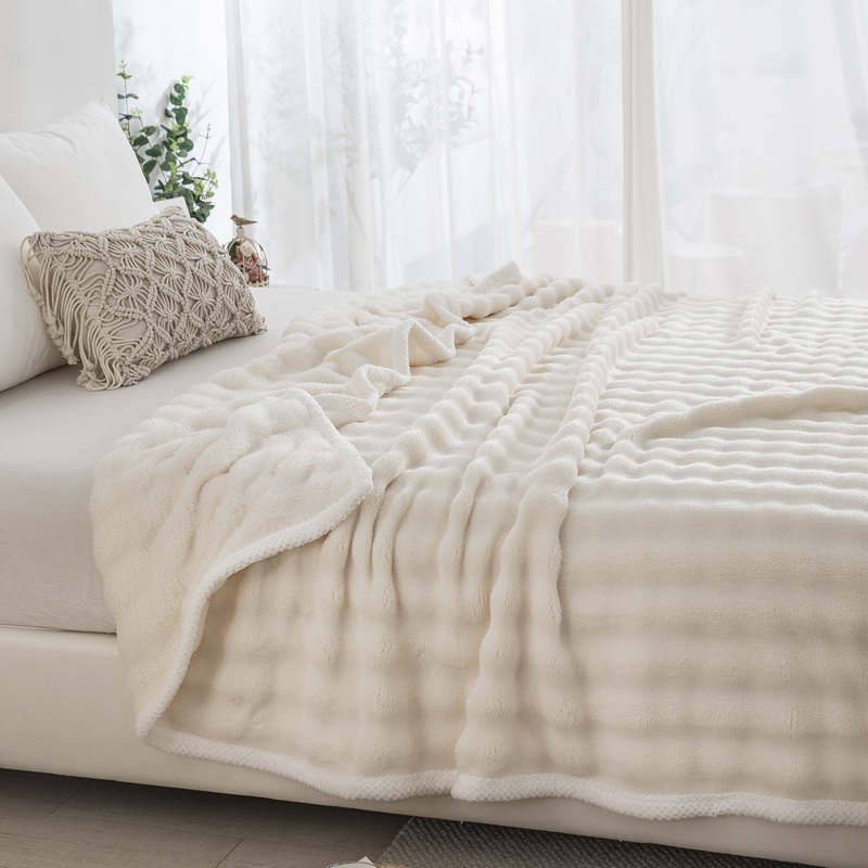 卉晨家纺 2024新款牛奶绒兔毛绒空调毯午睡毯泡泡毛毯 简约白
